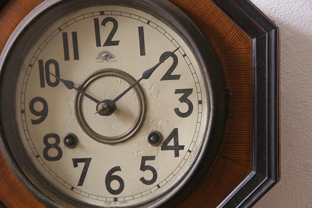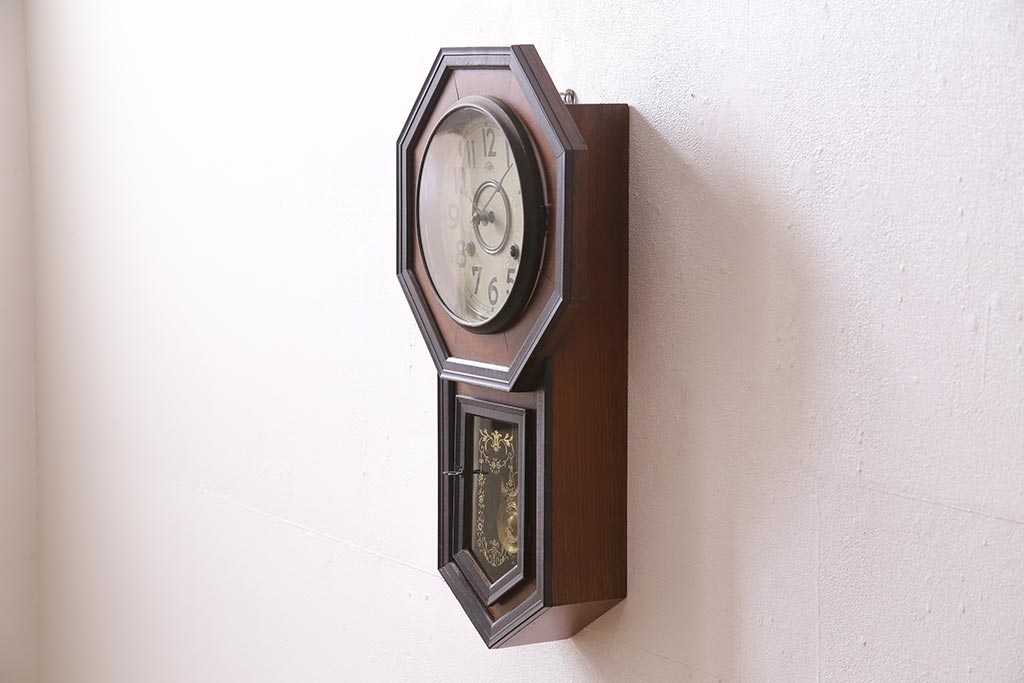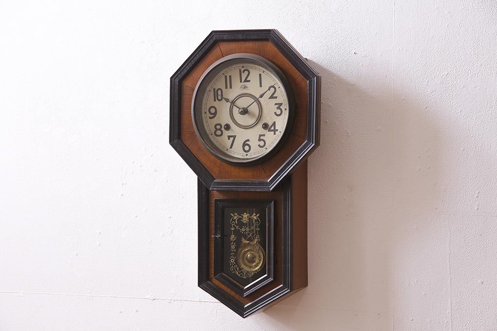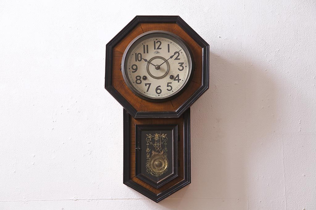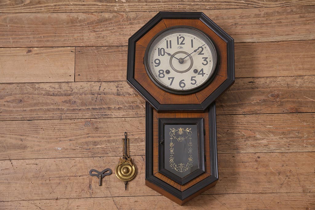 時計> 掛け時計 > アンティーク雑貨 希少品 明治大正期 日ノ出鶴印 時計産業のパイオニア「時盛舎」の八角柱時計(林市兵衛、林時計、ボンボン時計、振り子時計)(R-044548)