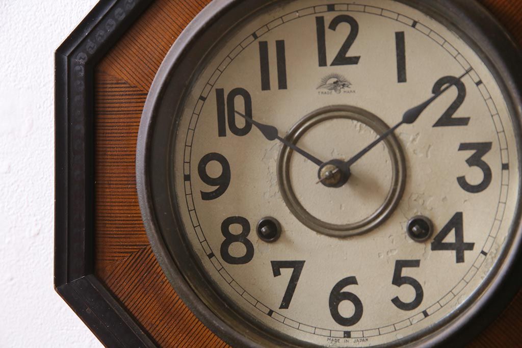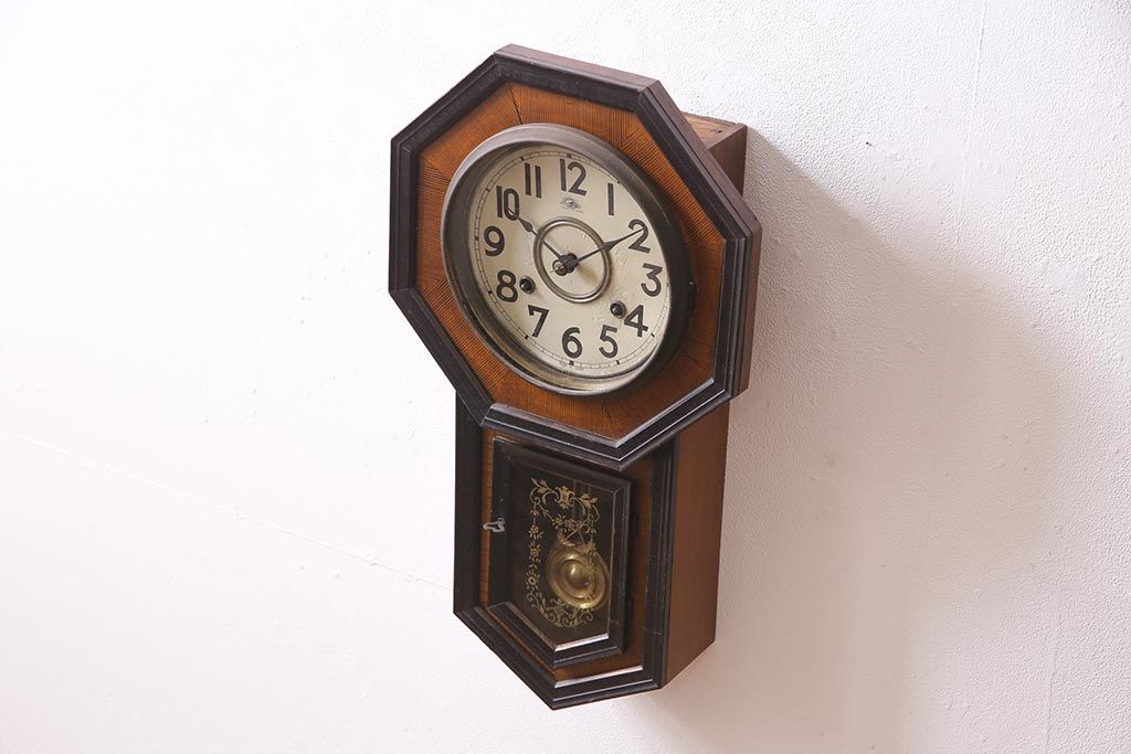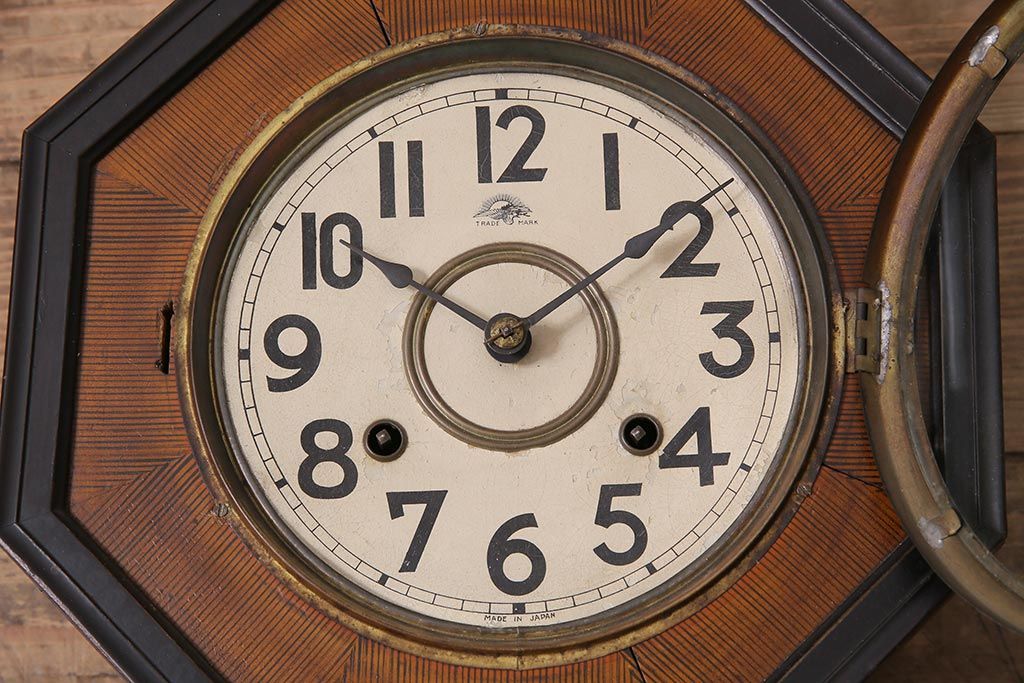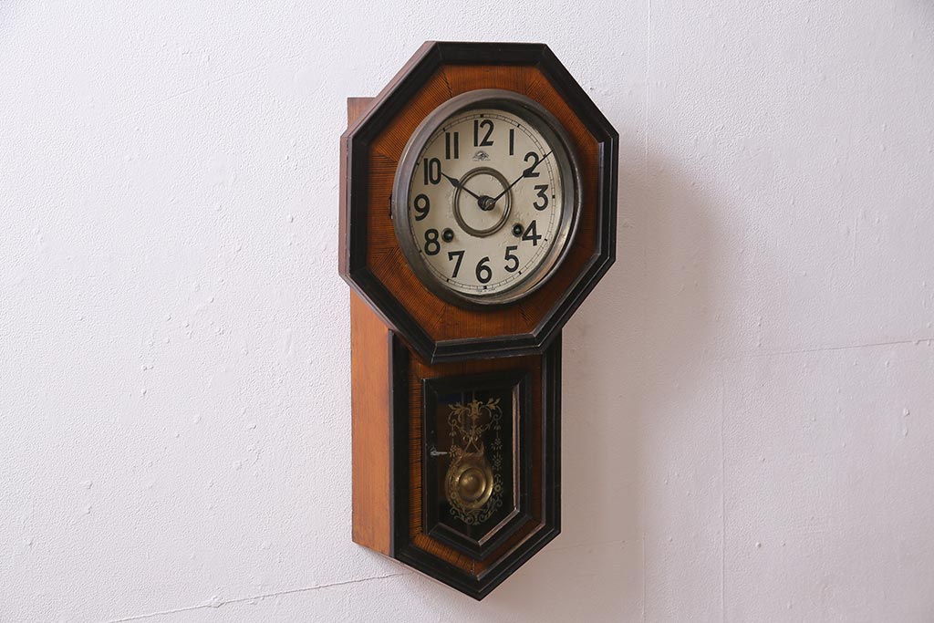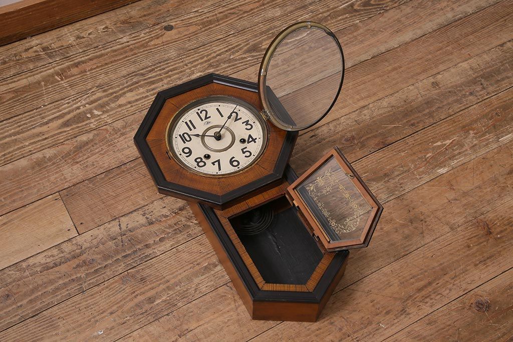 アンティーク雑貨 希少品 明治大正期 日ノ出鶴印 時計産業のパイオニア「時盛舎」の八角柱時計(林市兵衛、林時計、ボンボン時計、振り子時計)(R-044548)