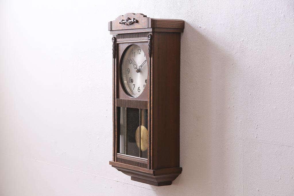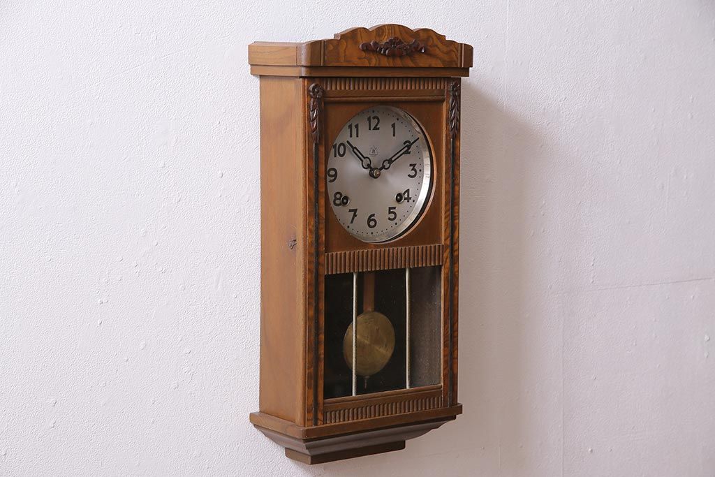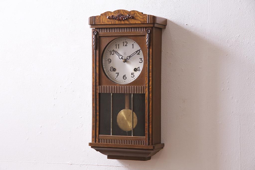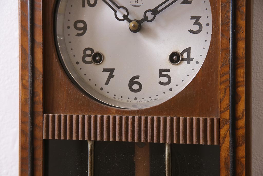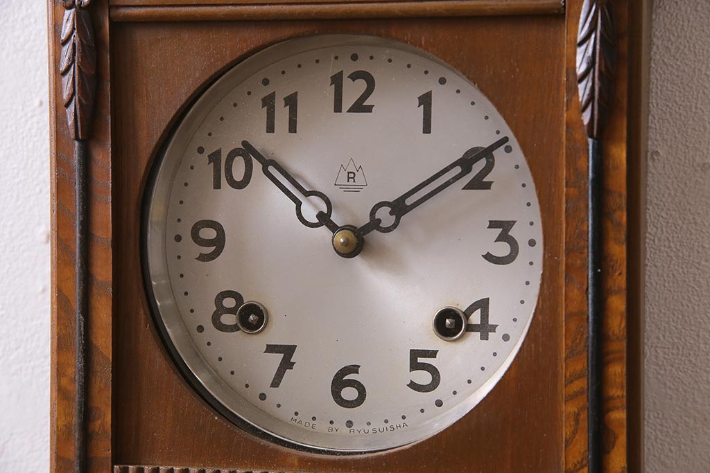 時計> 掛け時計 > アンティーク雑貨 昭和初期 RYUSUISHA(龍水社)製 昭和レトロな雰囲気がお洒落な壁掛け時計(柱時計、振り子時計、ボンボン時計)(R-044549)