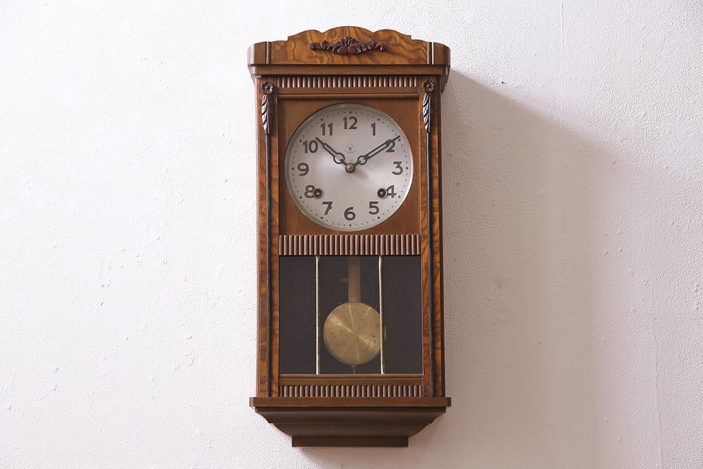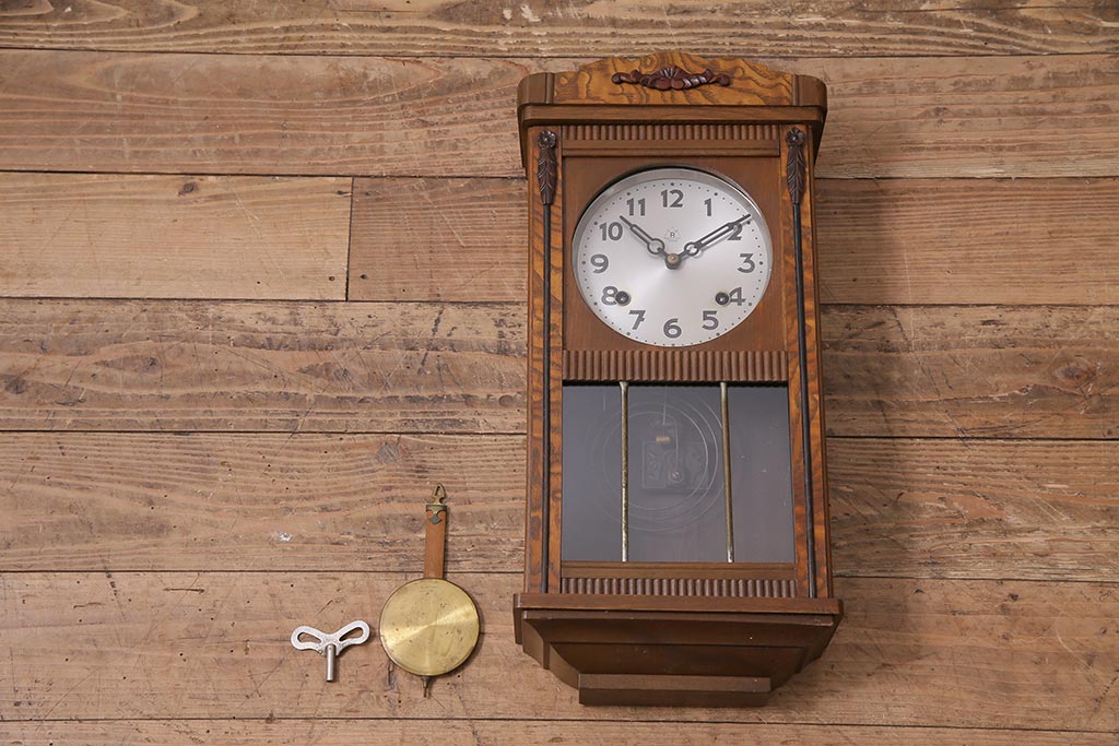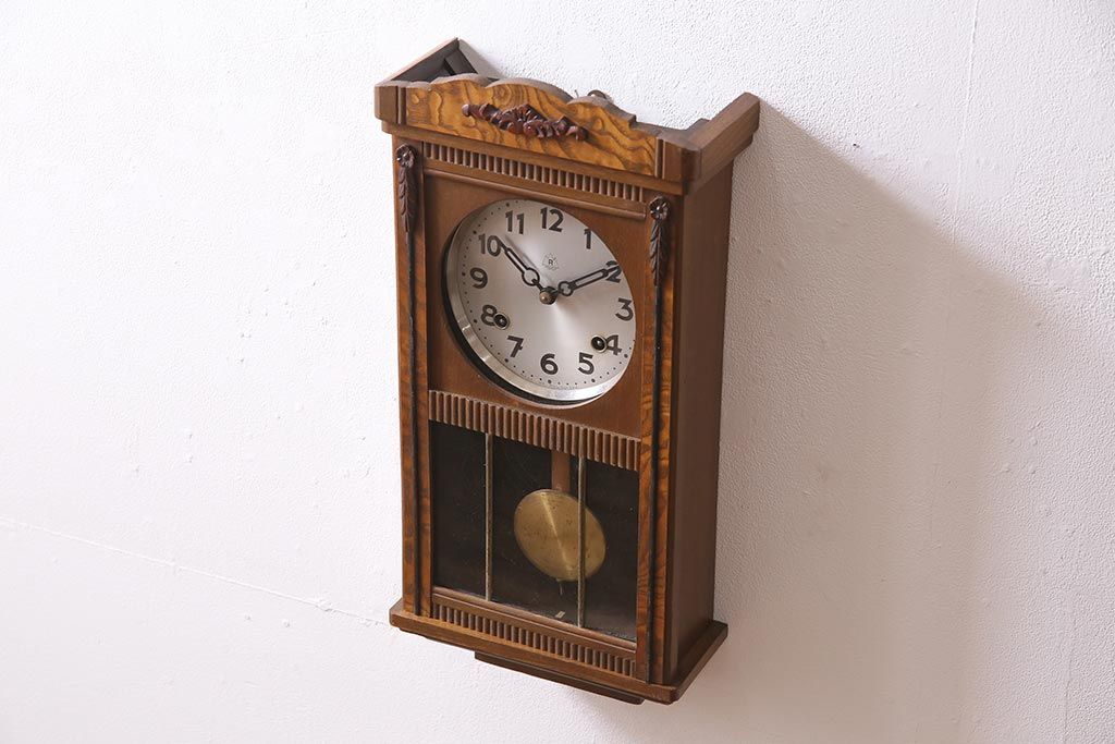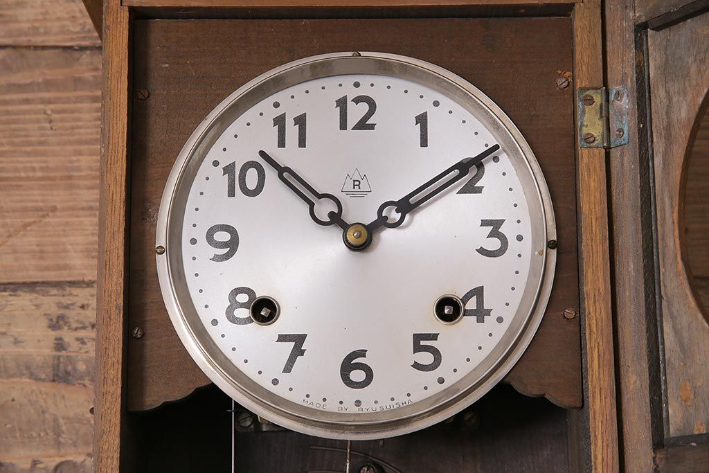 アンティーク雑貨 昭和初期 RYUSUISHA(龍水社)製 昭和レトロな雰囲気がお洒落な壁掛け時計(柱時計、振り子時計、ボンボン時計)(R-044549)