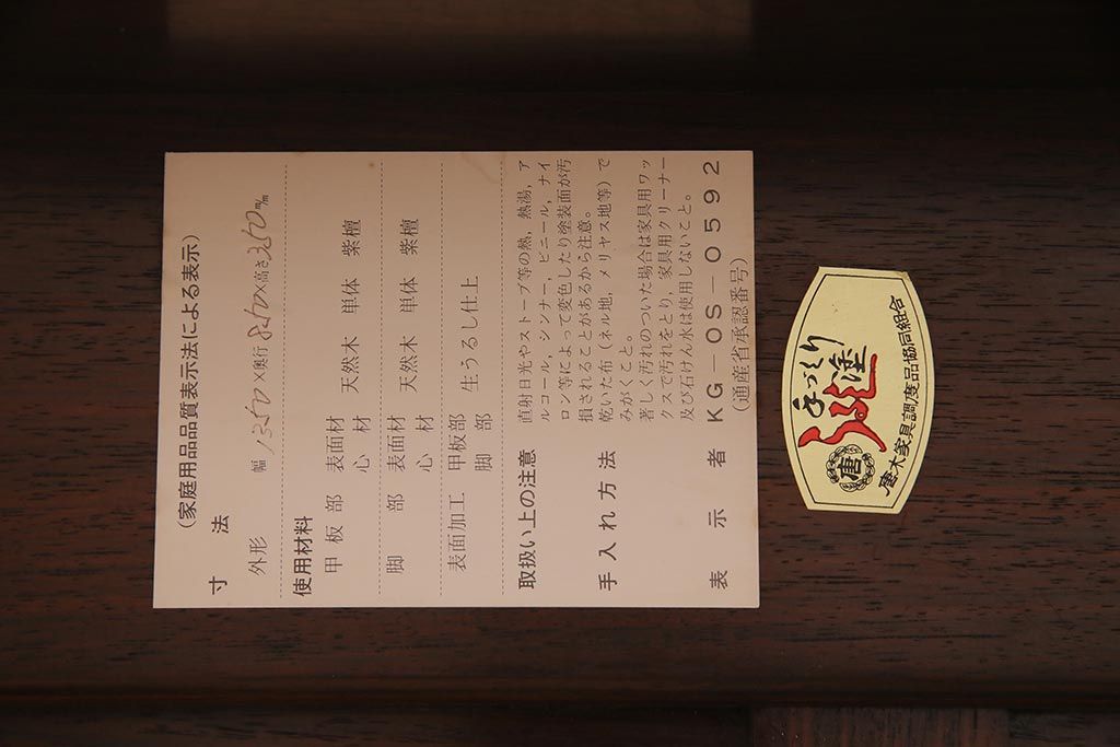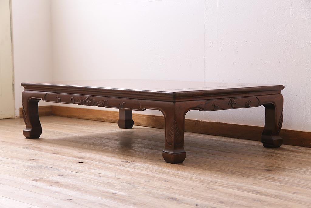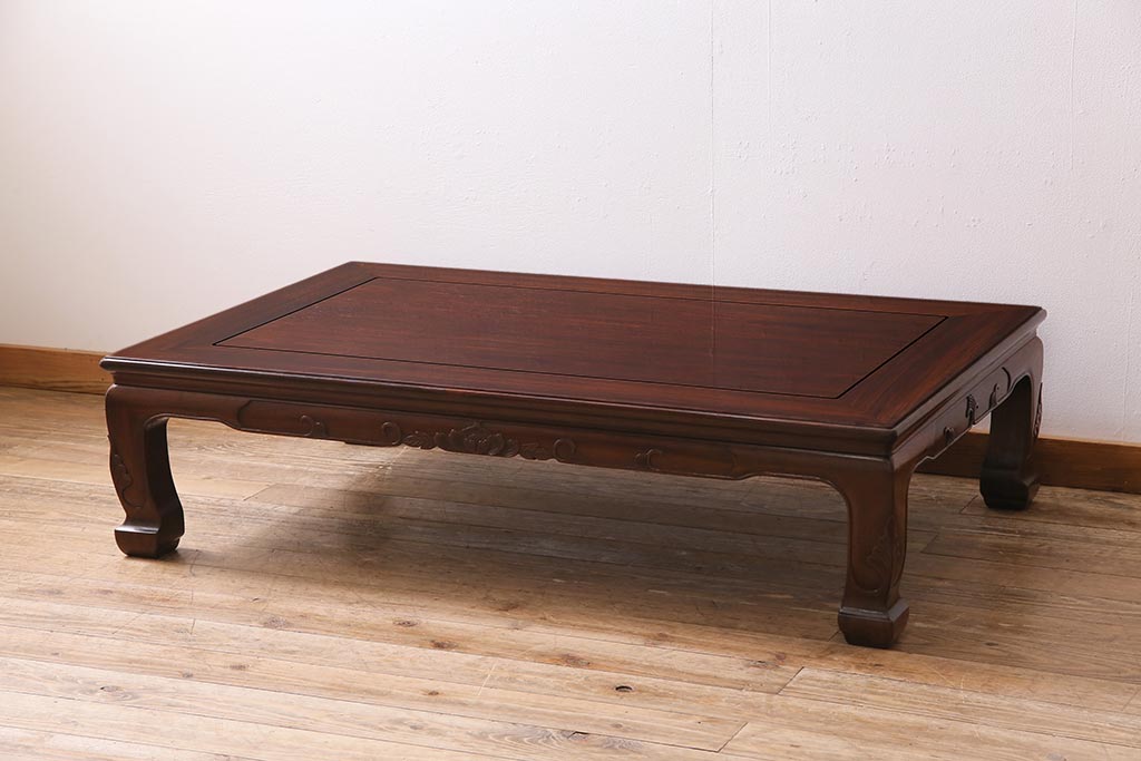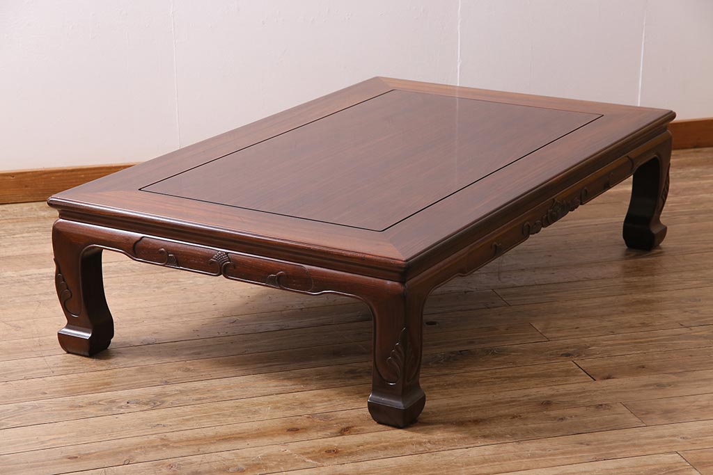 中古 唐木指物 紫檀(シタン)無垢材 漆塗り 落ち着いた和の空間を演出する座卓(ローテーブル)(R-044400)