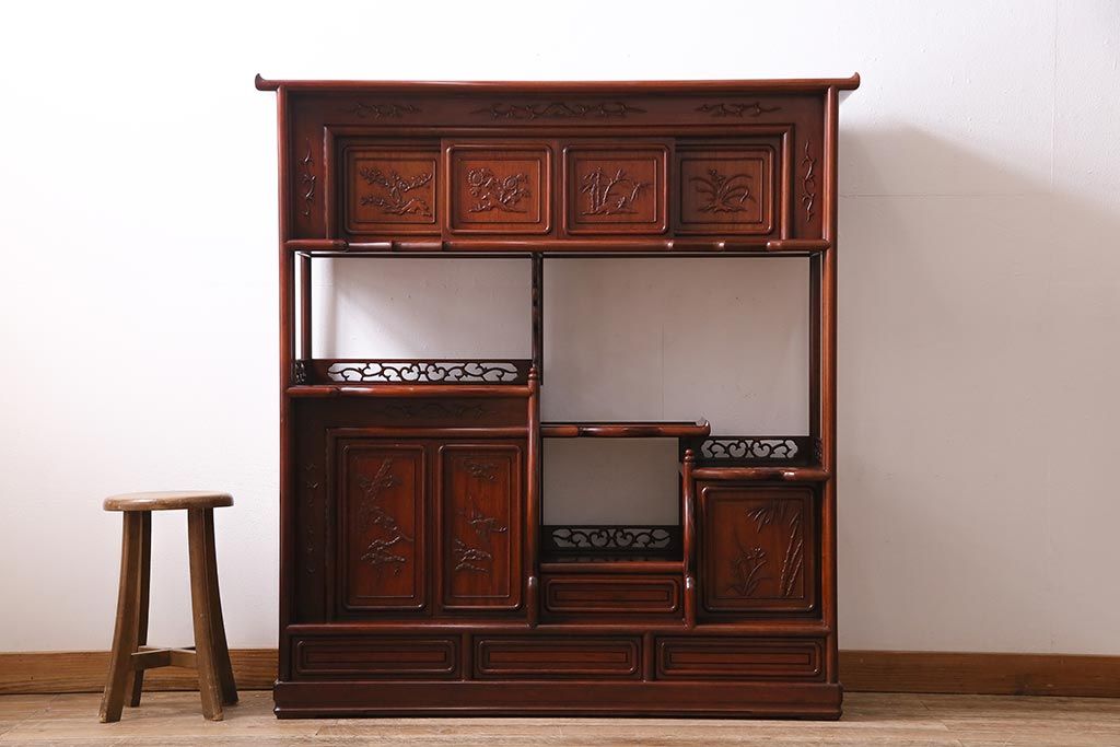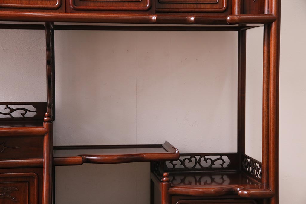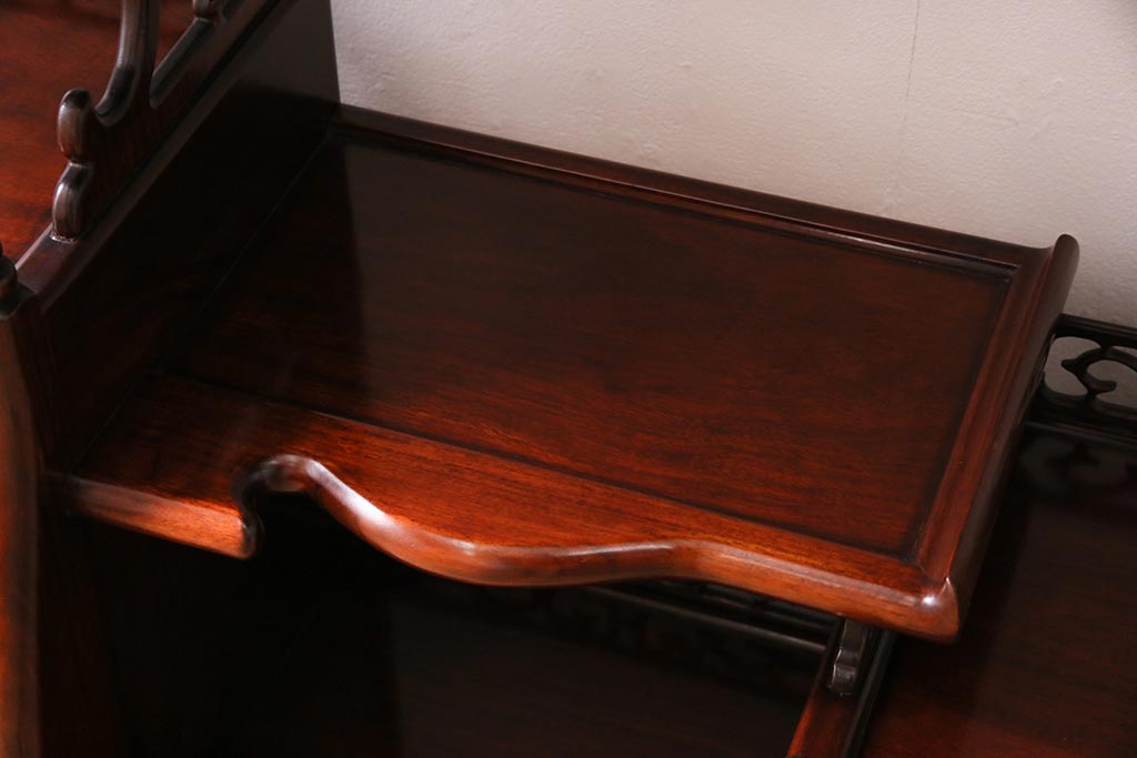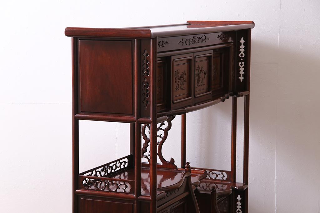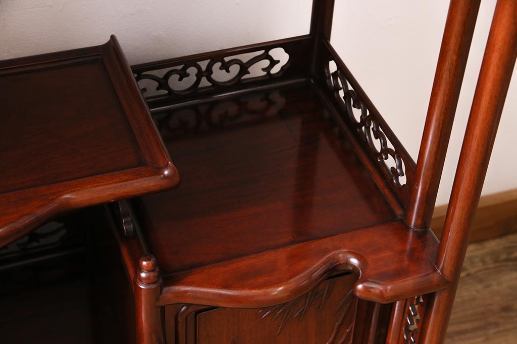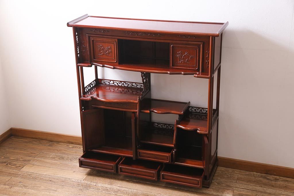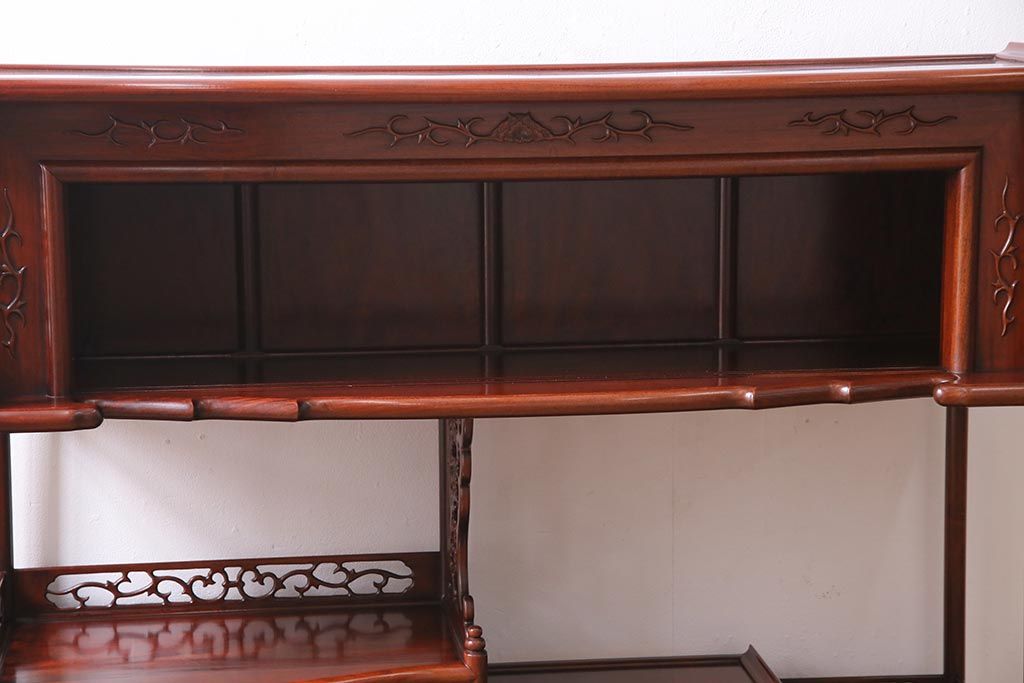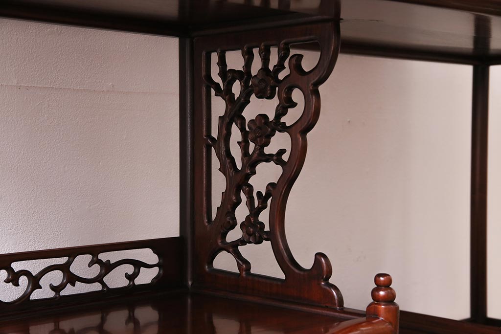 ビンテージ家具 和製ビンテージ 唐木 カリン材 赤みを帯びた木肌が美しい飾り棚(茶棚、陳列棚、花梨材)(R-044563)
