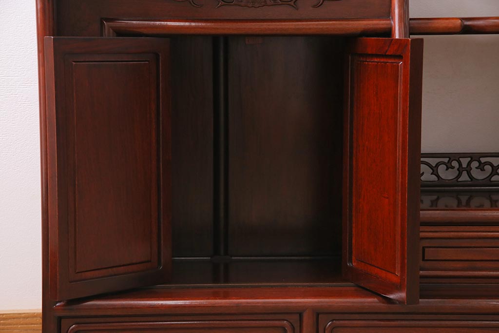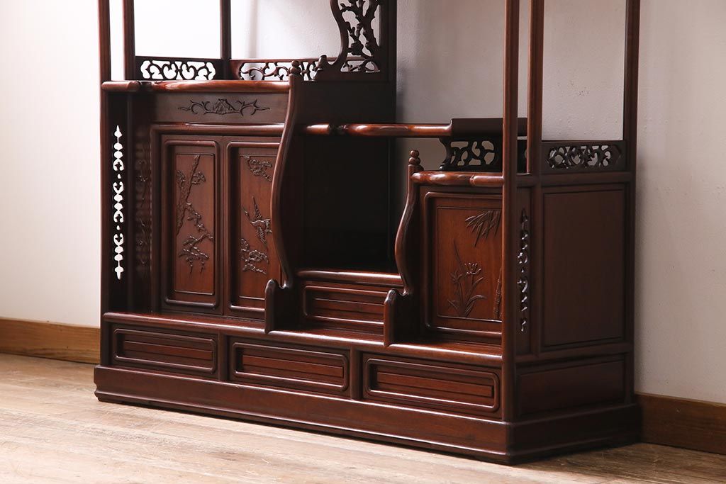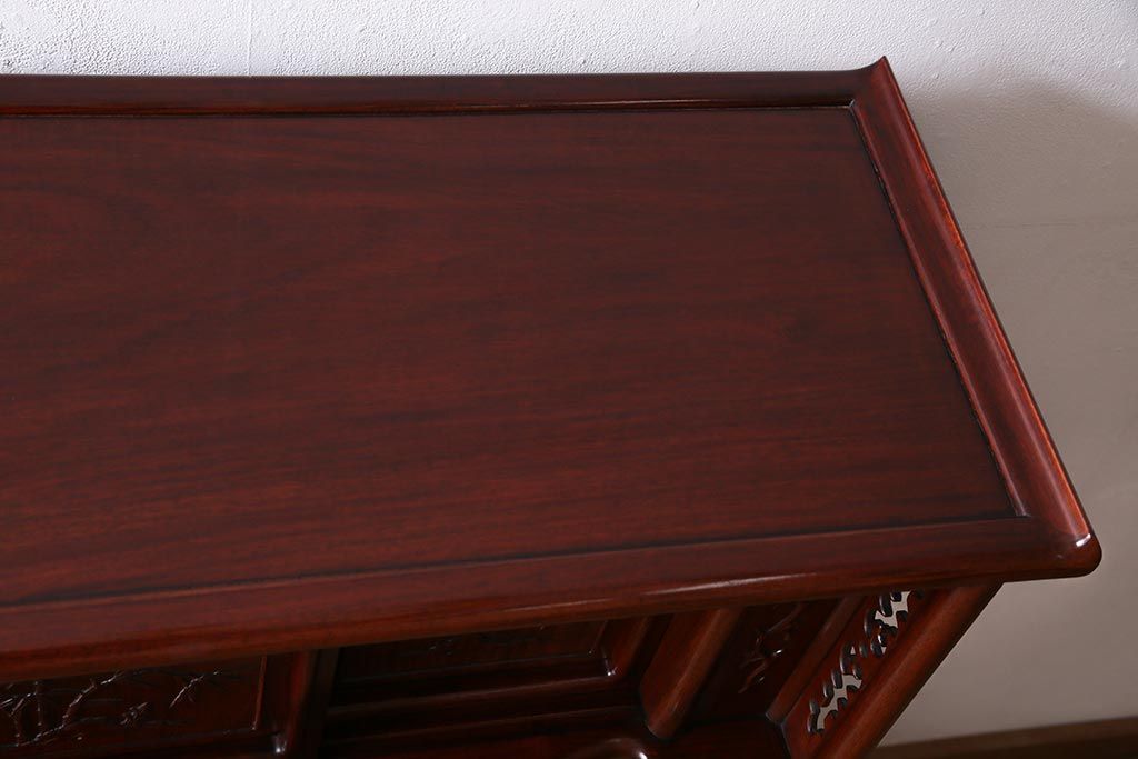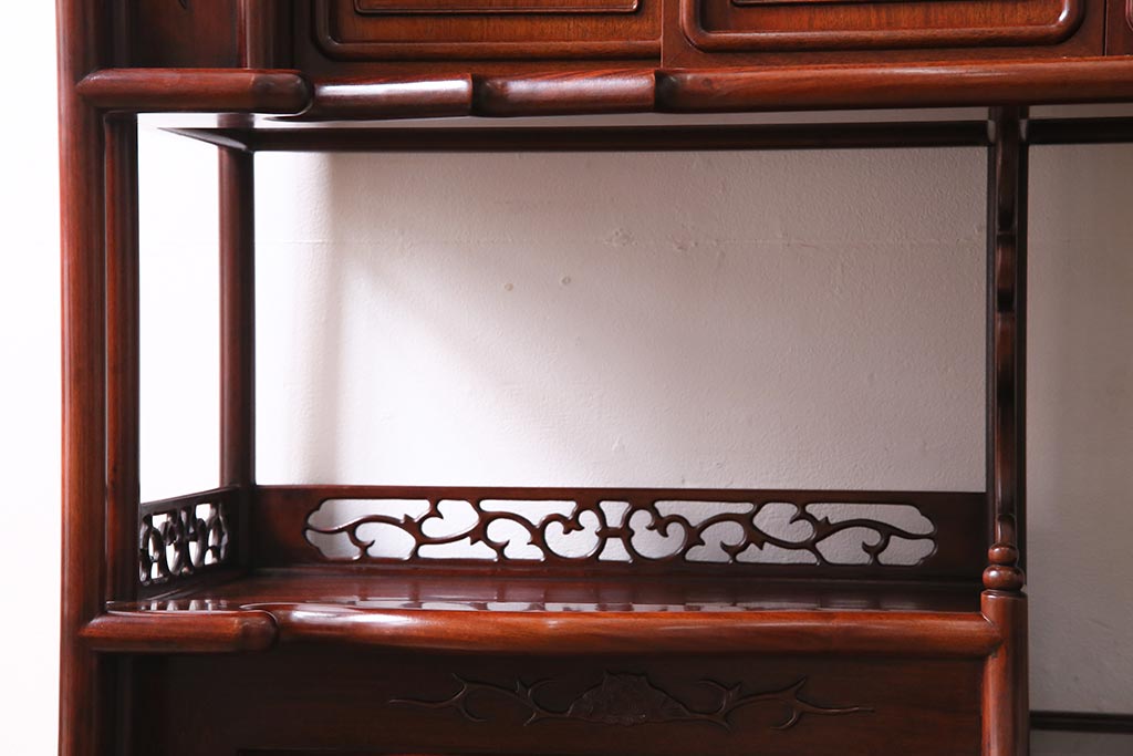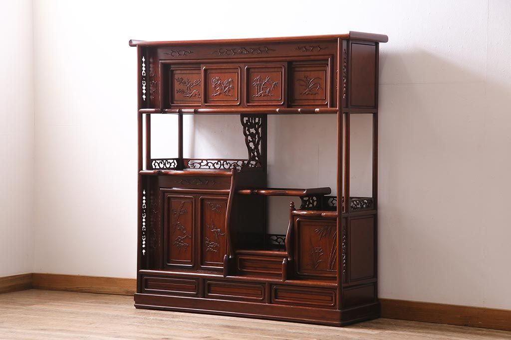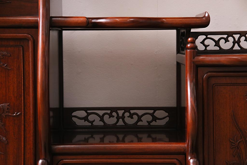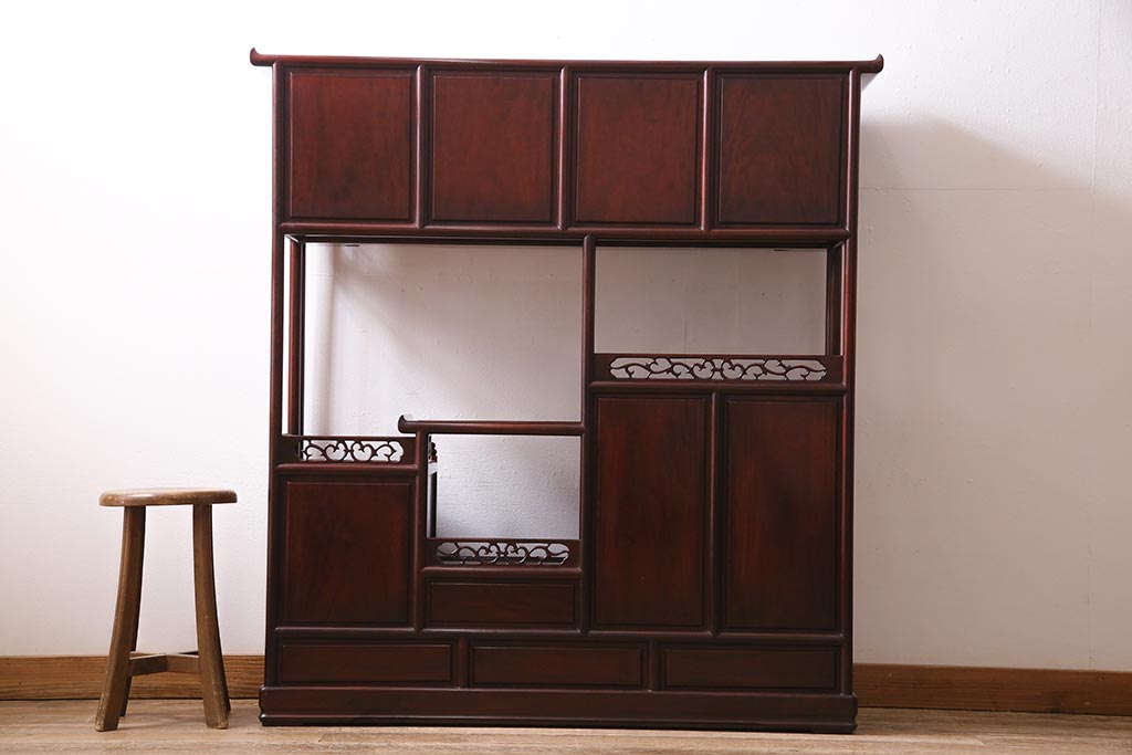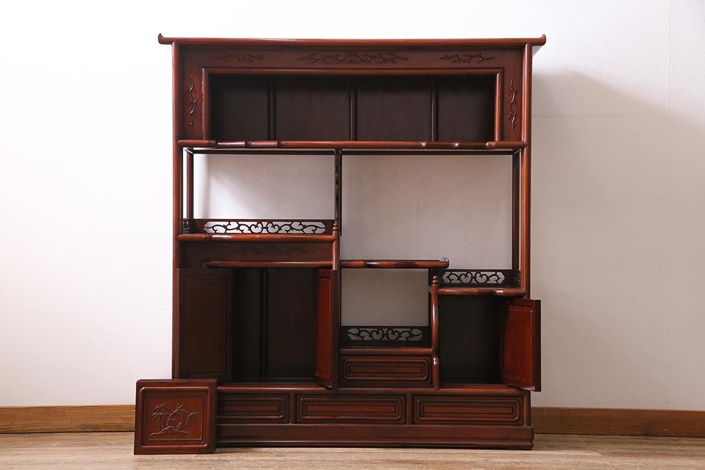 ビンテージ家具 和製ビンテージ 唐木 カリン材 赤みを帯びた木肌が美しい飾り棚(茶棚、陳列棚、花梨材)(R-044563)