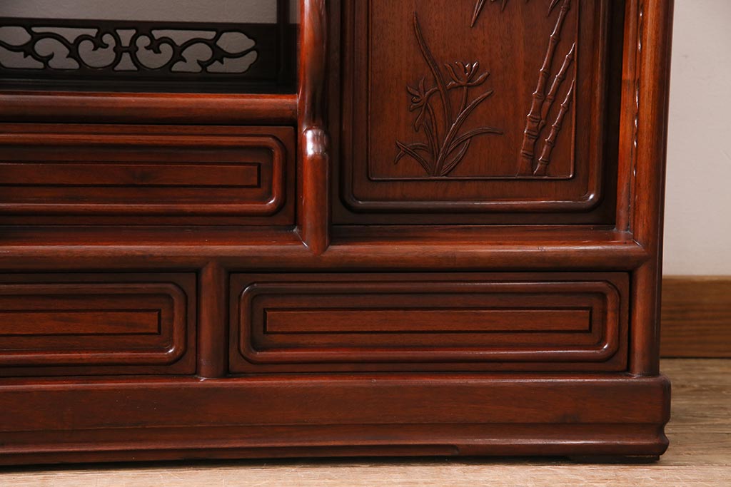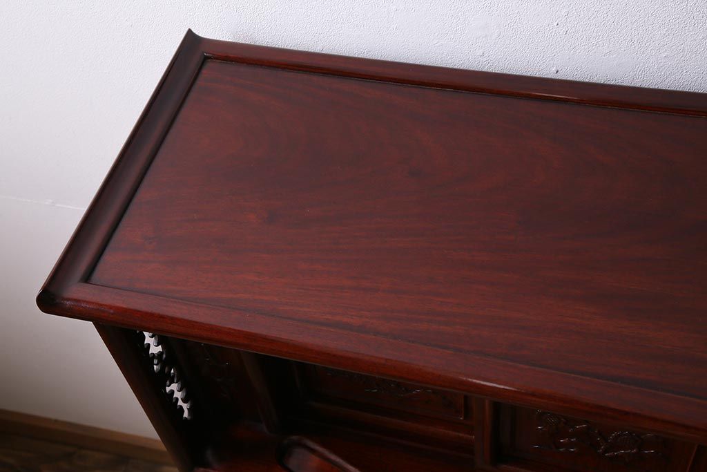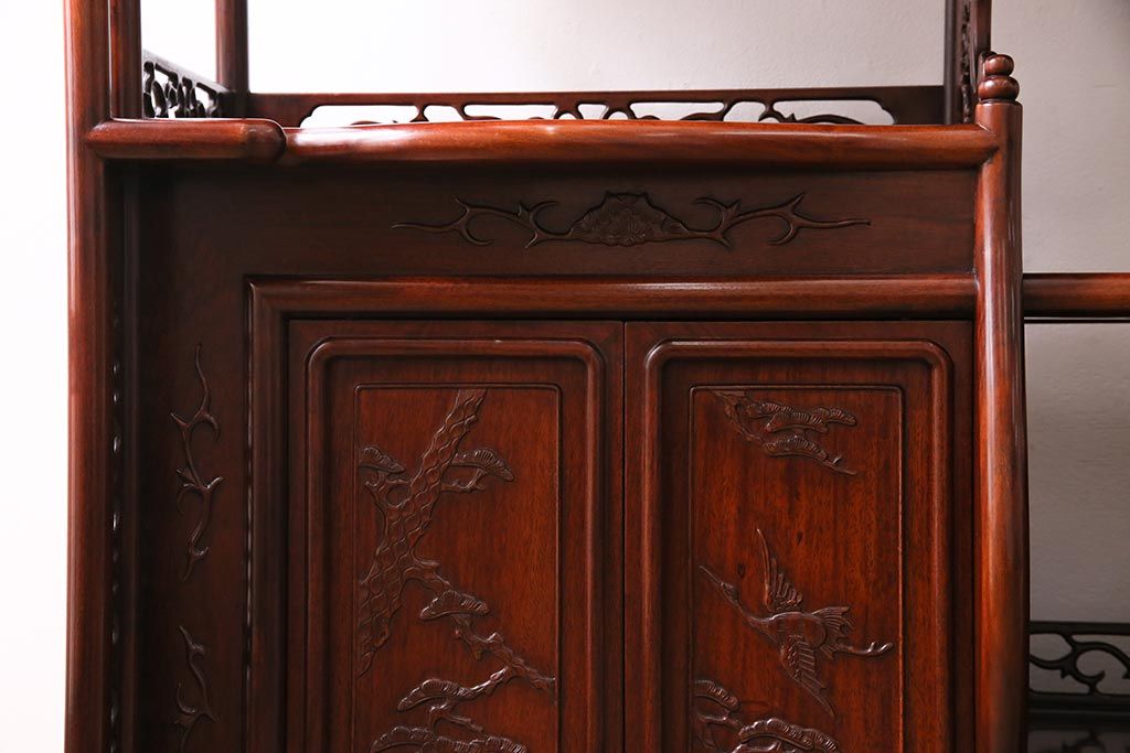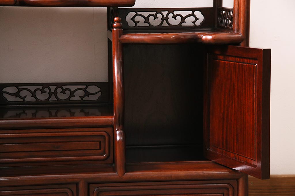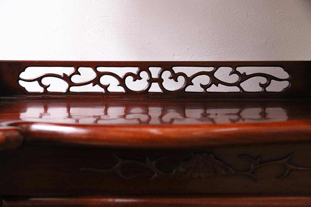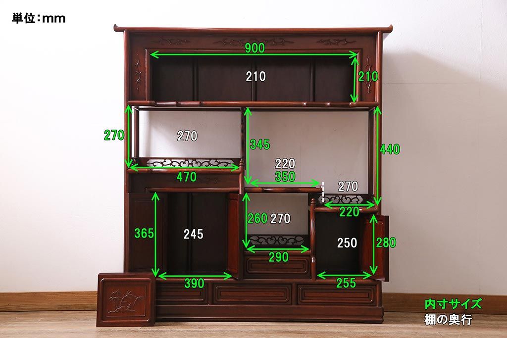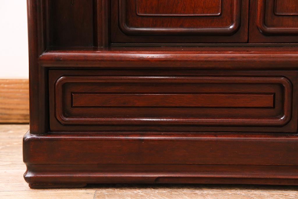 ビンテージ家具 和製ビンテージ 唐木 カリン材 赤みを帯びた木肌が美しい飾り棚(茶棚、陳列棚、花梨材)(R-044563)