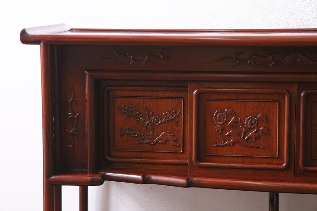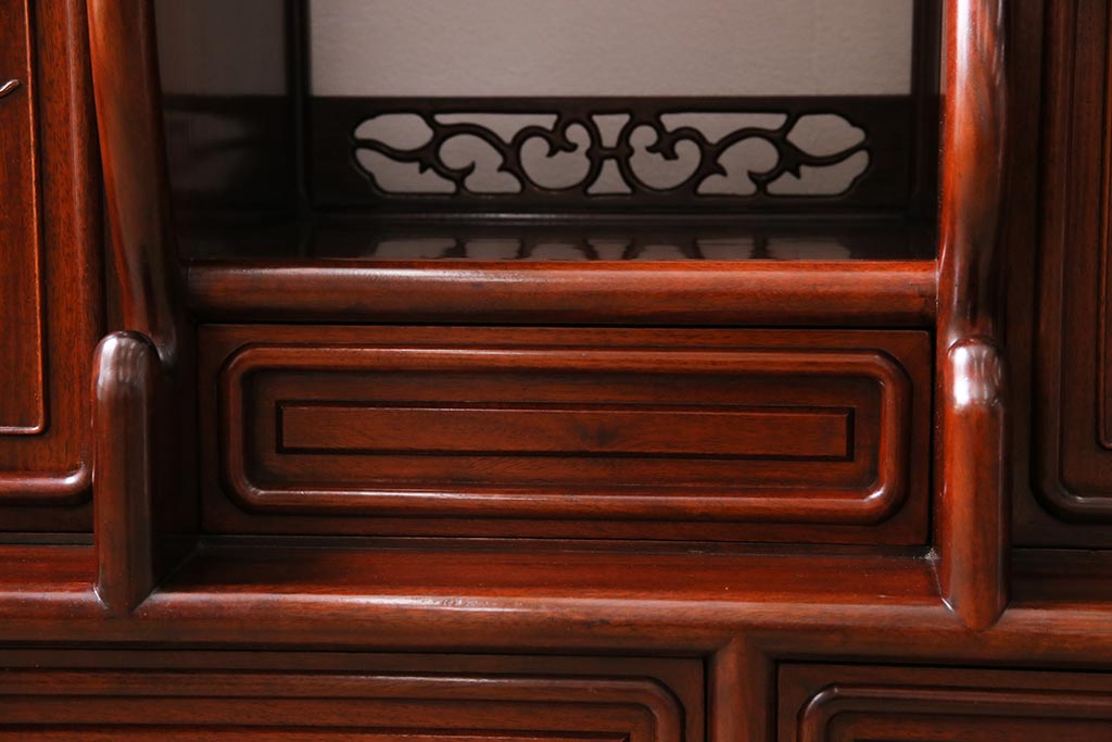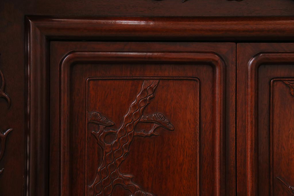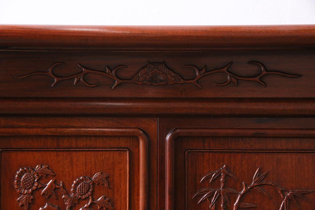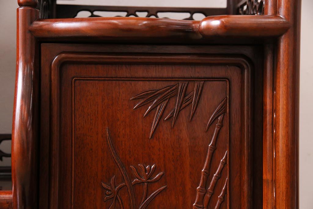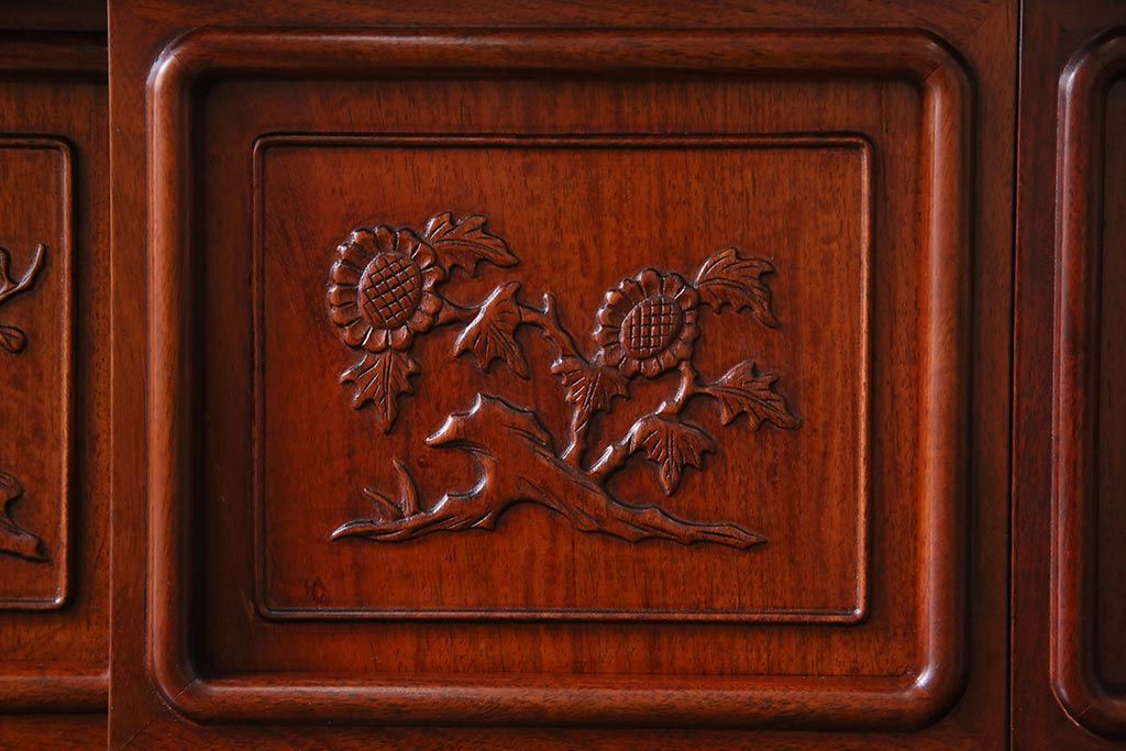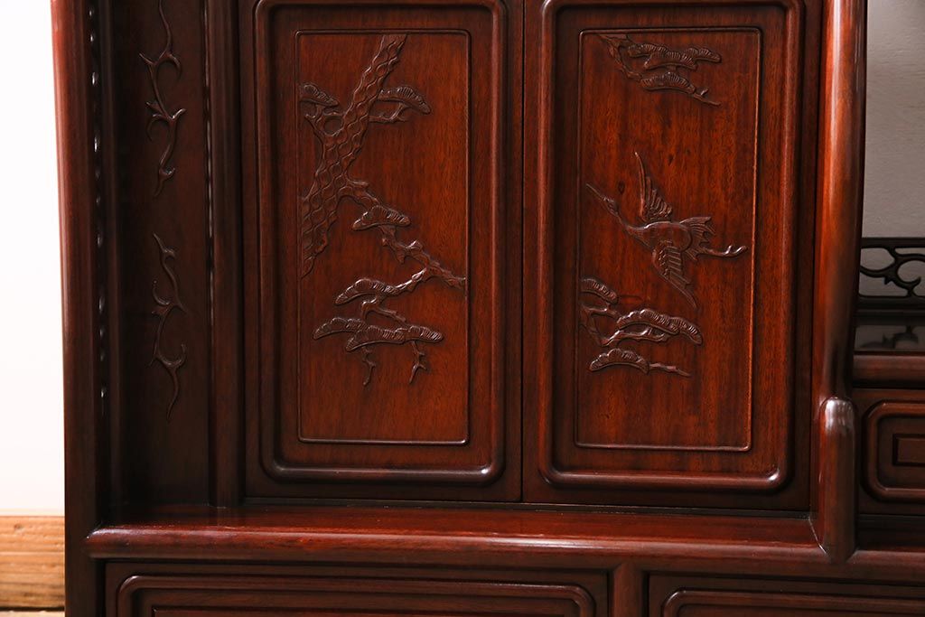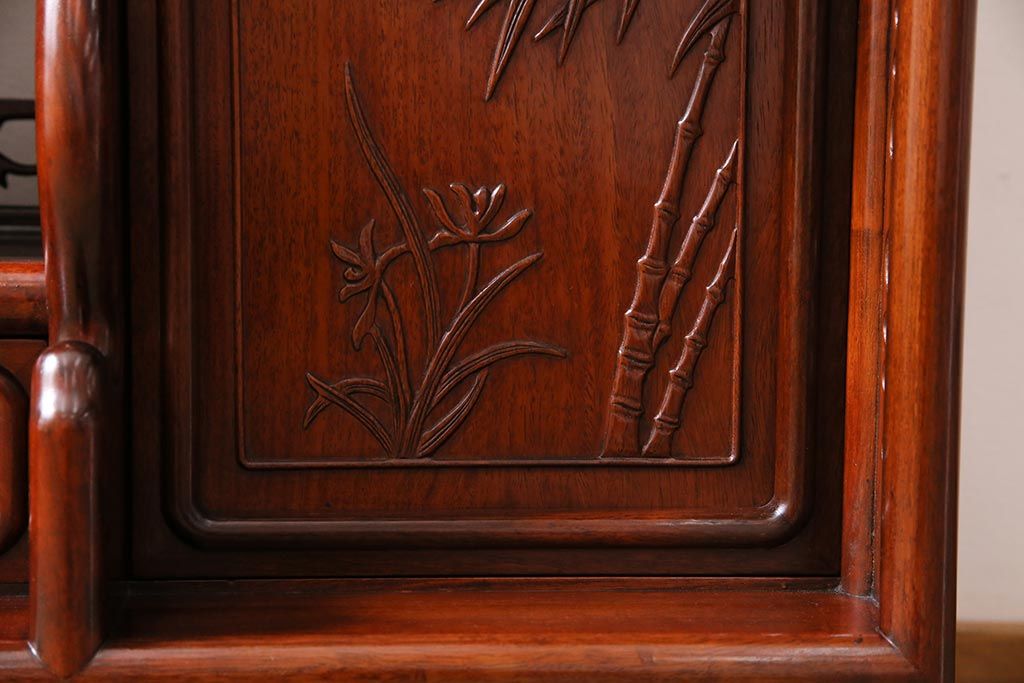 ビンテージ家具 和製ビンテージ 唐木 カリン材 赤みを帯びた木肌が美しい飾り棚(茶棚、陳列棚、花梨材)(R-044563)