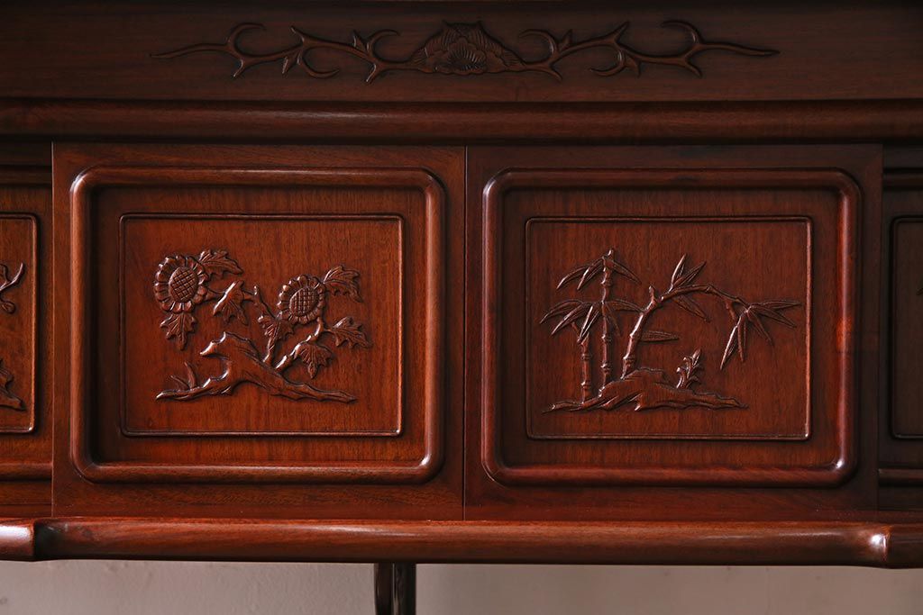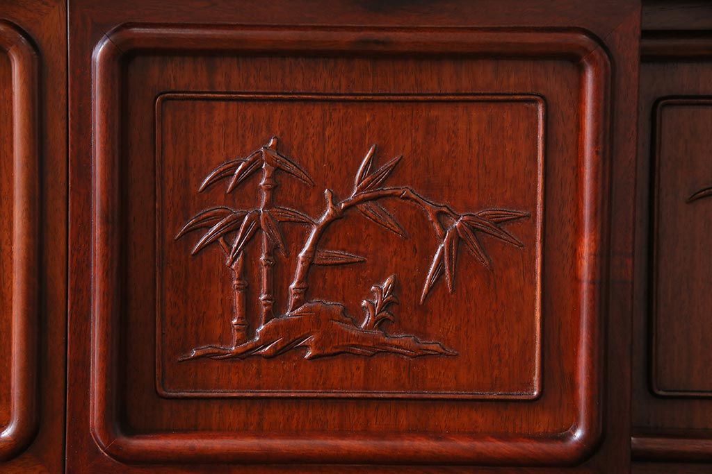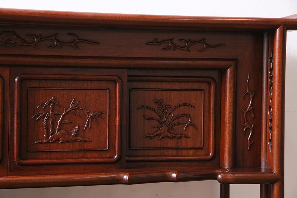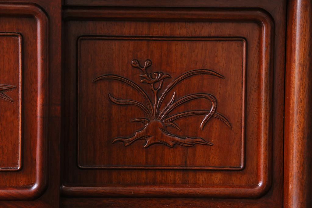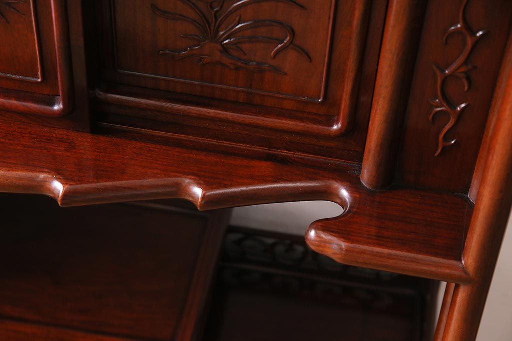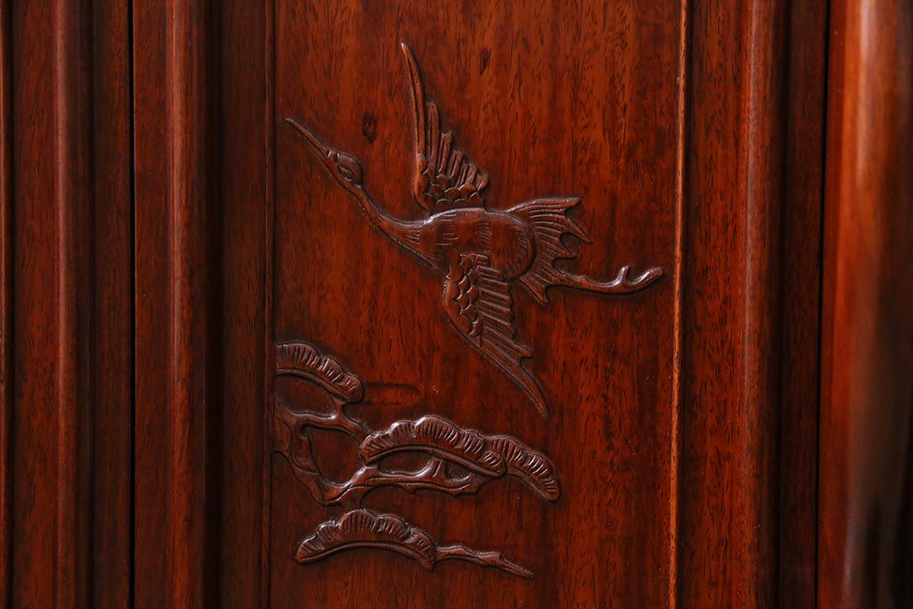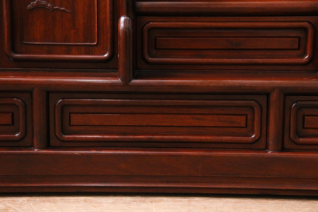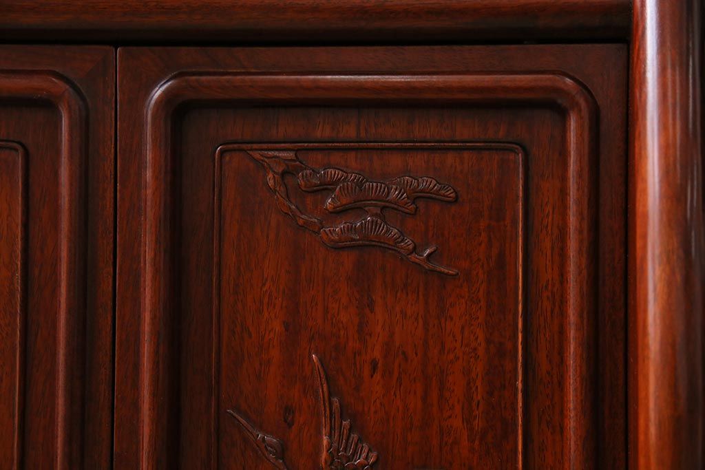 ビンテージ家具 和製ビンテージ 唐木 カリン材 赤みを帯びた木肌が美しい飾り棚(茶棚、陳列棚、花梨材)(R-044563)
