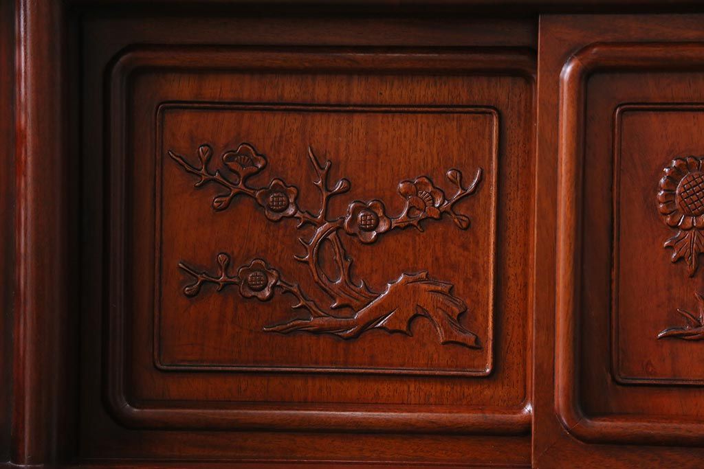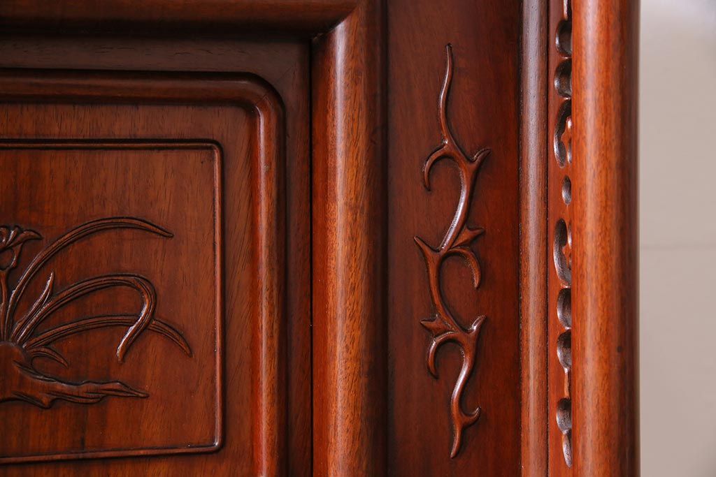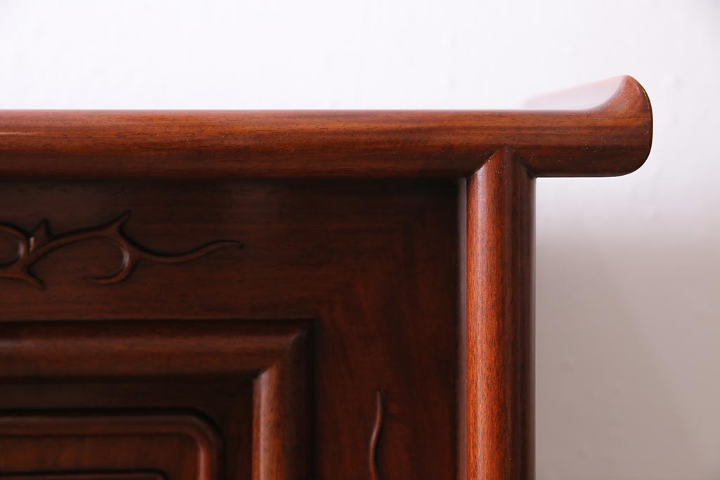 ビンテージ家具 和製ビンテージ 唐木 カリン材 赤みを帯びた木肌が美しい飾り棚(茶棚、陳列棚)(R-044563)です。