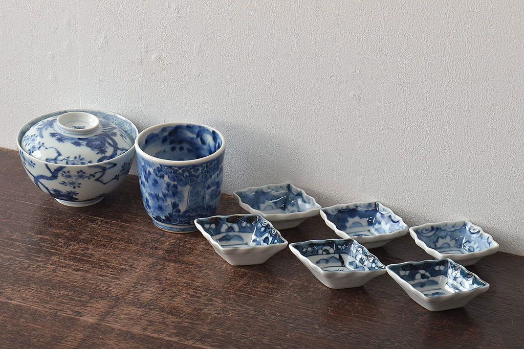 ラフジュ工房> 和食器・茶道具> 急須・湯吞み > 江戸〜明治 古伊万里 渦福蓋茶碗など8点(染付湯呑、小皿、醤油皿)(R-044218)
