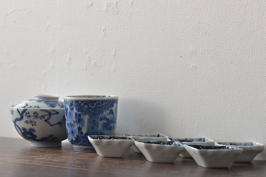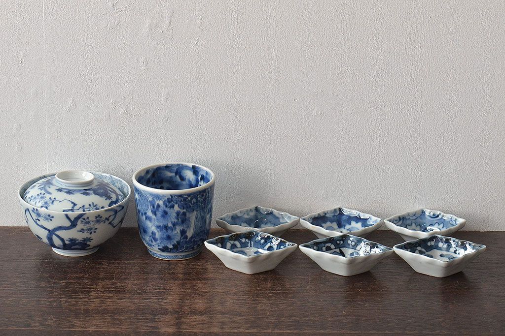 ラフジュ工房> 和食器・茶道具> お椀・茶碗 > 江戸〜明治 古伊万里 渦福蓋茶碗など8点(染付湯呑、小皿、醤油皿)(R-044218)