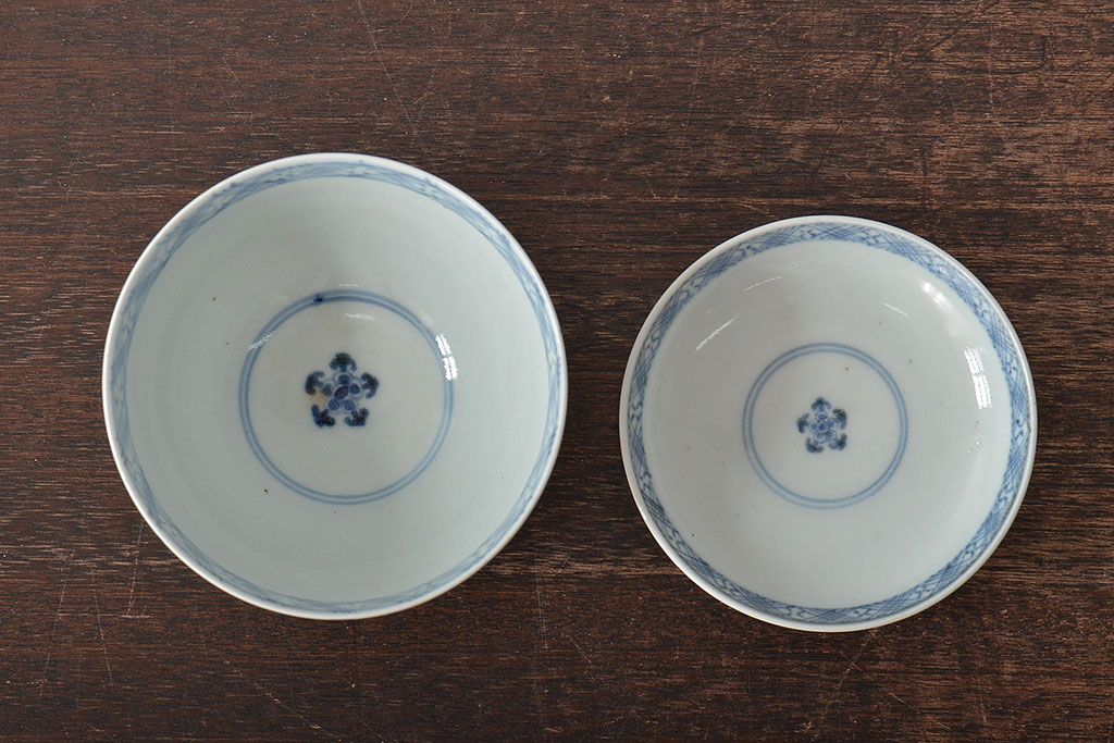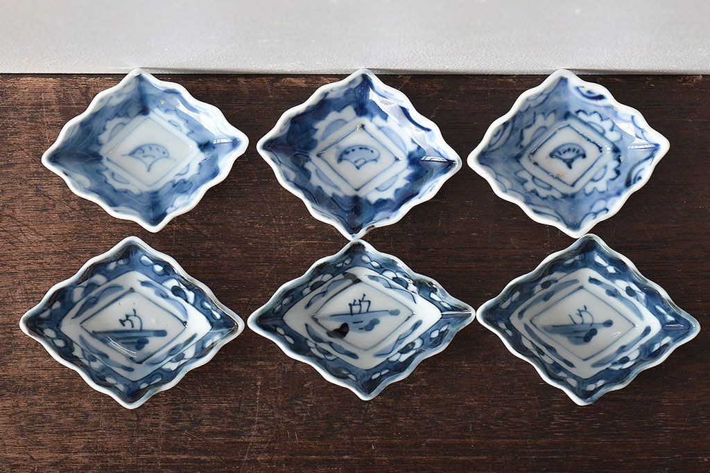 江戸〜明治 古伊万里 渦福蓋茶碗など8点(染付湯呑、小皿、醤油皿)(R-044218)