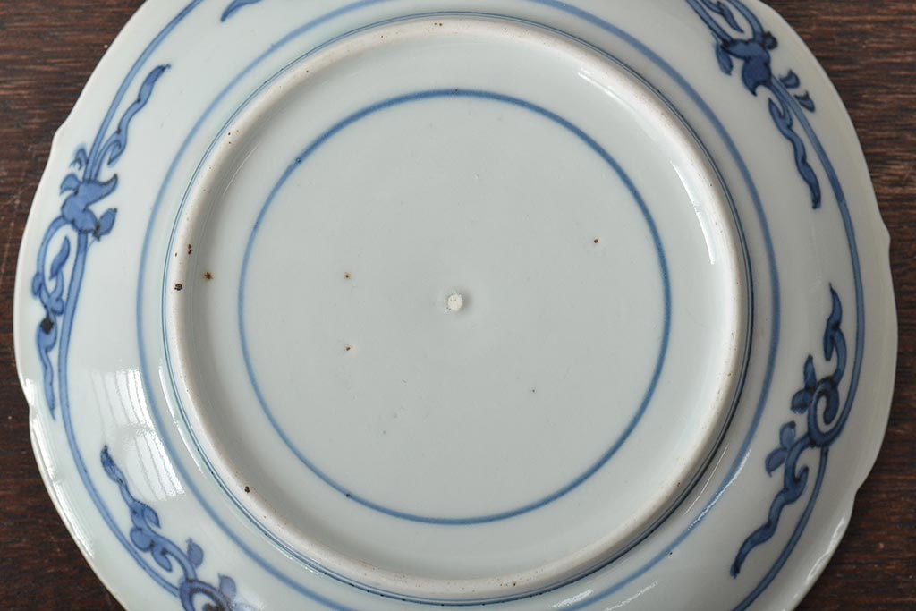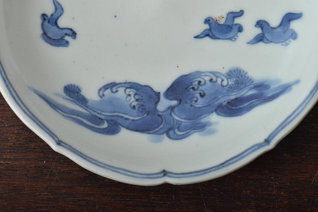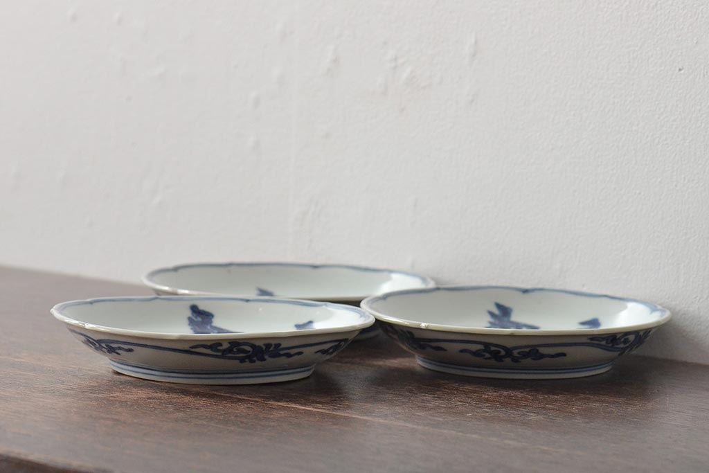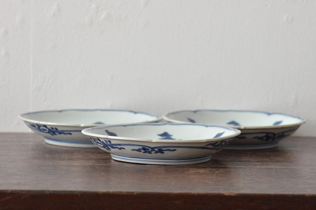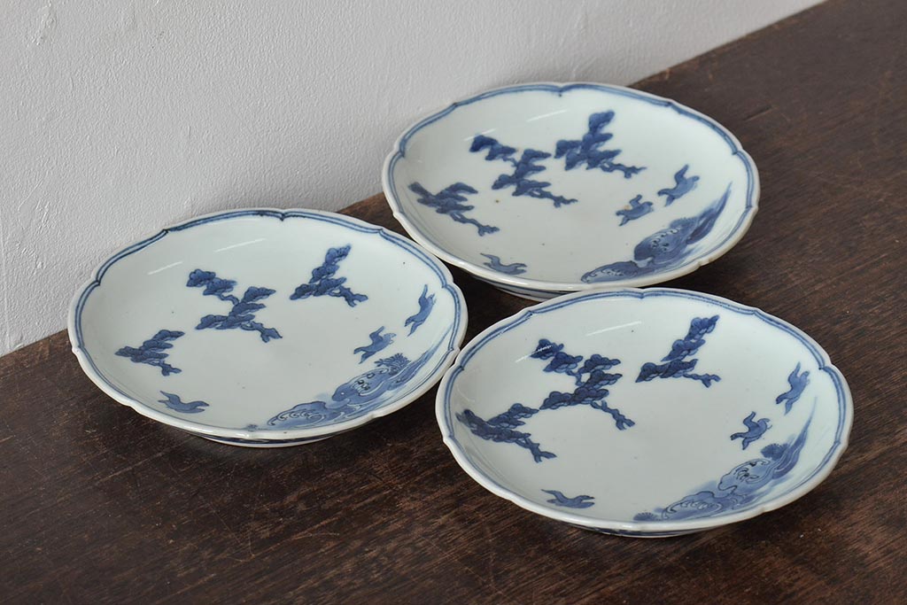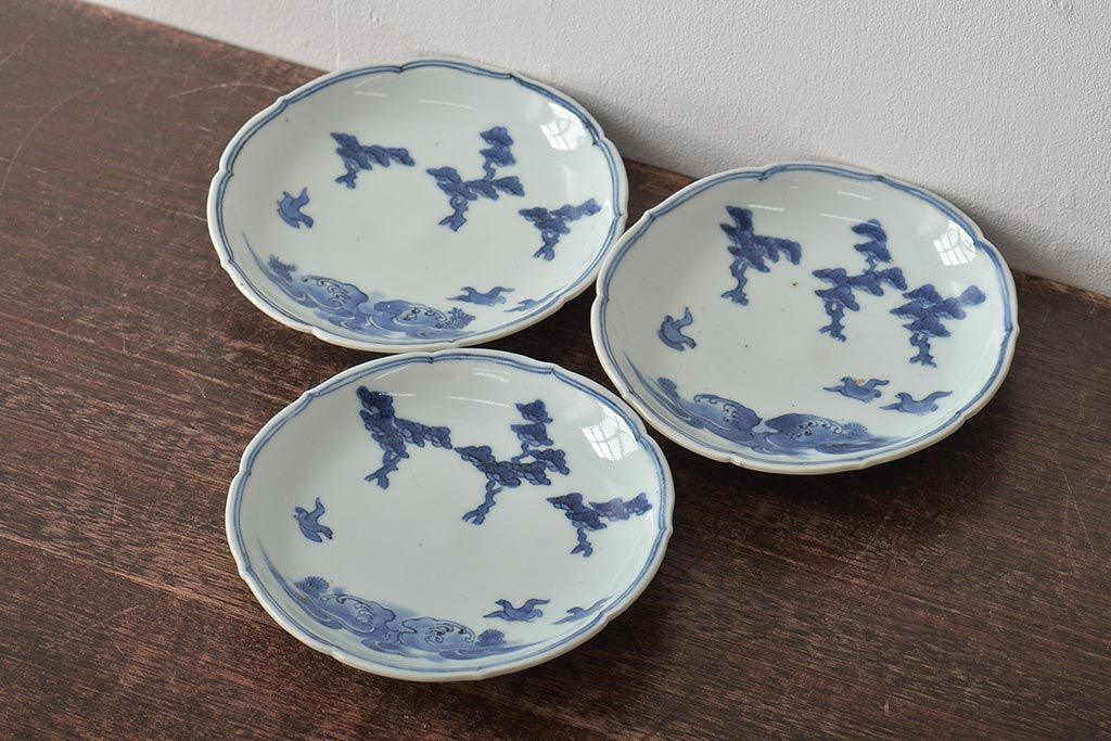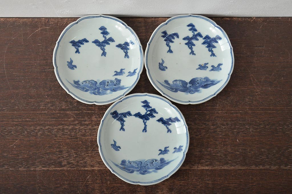 ラフジュ工房> 和食器・茶道具 > 古民具・骨董 江戸期 古伊万里 藍九谷 松と鴎 変形皿3枚(中皿、和食器)(R-044226)