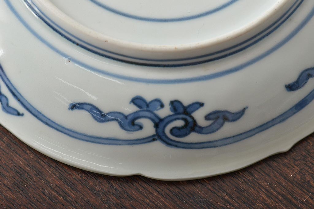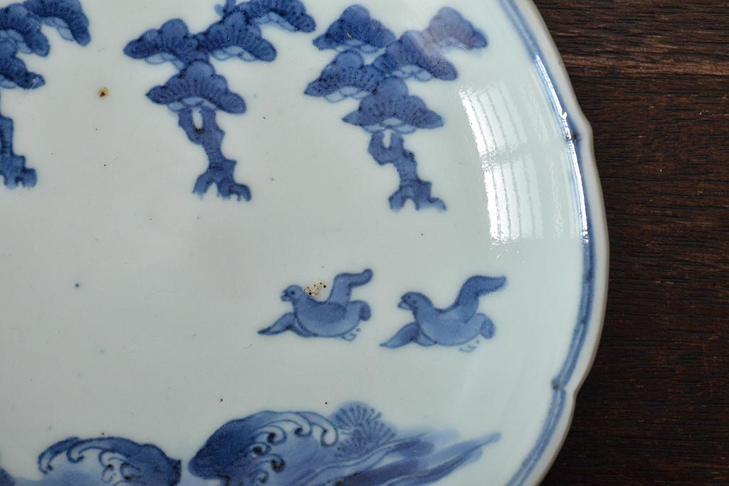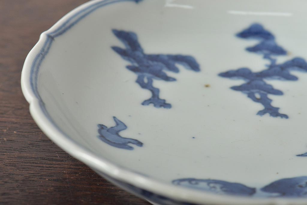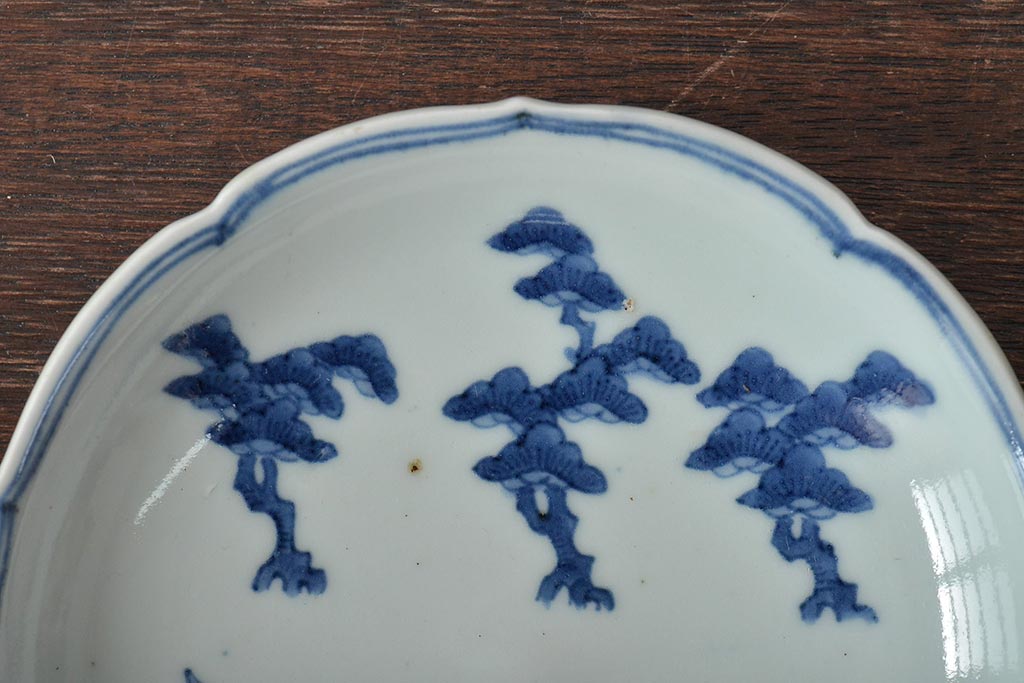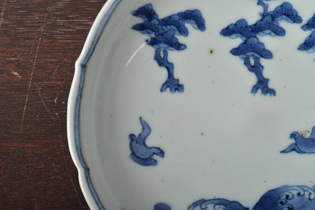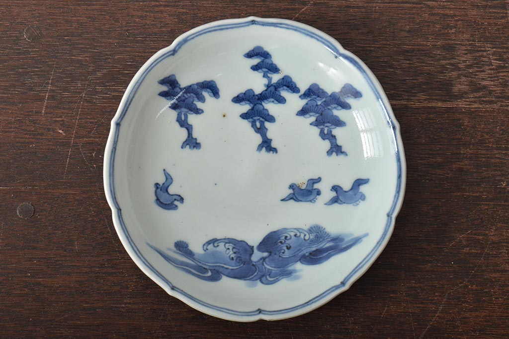 ラフジュ工房> 和食器・茶道具> 皿 > 古民具・骨董 江戸期 古伊万里 藍九谷 松と鴎 変形皿3枚(中皿、和食器)(R-044226)