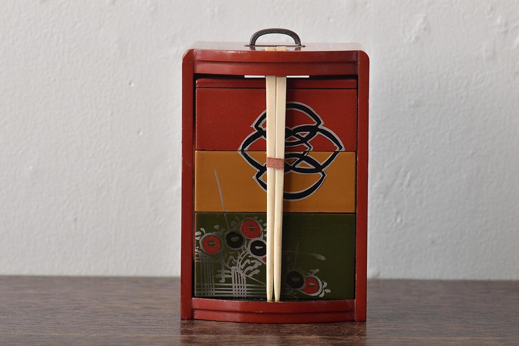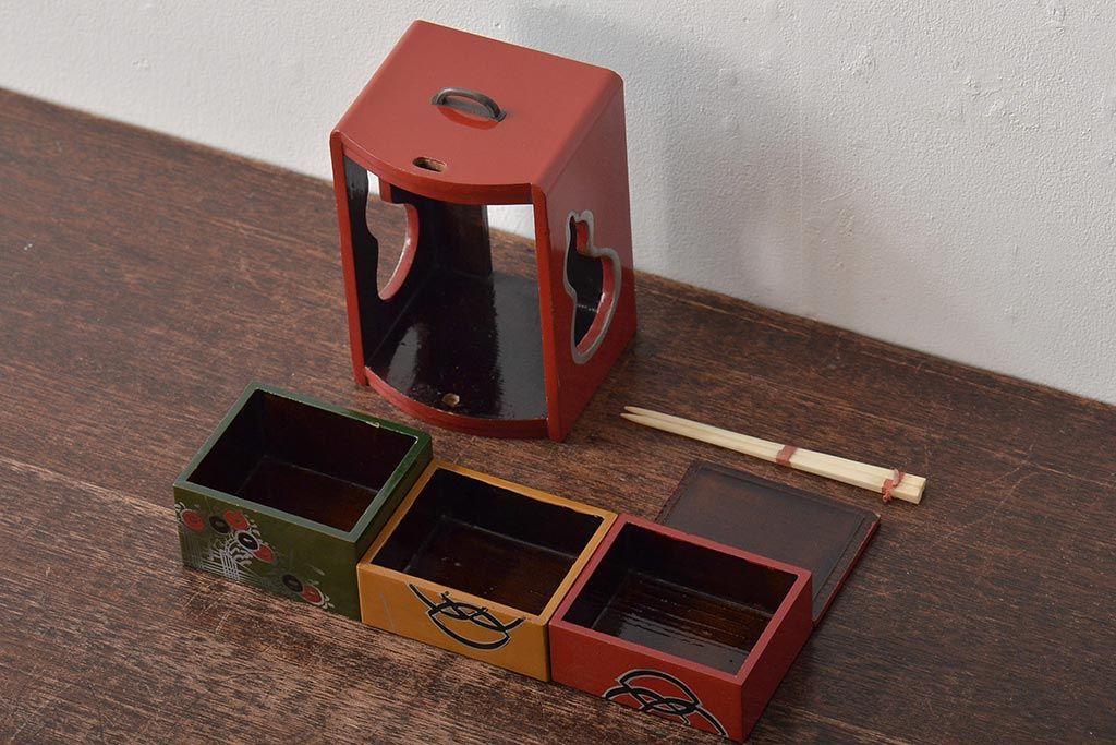 アンティーク雑貨 昭和初期 レトロな木製弁当箱(遊山箱、野弁当箱、重箱、漆器)(R-044319)