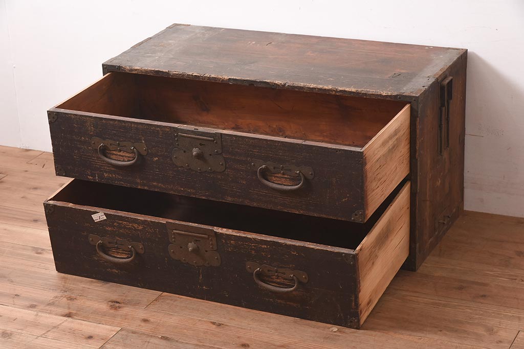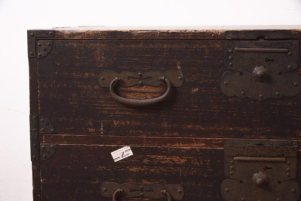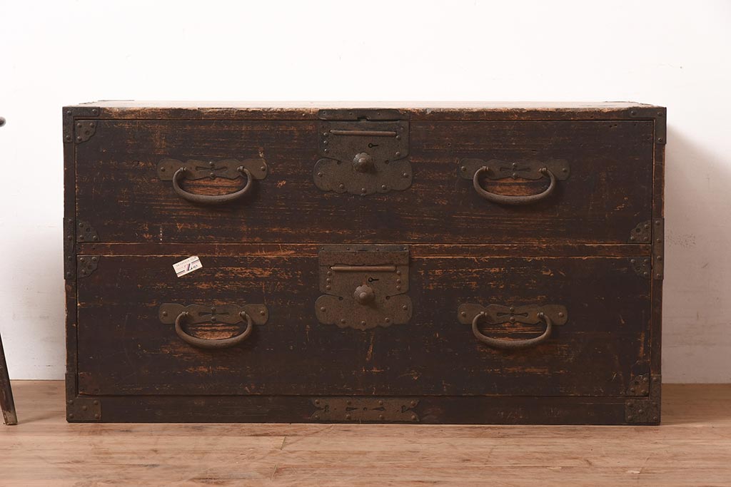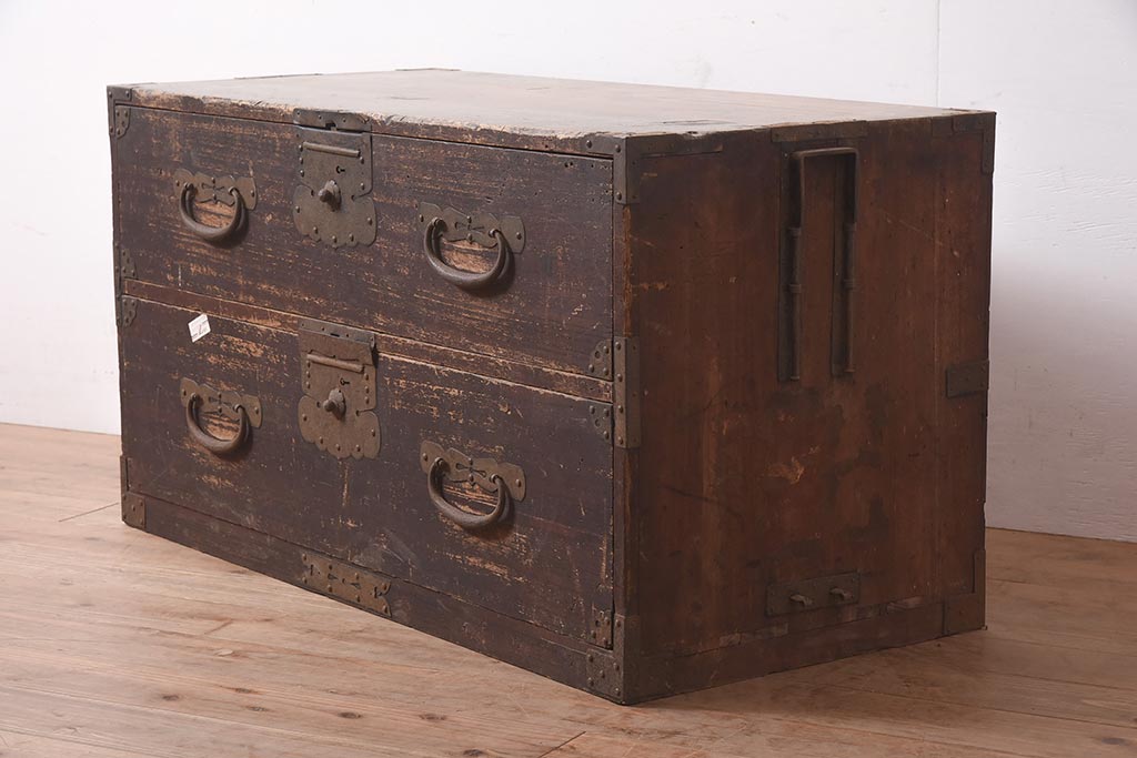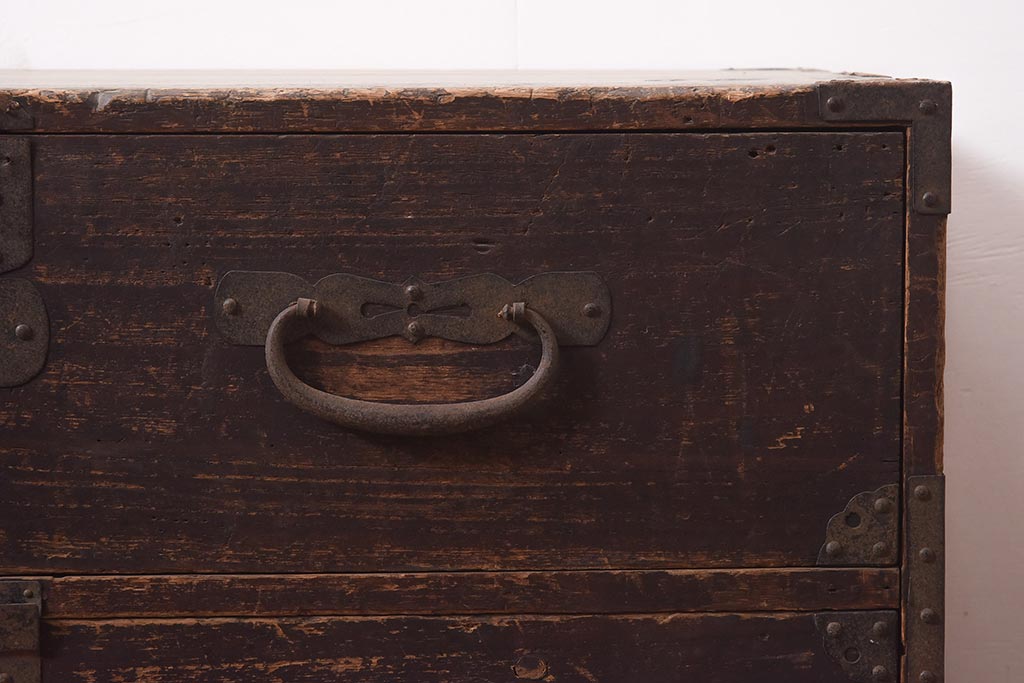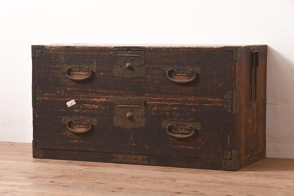 和箪笥 > アンティーク家具 明治期 関東衣装箪笥 渋い和の雰囲気漂う時代箪笥サイドボード(引き出し、サイドチェスト、収納箪笥、時代箪笥)(R-044584)
