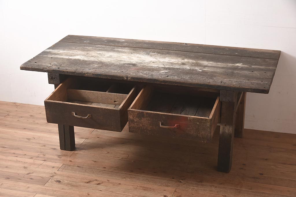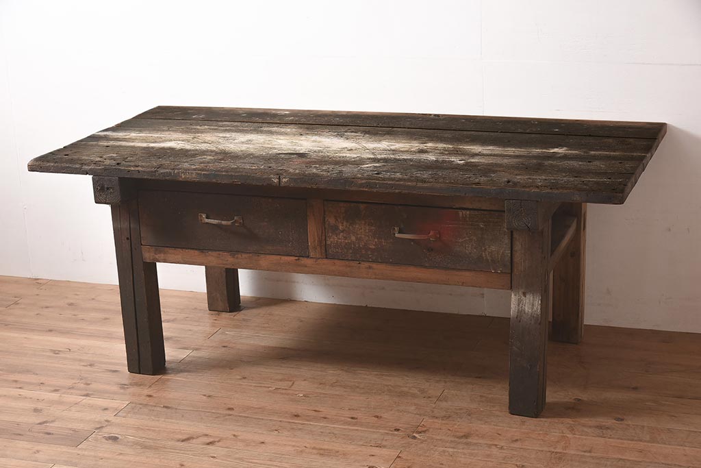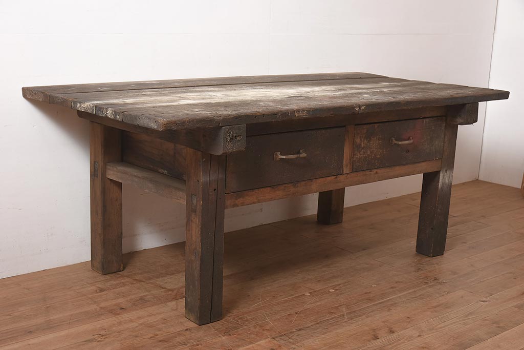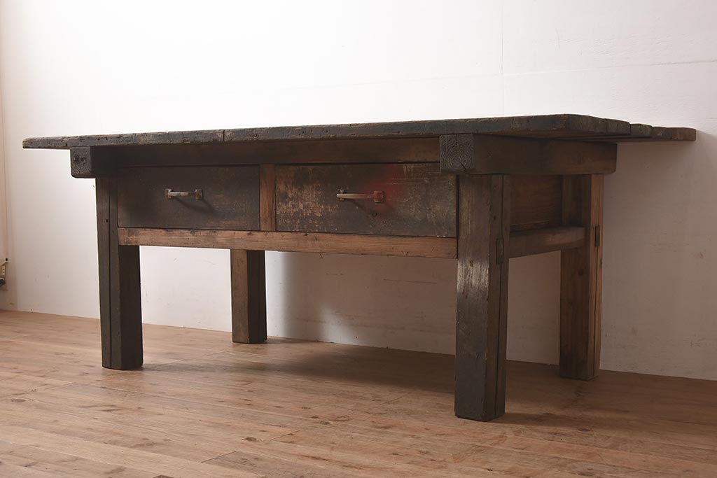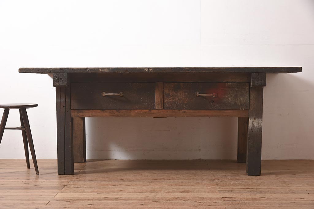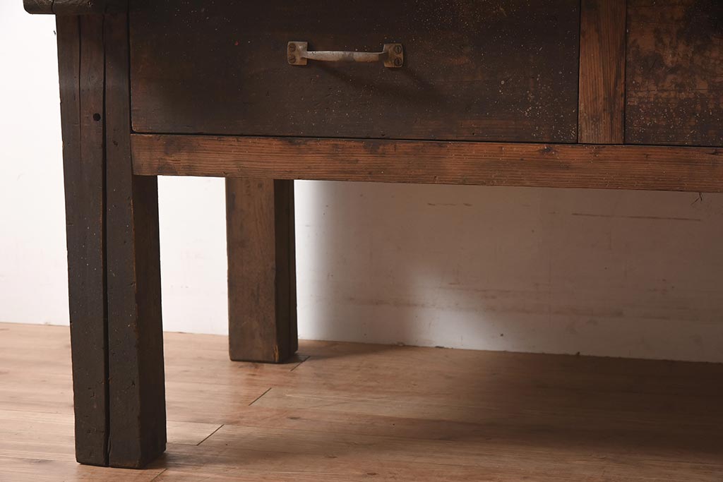 ラフジュ工房> テーブル> 作業台 > アンティーク家具 昭和初期 大振り インダストリアルな作業台(座机、在宅ワーク、在宅用デスク、テーブル)(R-044041)