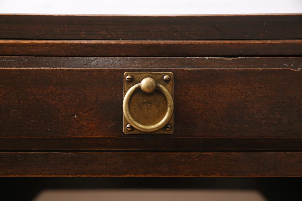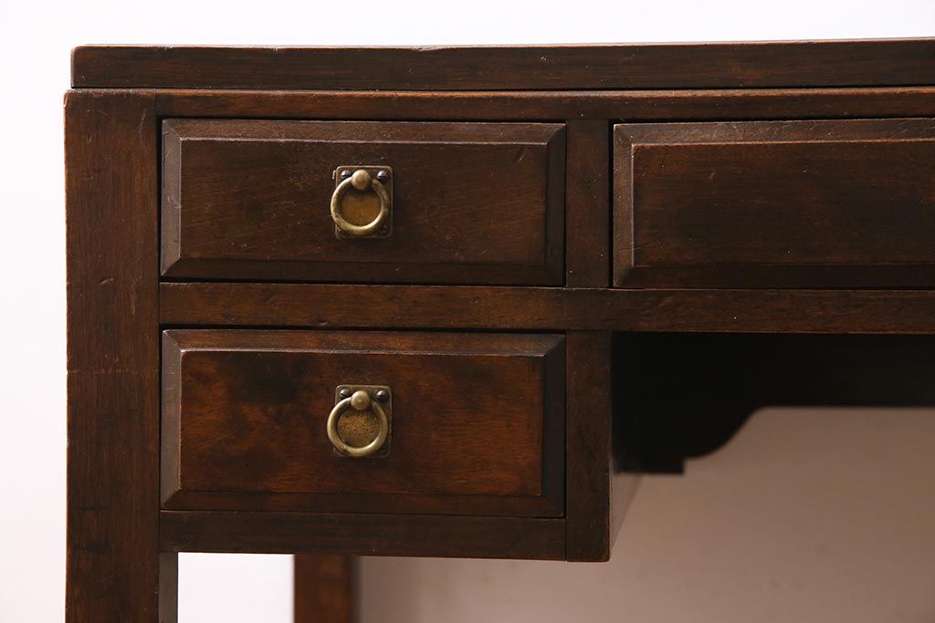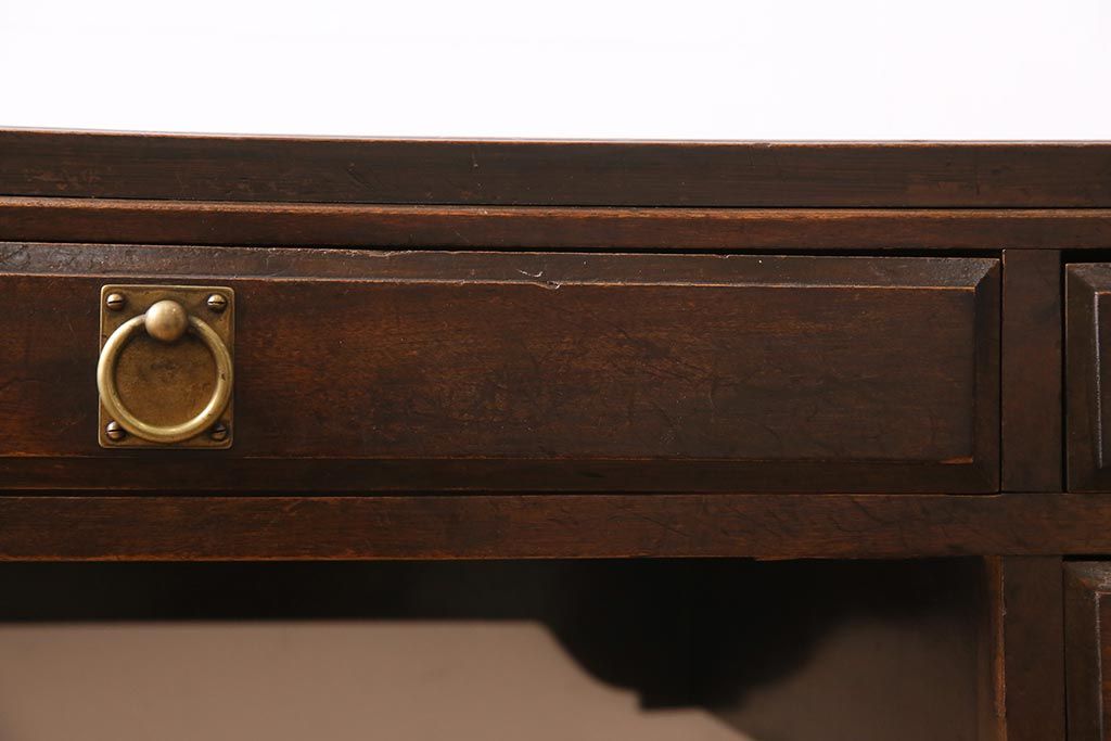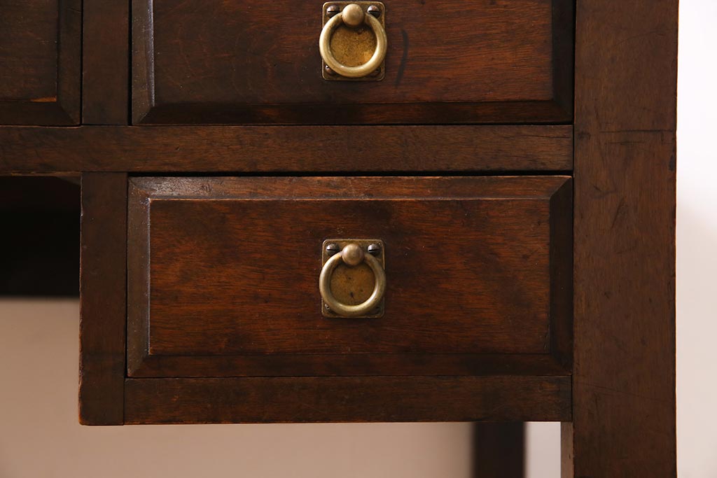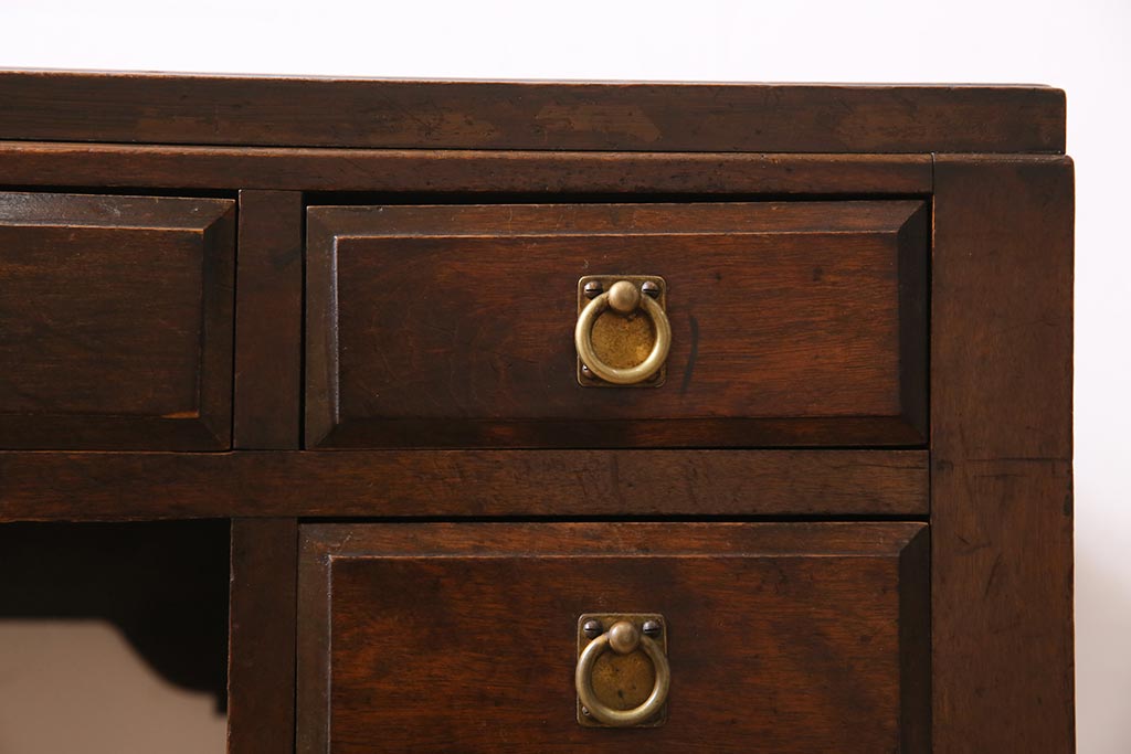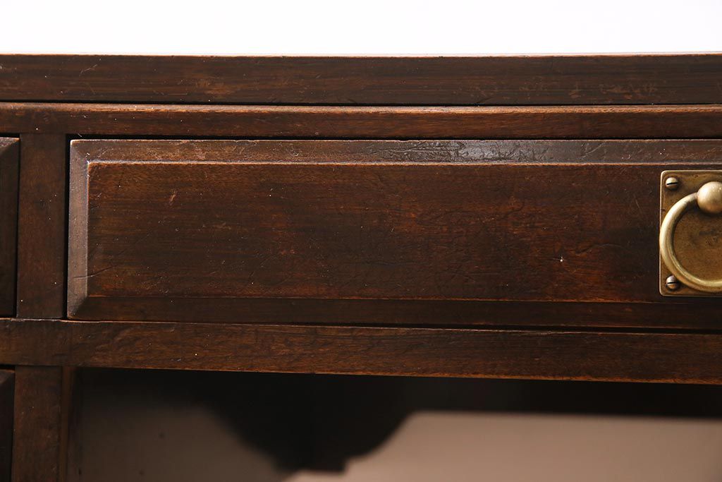 デスク> 片袖机・両袖机 > アンティーク家具 和製アンティーク 大正昭和初期 桜材・天板中央突き板 大正ロマンな雰囲気漂う両袖デスク(机、在宅ワーク、在宅用ワークデスク)(R-044562)