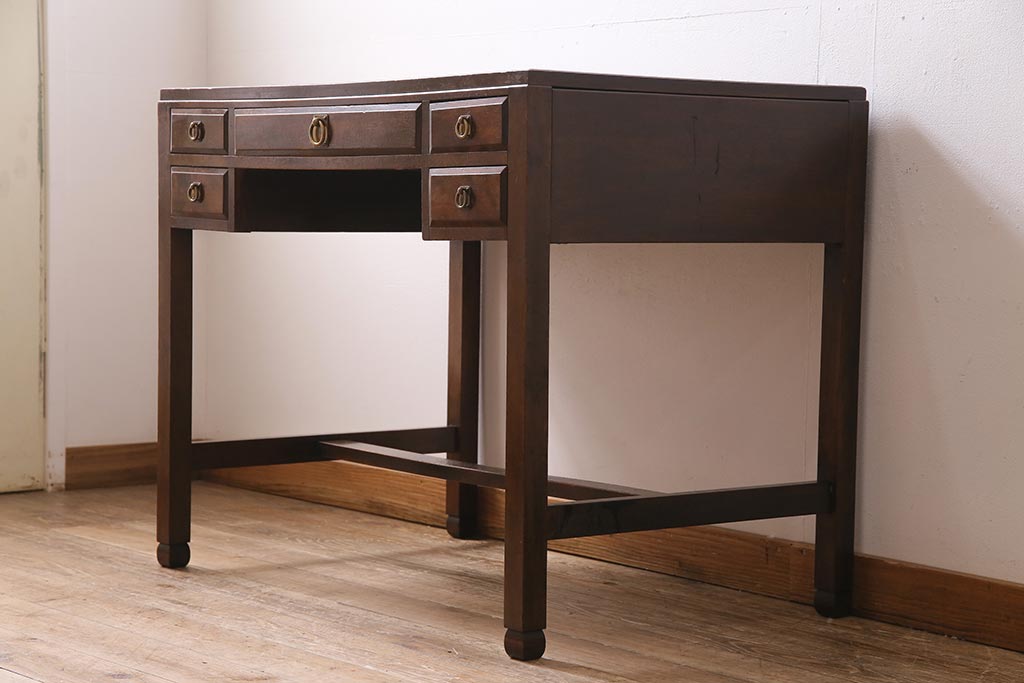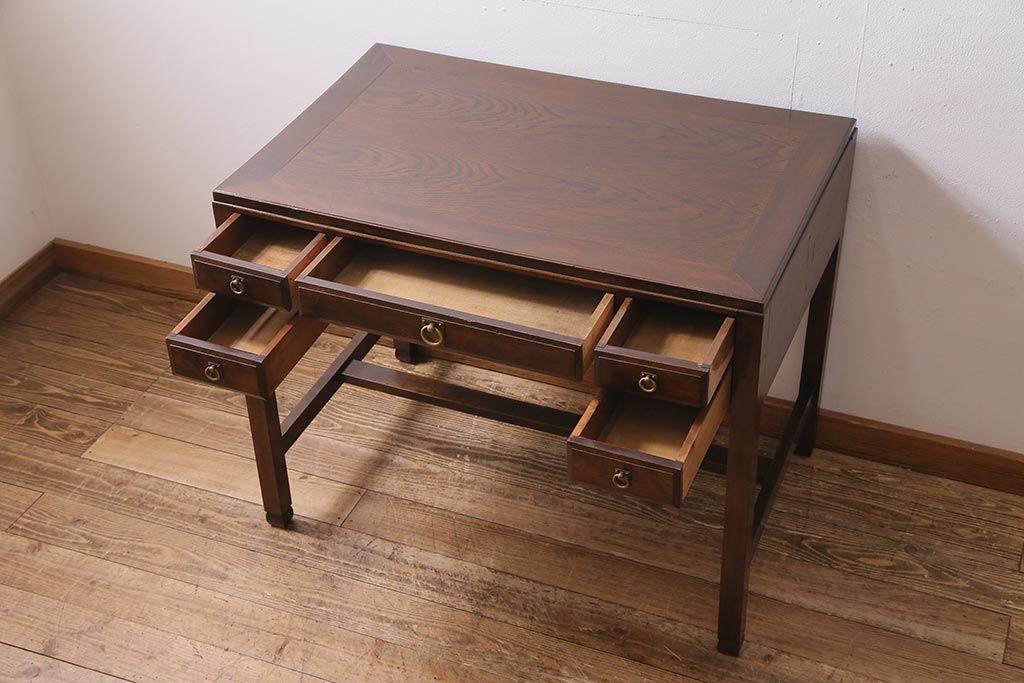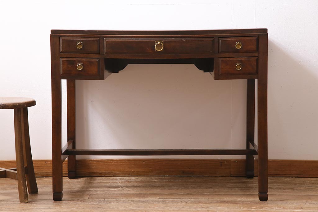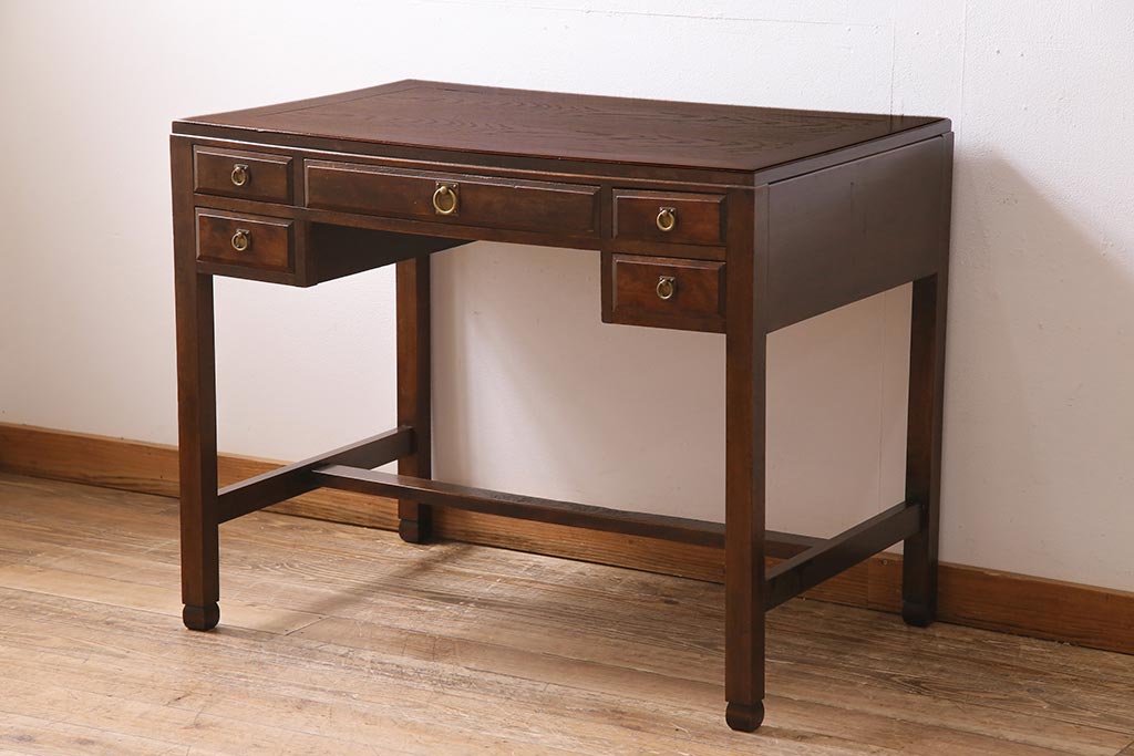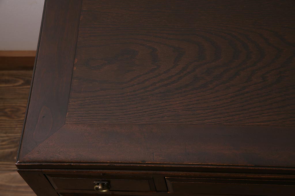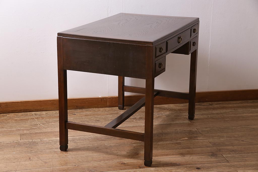 デスク> 片袖机・両袖机 > アンティーク家具 和製アンティーク 大正昭和初期 桜材・天板中央突き板 大正ロマンな雰囲気漂う両袖デスク(机、在宅ワーク、在宅用ワークデスク)(R-044562)