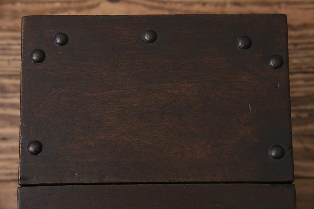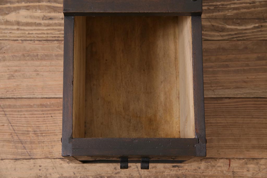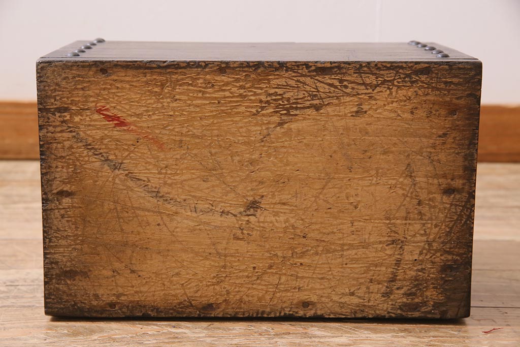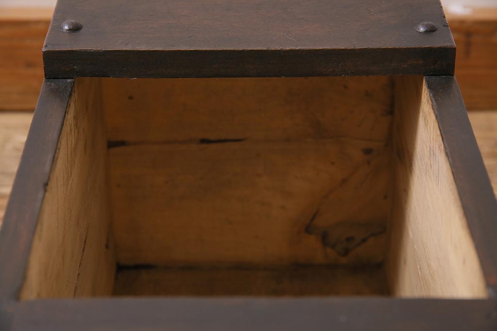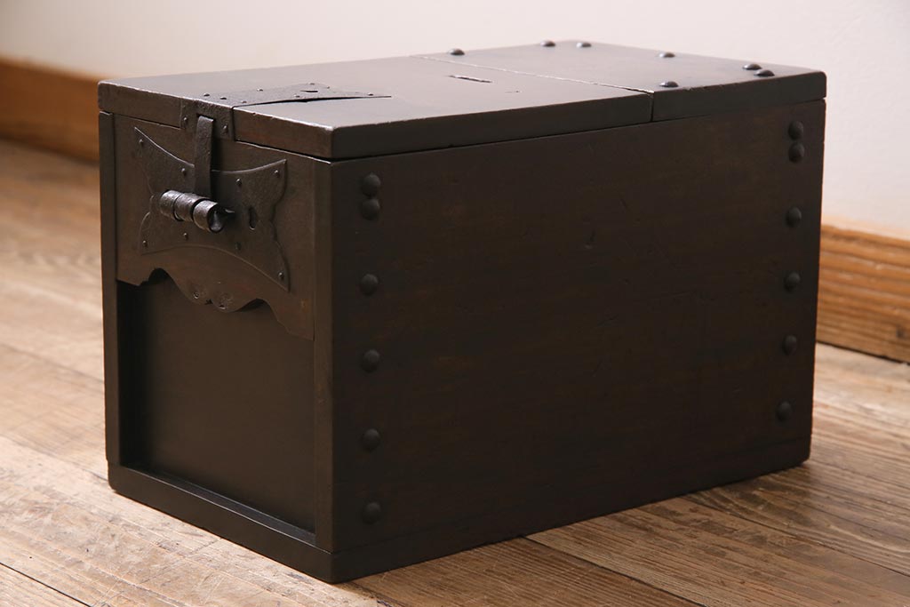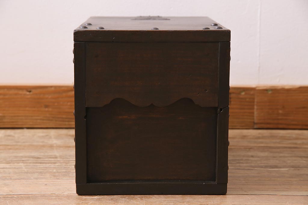 古道具・古民具> 銭箱 > アンティーク雑貨 古民具・骨董 明治大正期 朴の木(ホオノキ) 古い金具が風格漂う銭箱(銭函)(R-044619)