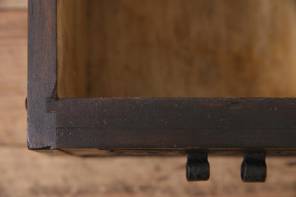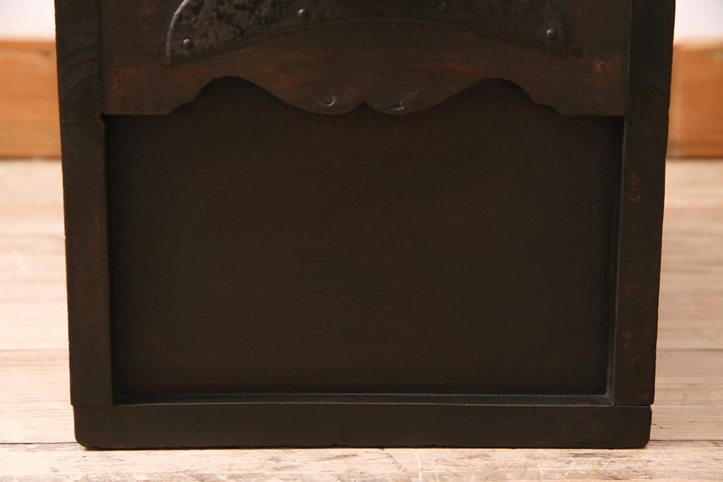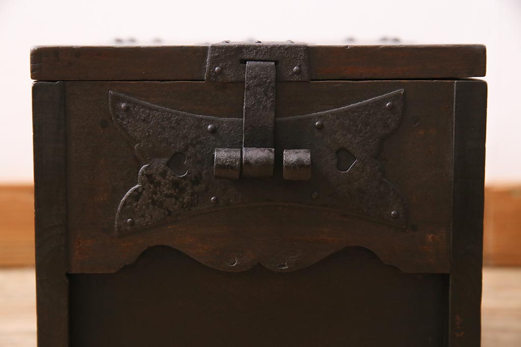 骨董・美術品 > アンティーク雑貨 古民具・骨董 明治大正期 朴の木(ホオノキ) 古い金具が風格漂う銭箱(銭函)(R-044619)