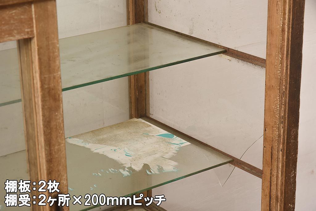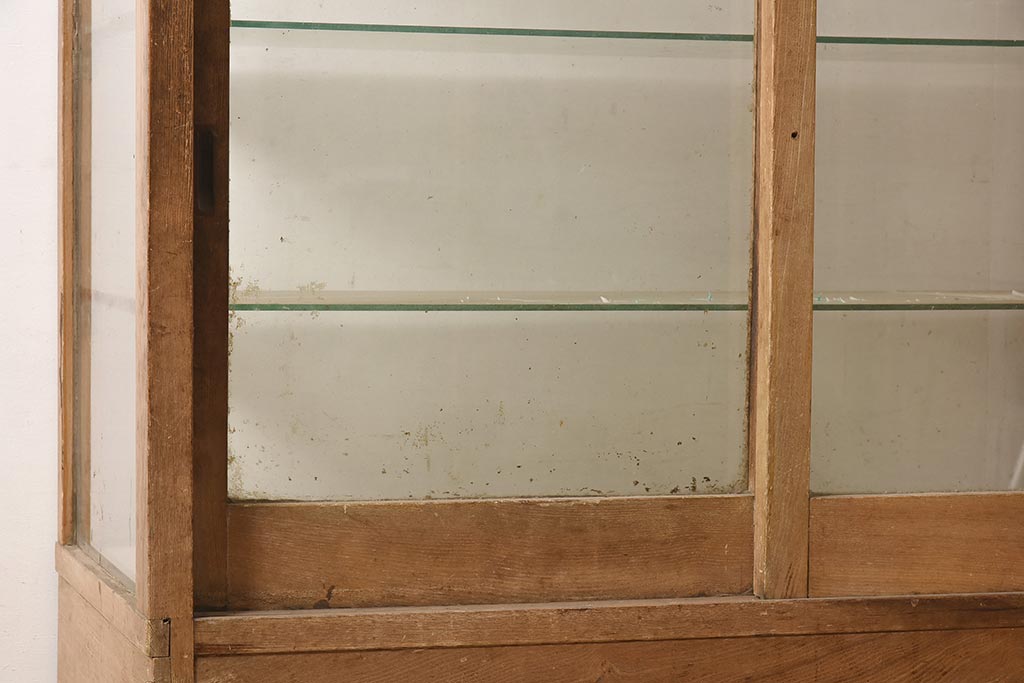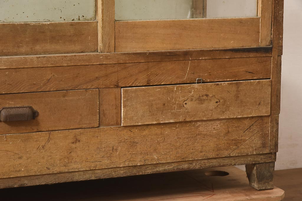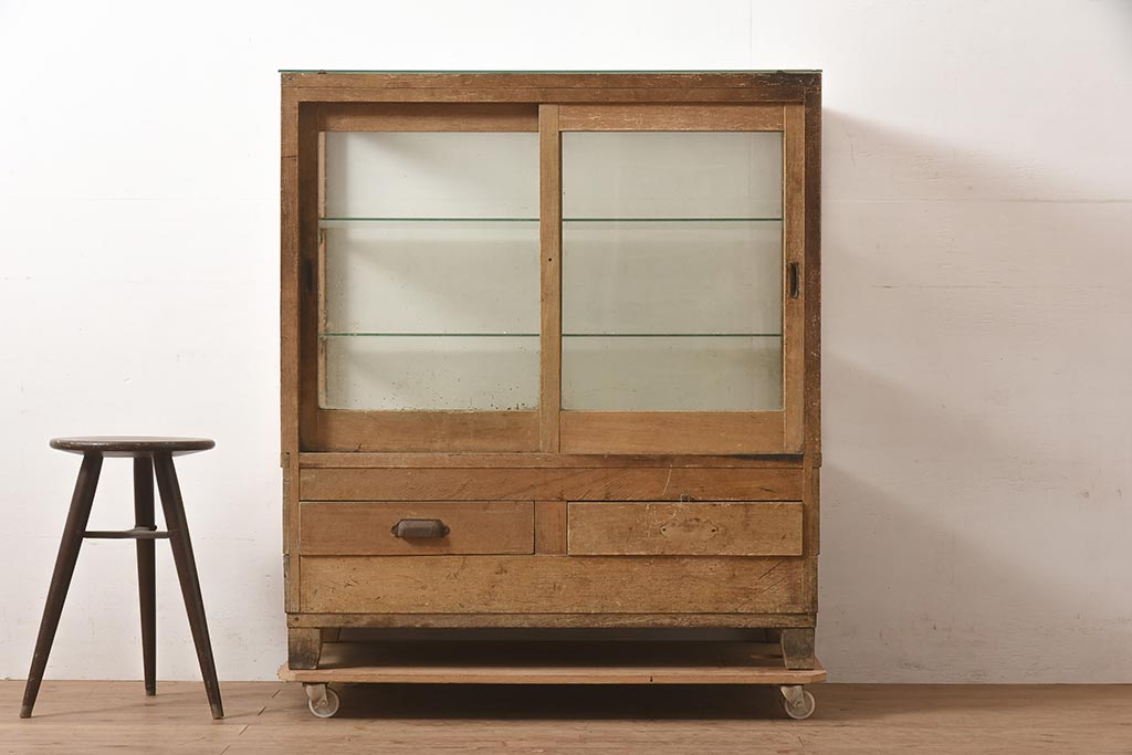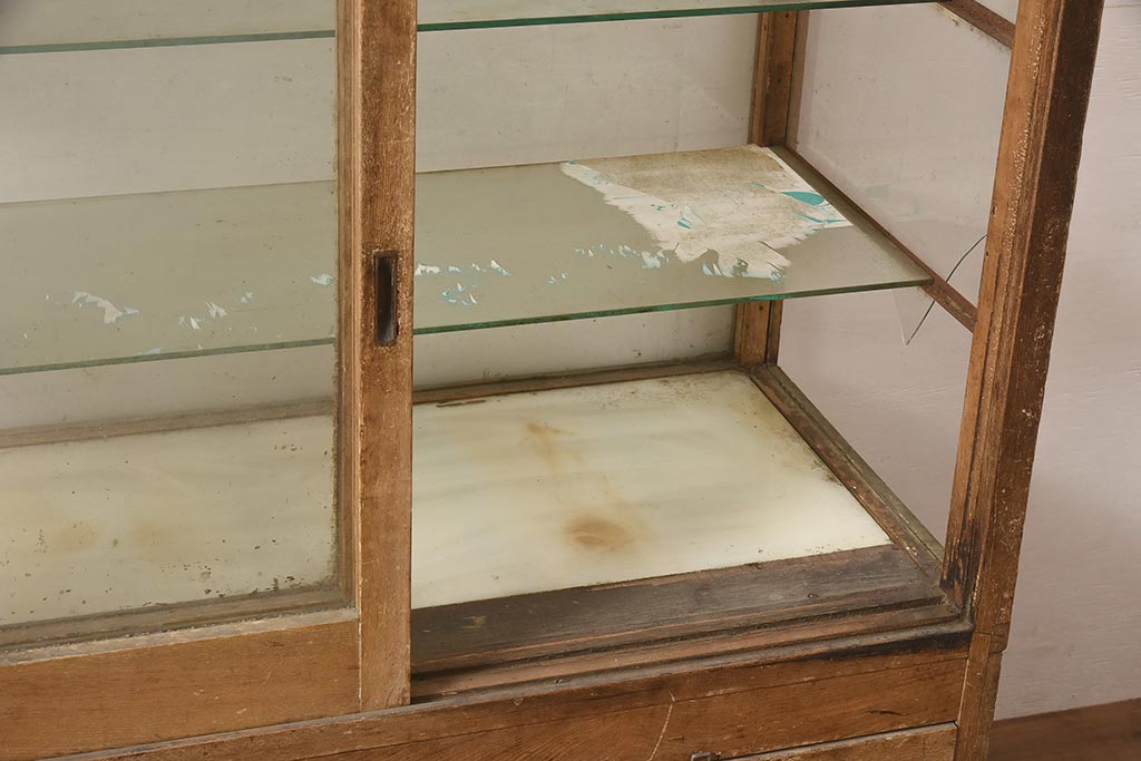 ラフジュ工房> ガラスケース・ショーケース > アンティーク家具 昭和中期 ナラ材 引き出し付きのレトロなガラスケース(ショーケース、陳列棚)(R-044556)