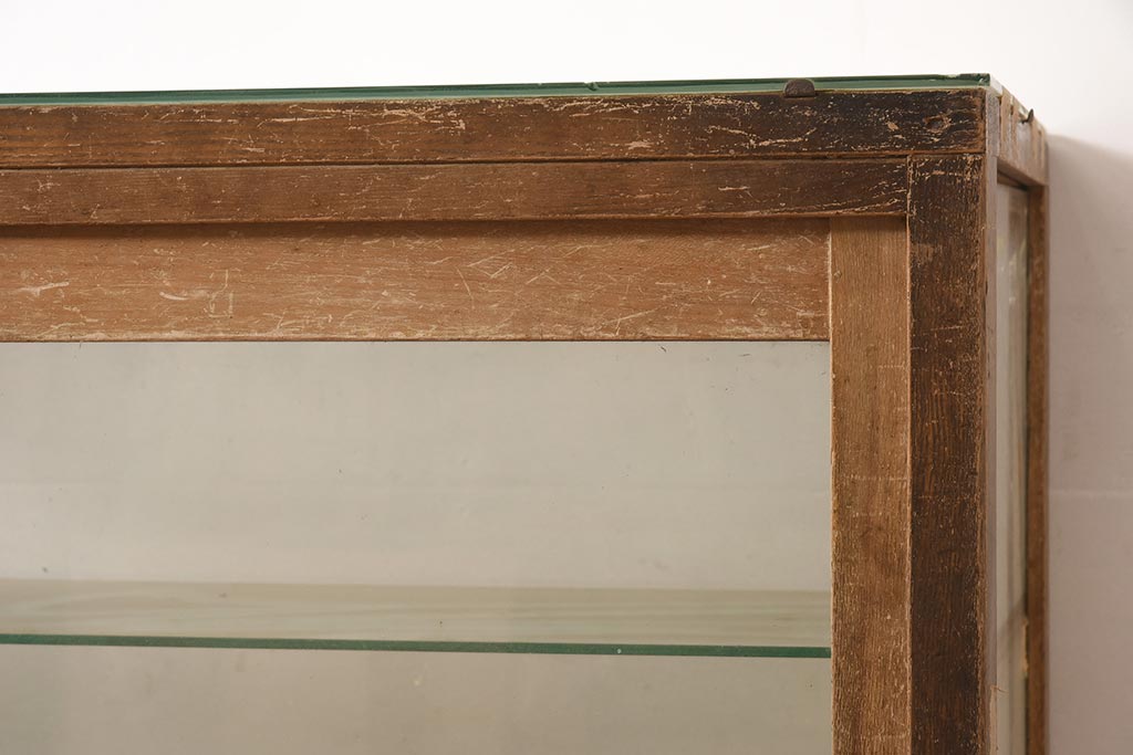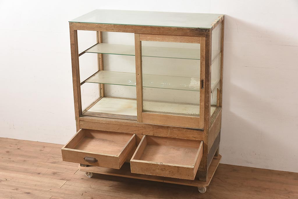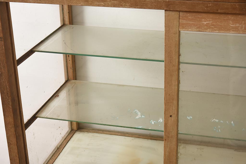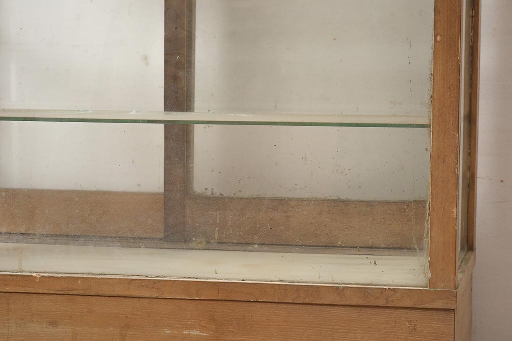 ラフジュ工房> ガラスケース・ショーケース> カウンターショーケース > アンティーク家具 昭和中期 ナラ材 引き出し付きのレトロなガラスケース(ショーケース、陳列棚)(R-044556)