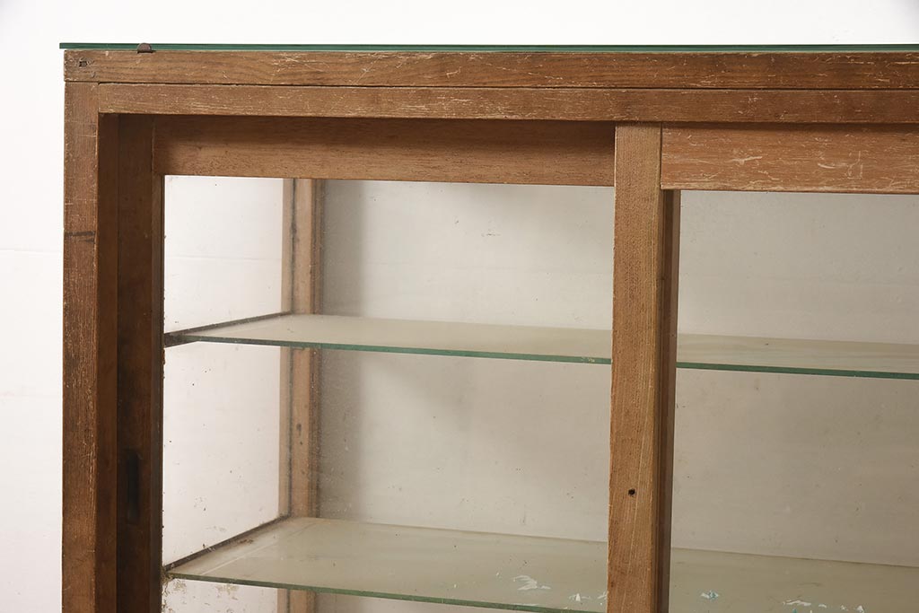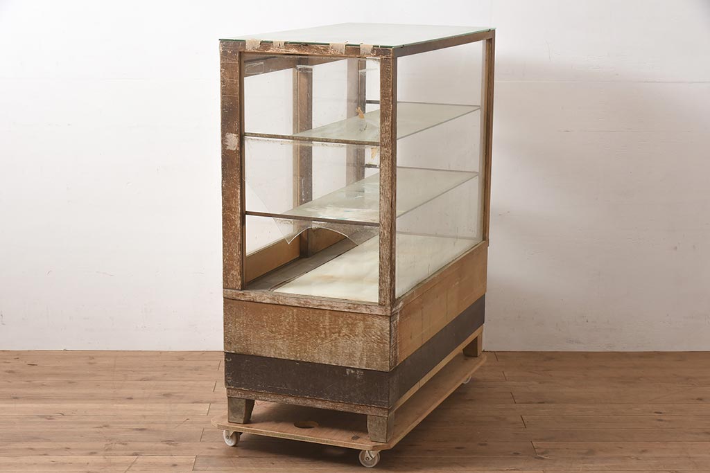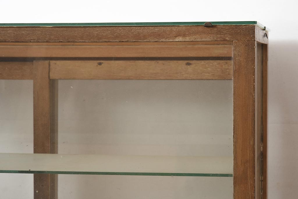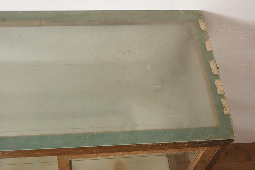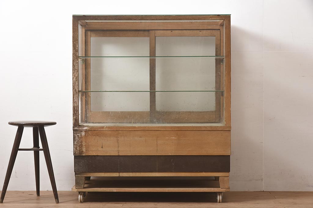 ラフジュ工房> ガラスケース・ショーケース> カウンターショーケース > アンティーク家具 昭和中期 ナラ材 引き出し付きのレトロなガラスケース(ショーケース、陳列棚)(R-044556)