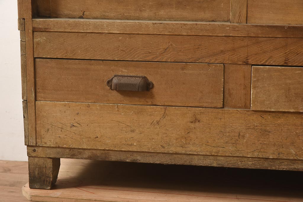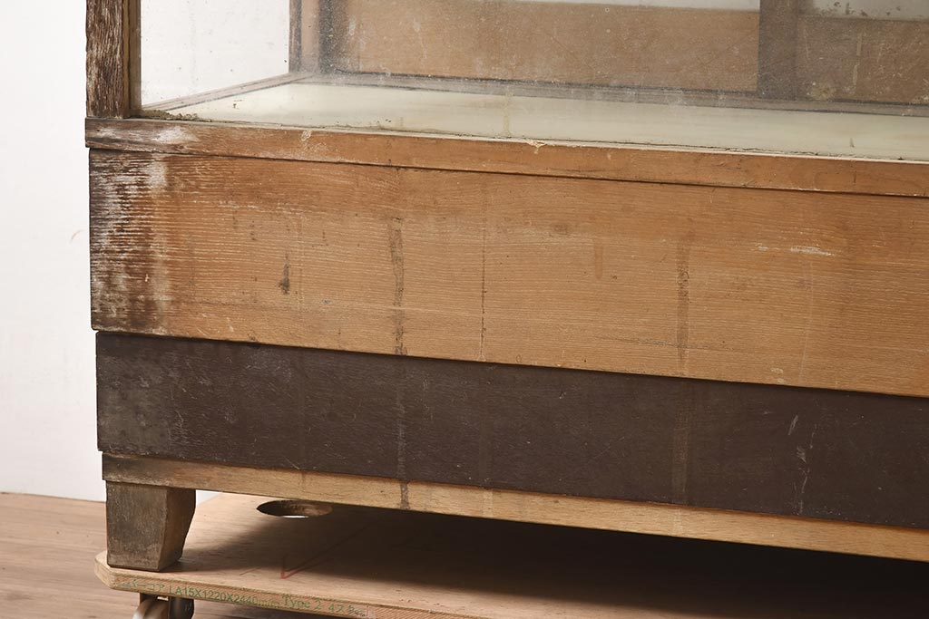 ラフジュ工房> 店舗什器 > アンティーク家具 昭和中期 ナラ材 引き出し付きのレトロなガラスケース(ショーケース、陳列棚)(R-044556)