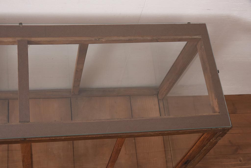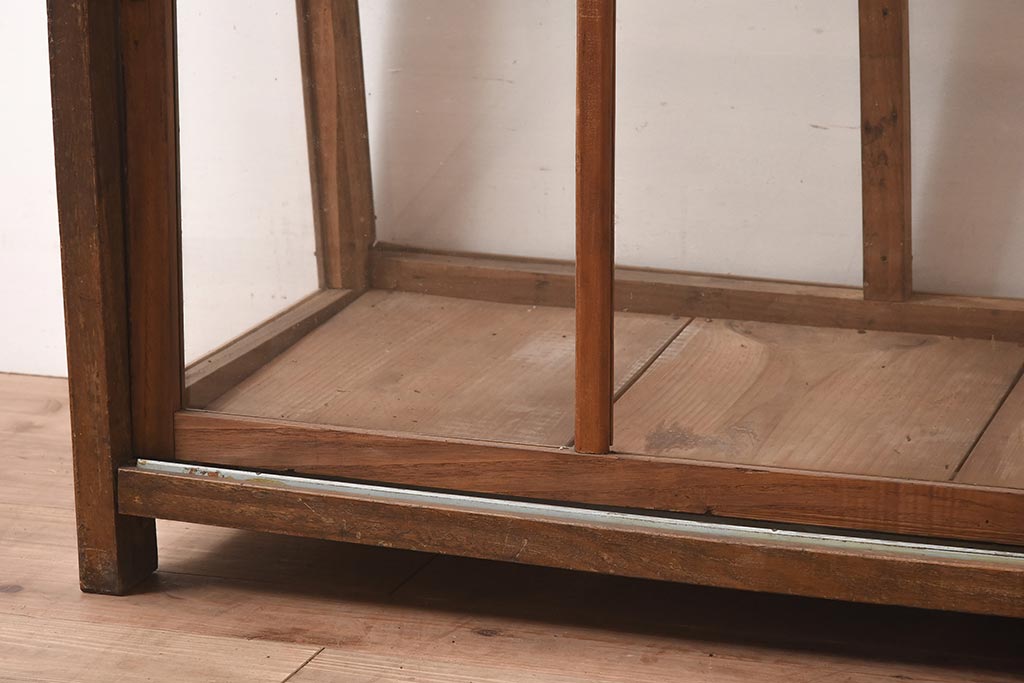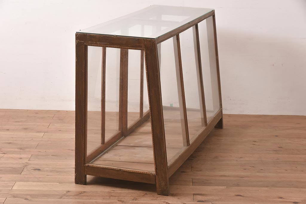 ラフジュ工房> 店舗什器 > アンティーク家具 昭和初期 台形型 ノスタルジックな雰囲気のガラスケース(ショーケース、陳列棚)(R-044558)