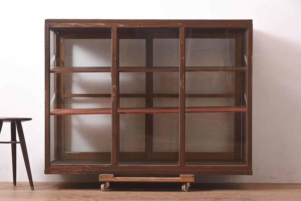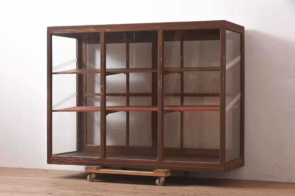 アンティーク家具 昭和初期 木の風合いが味わい深いガラスケース(ショーケース、陳列棚)(R-044557)
