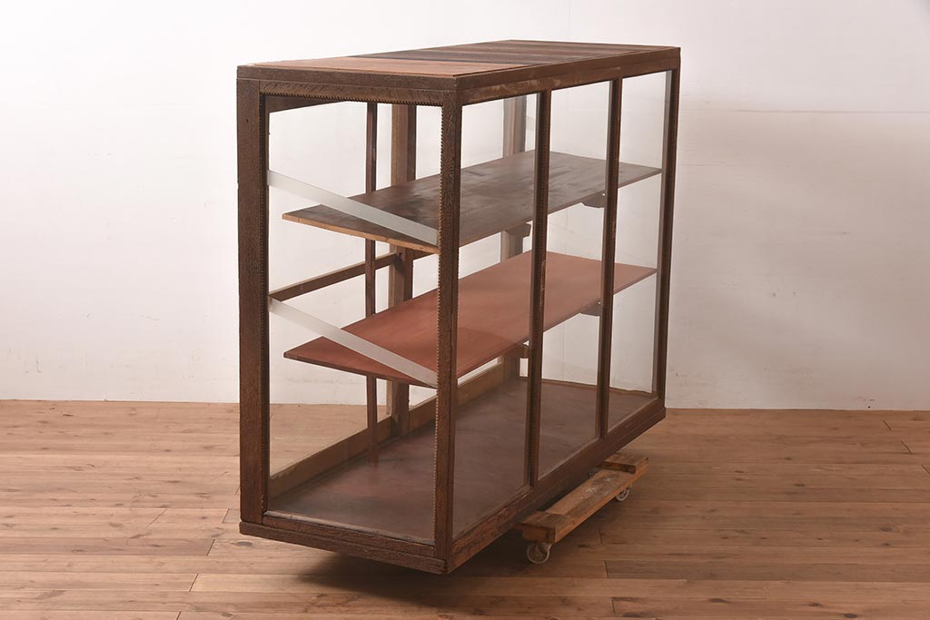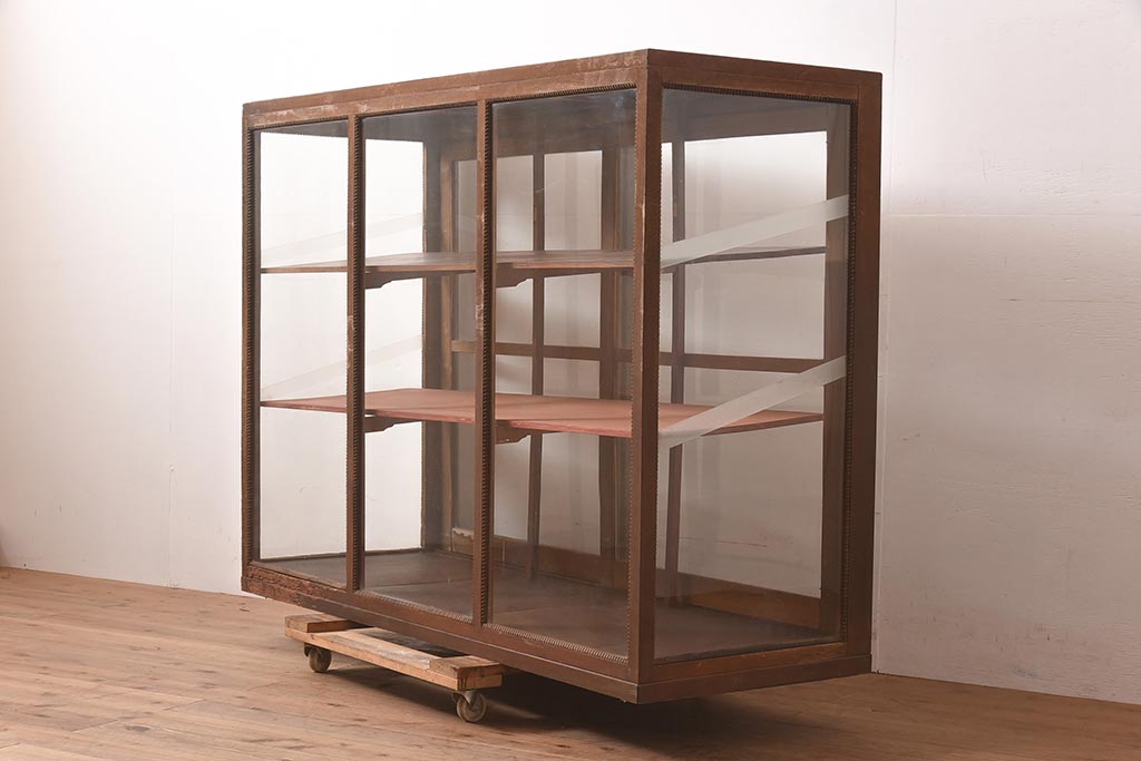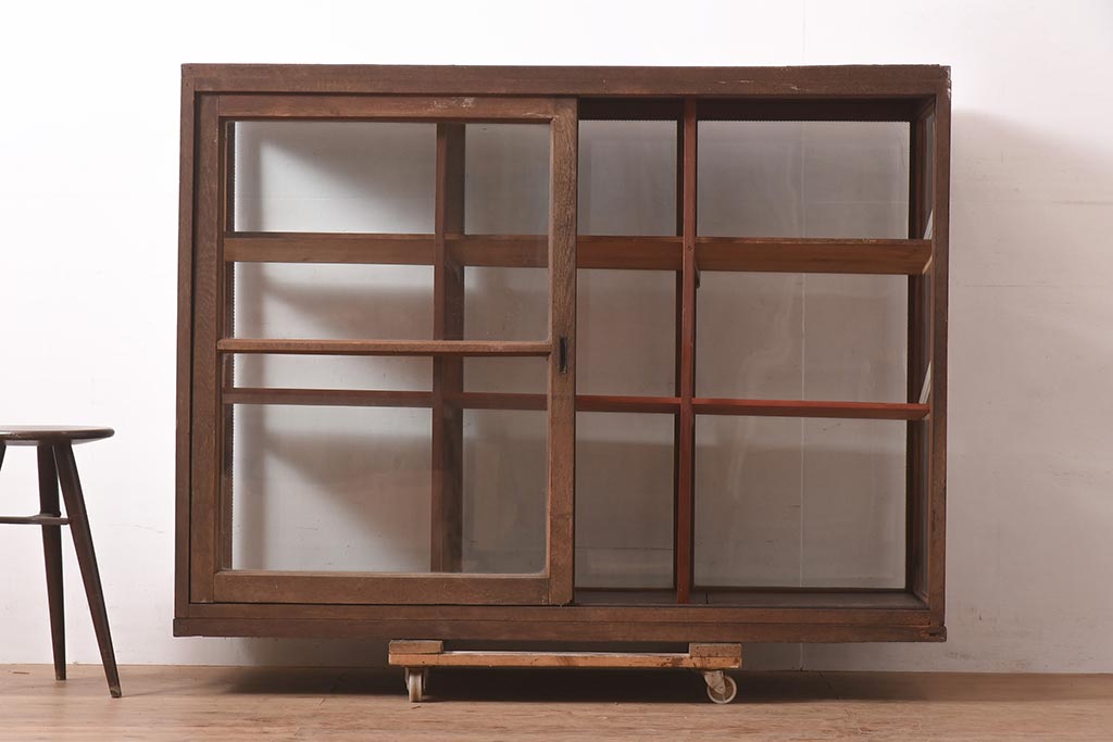 ラフジュ工房> 店舗什器 > アンティーク家具 昭和初期 木の風合いが味わい深いガラスケース(ショーケース、陳列棚)(R-044557)