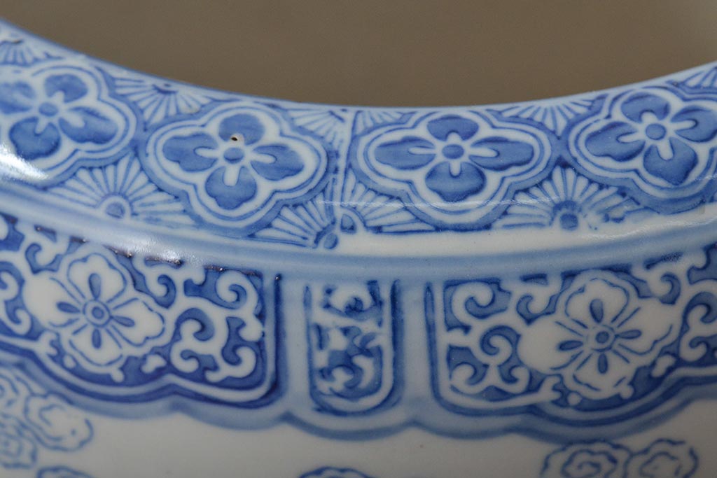 火鉢> 瀬戸火鉢 > アンティーク雑貨 鶴・花・風景の図 瀬戸火鉢(鉢カバー、傘立て)(R-044669)
