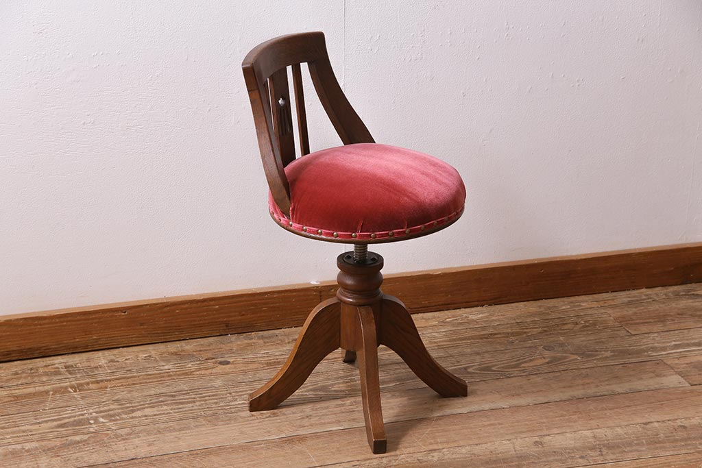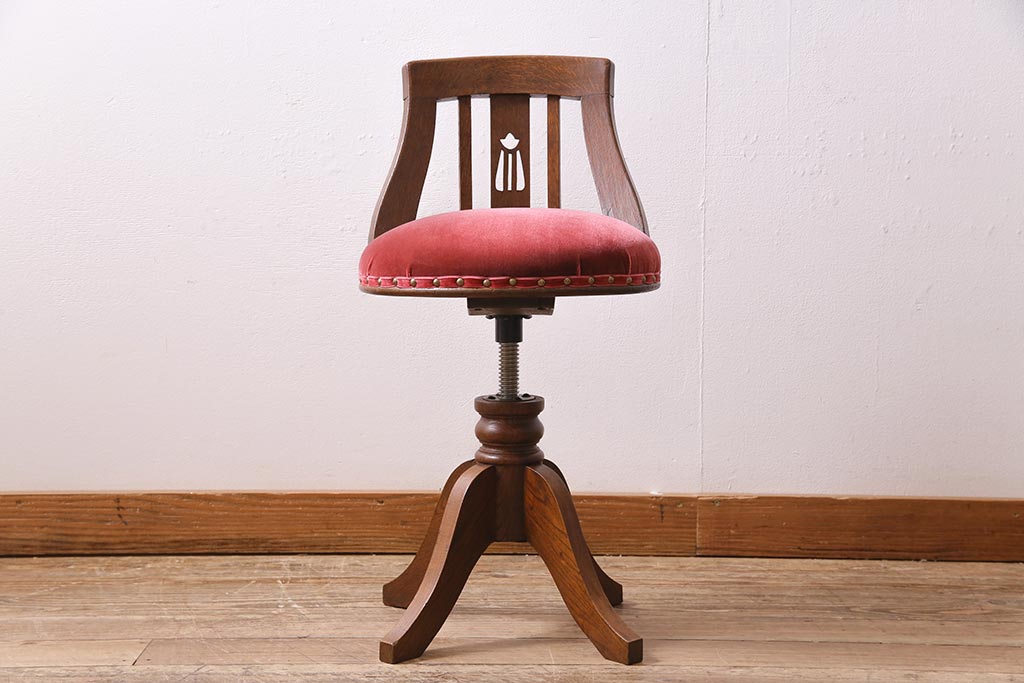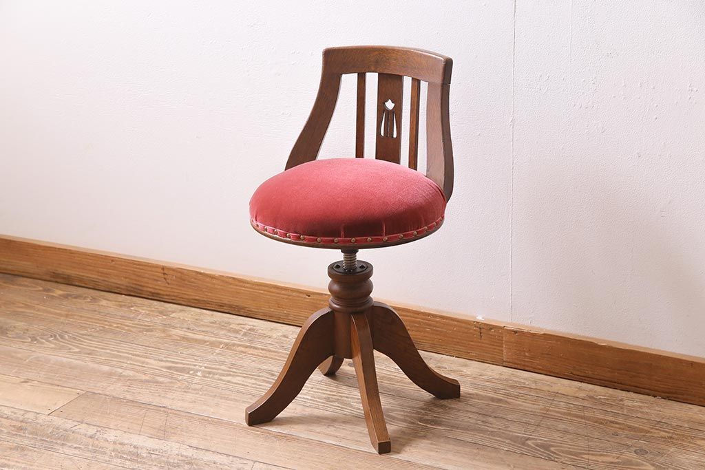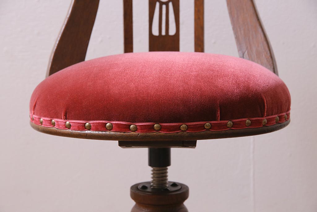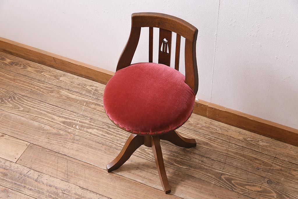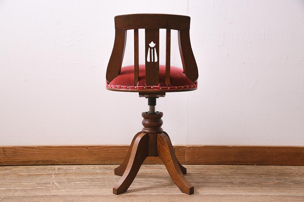 アンティーク家具 大正ロマン ナラ材 小振りでかわいいドクターチェア(回転椅子)(R-044618)