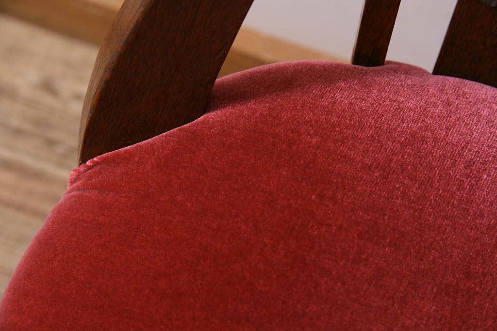 座面生地とクッション(座面内スポンジ)は当店にて張り替えておりますので、しっかりとしております。