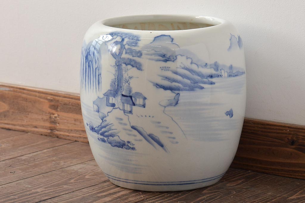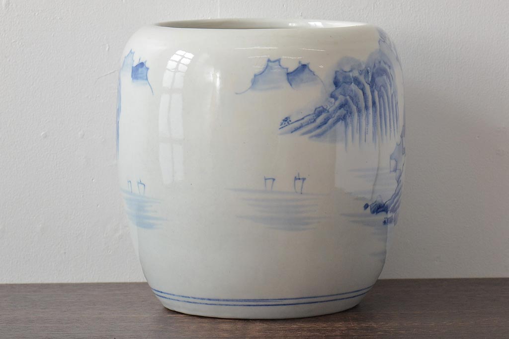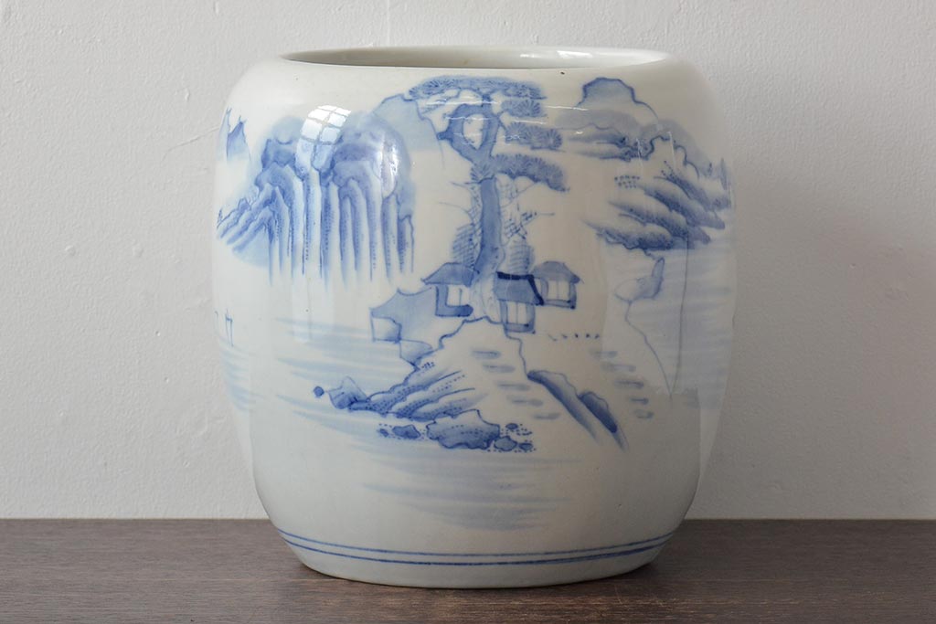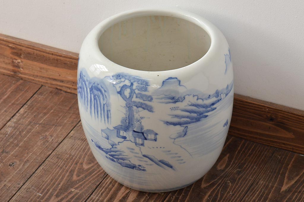 火鉢> 瀬戸火鉢 > アンティーク雑貨 昭和初期 山水図 和レトロな瀬戸火鉢(鉢カバー)(R-044394)