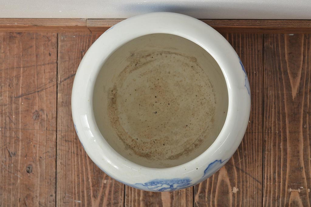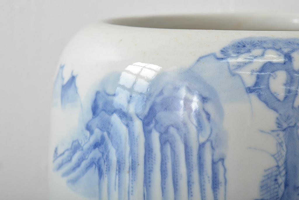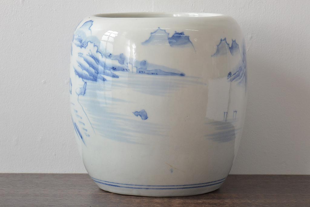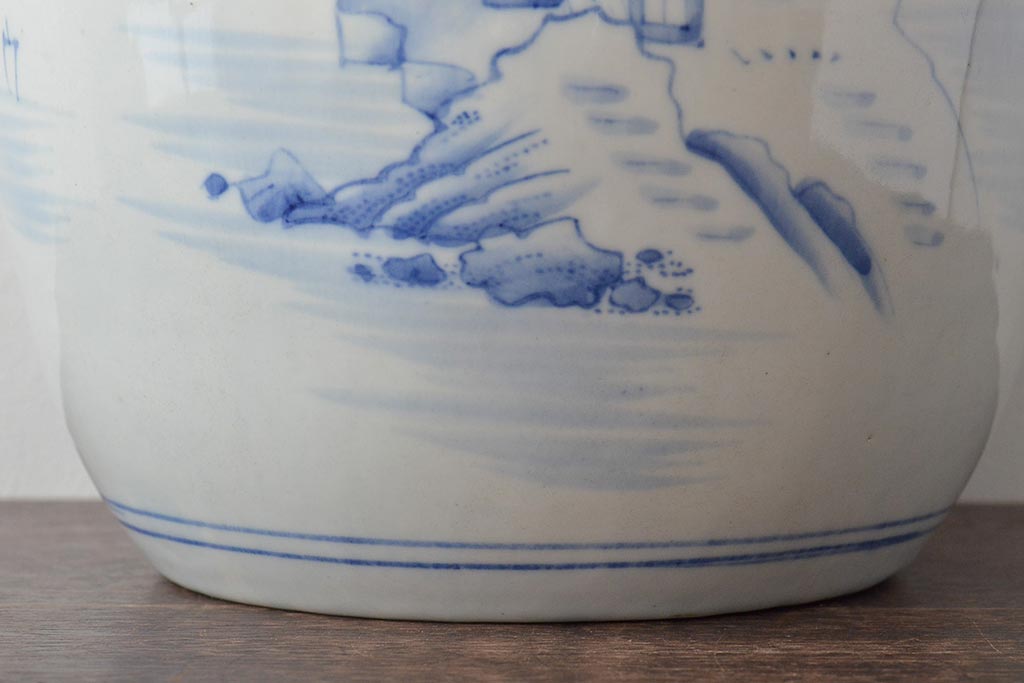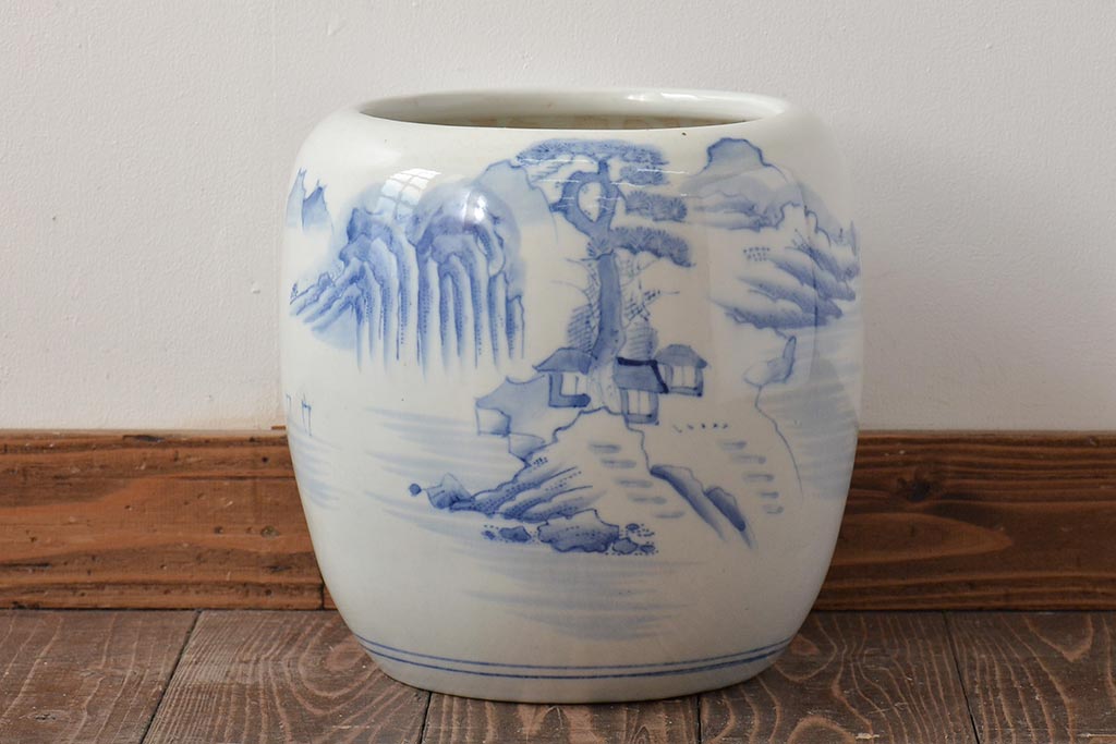 火鉢> 瀬戸火鉢 > アンティーク雑貨 昭和初期 山水図 和レトロな瀬戸火鉢(鉢カバー)(R-044394)