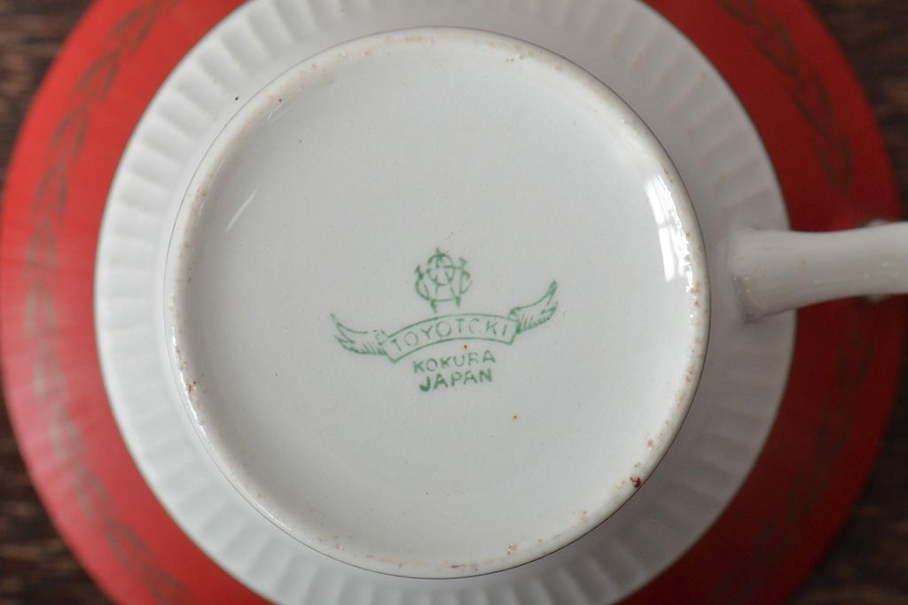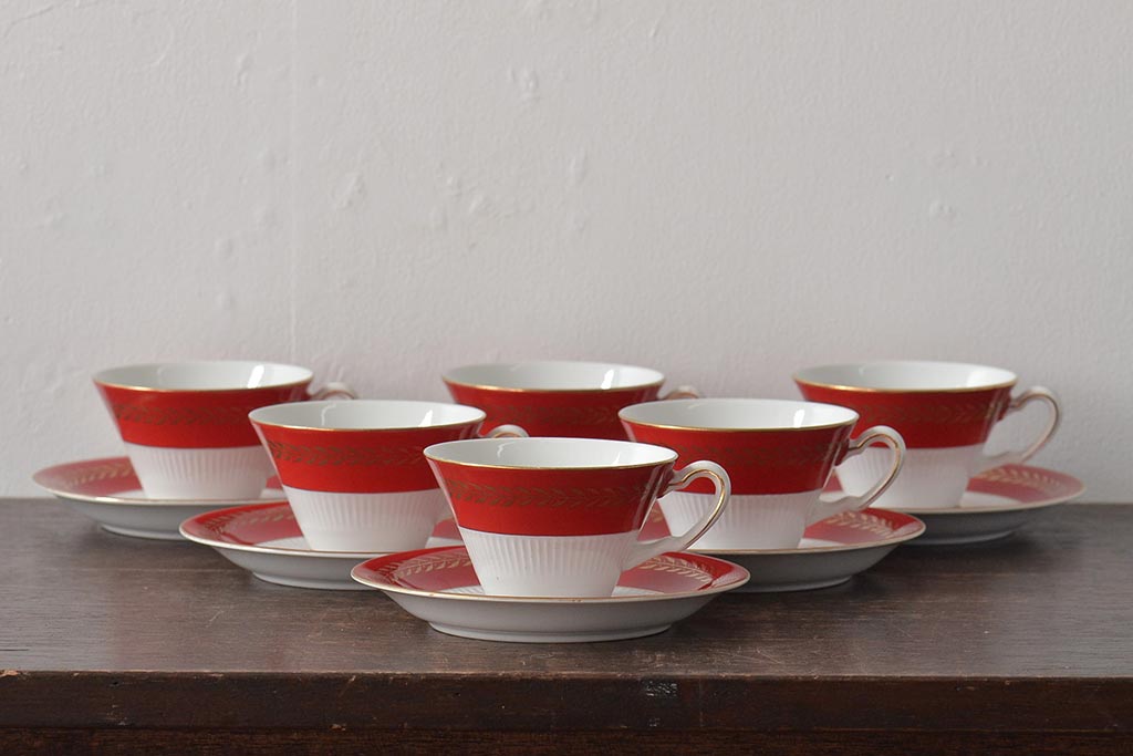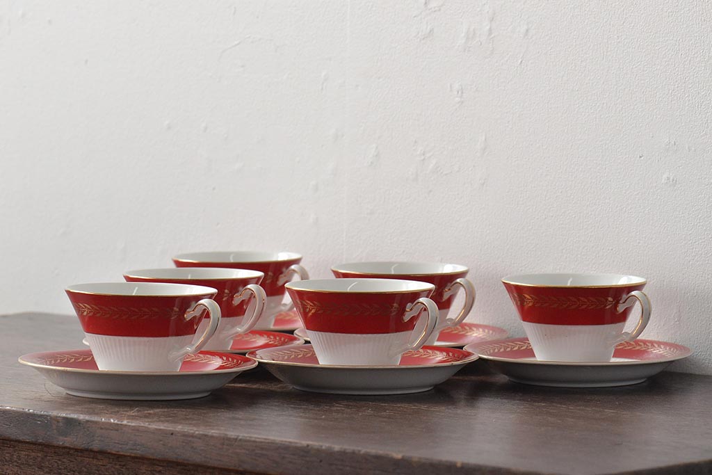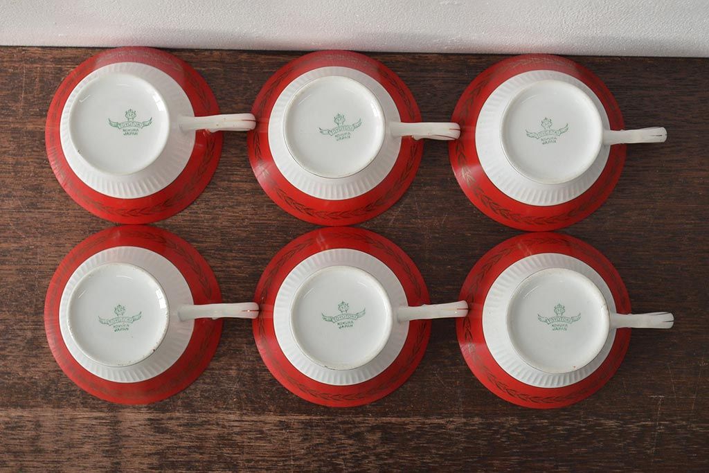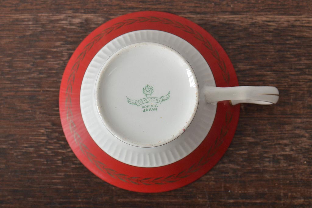 アンティーク 昭和初期 東洋陶器(東陶、トートー) レトロシックなカップ&ソーサー6客セット(陶磁器)(R-044411)