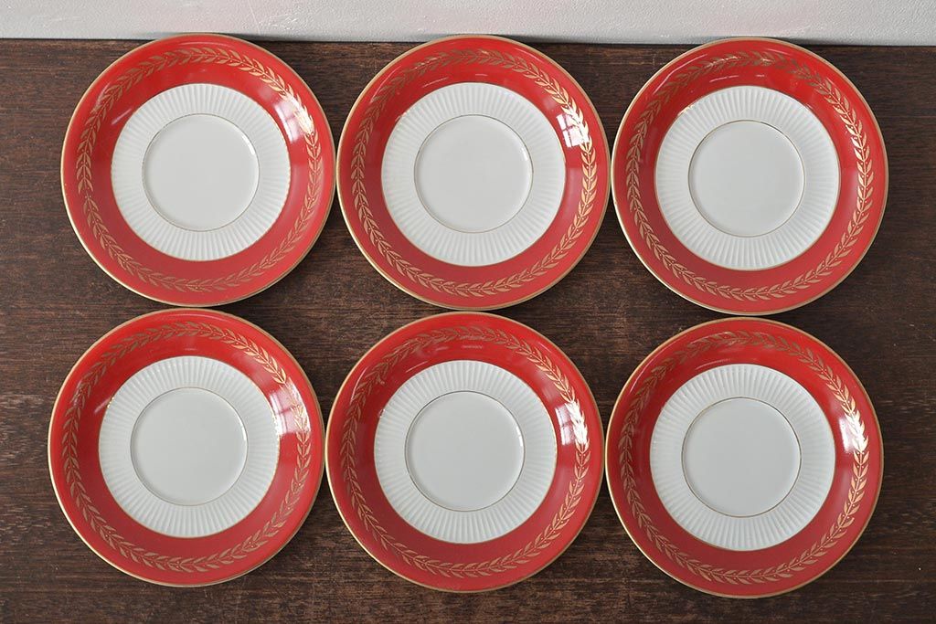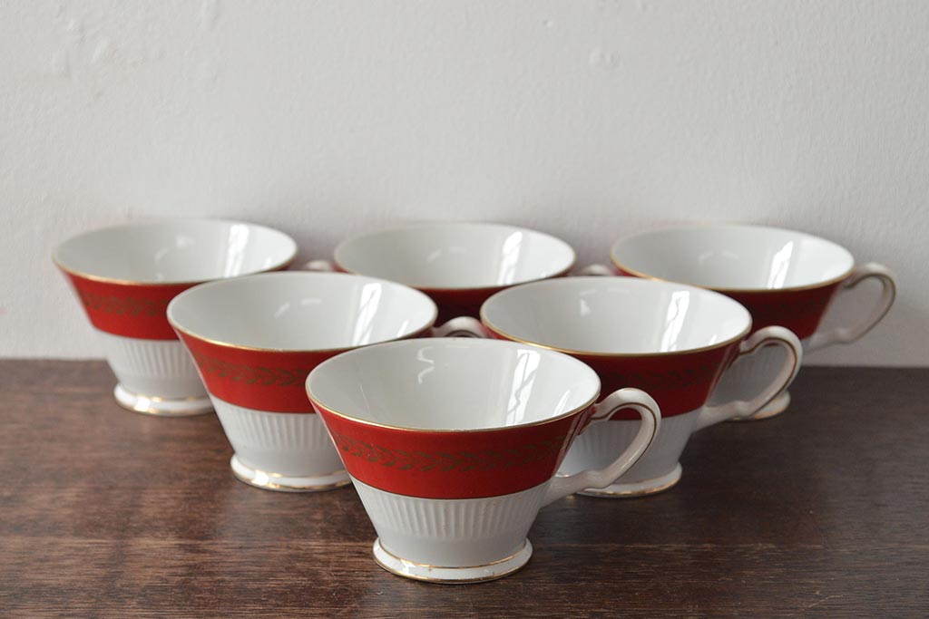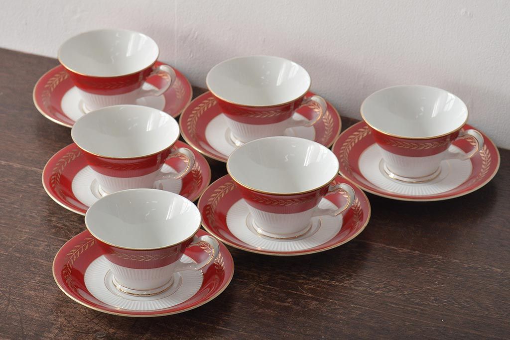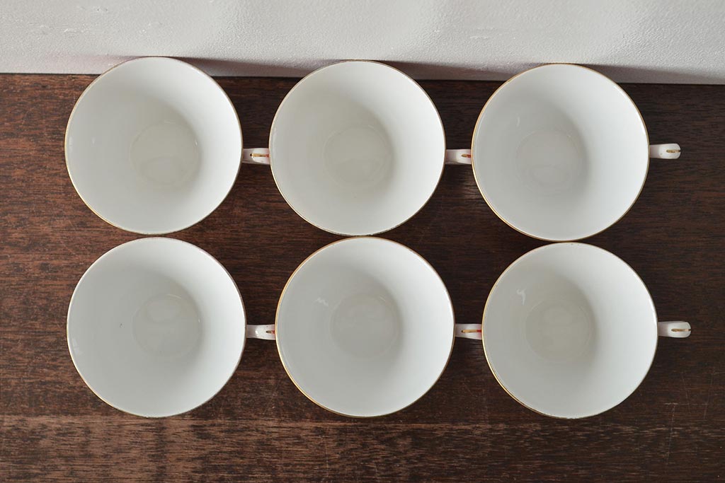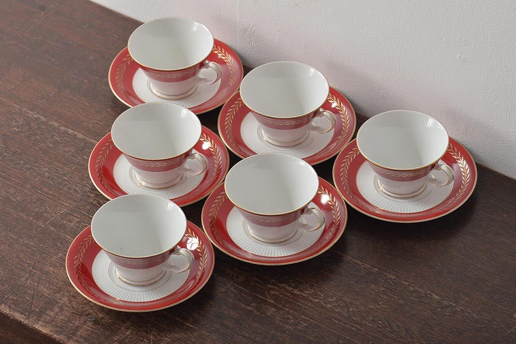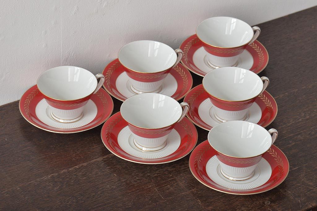 アンティーク 昭和初期 東洋陶器(東陶、トートー) レトロシックなカップ&ソーサー6客セット(陶磁器)(R-044411)