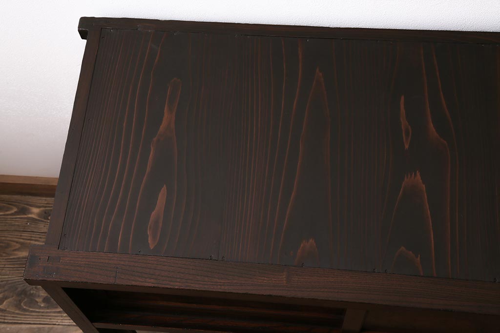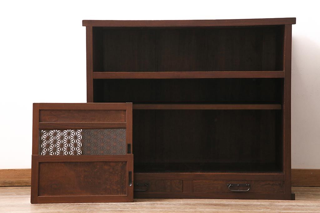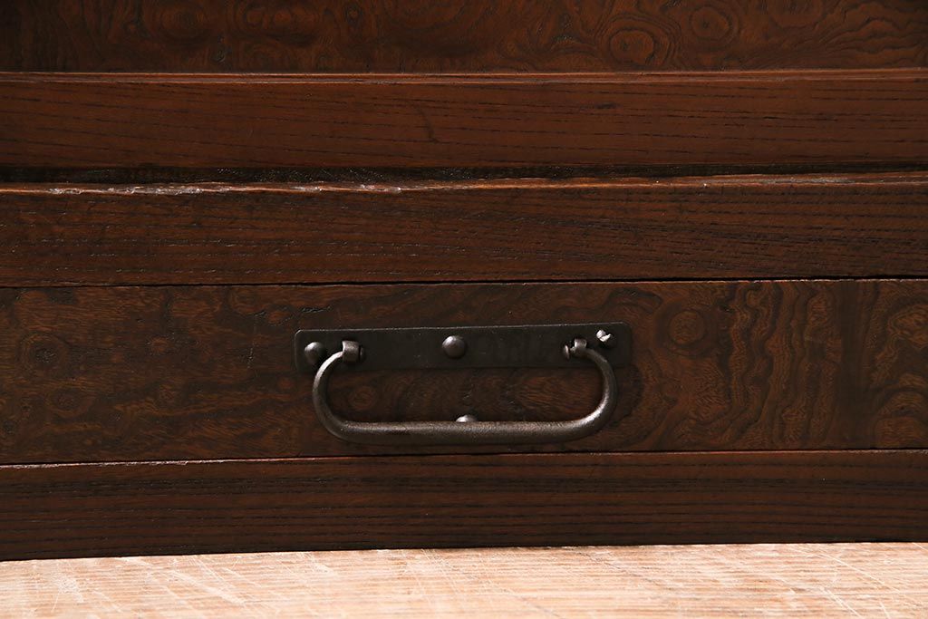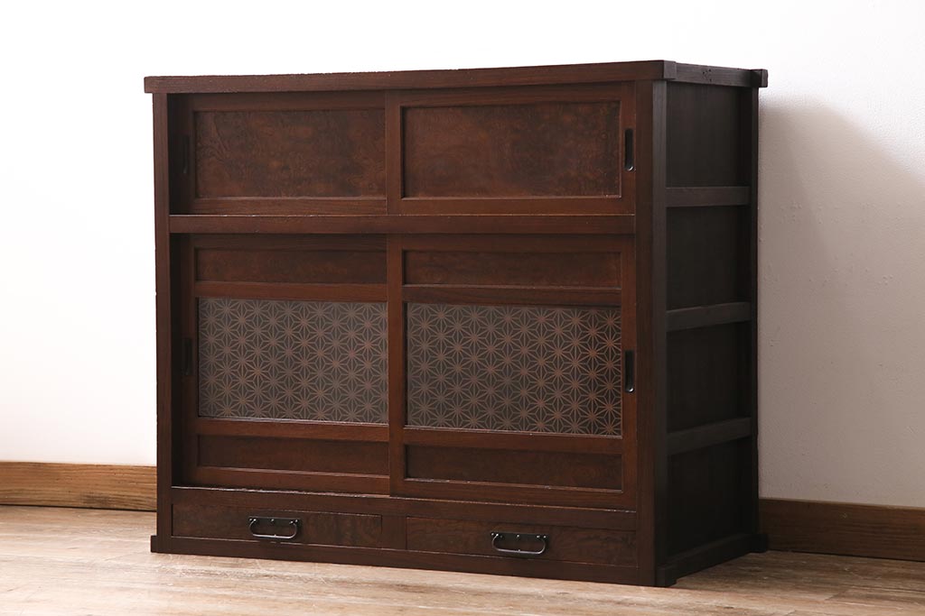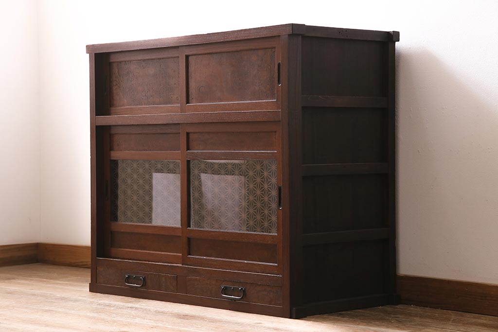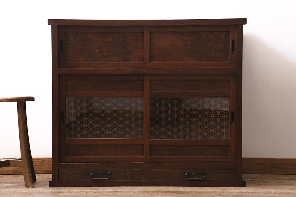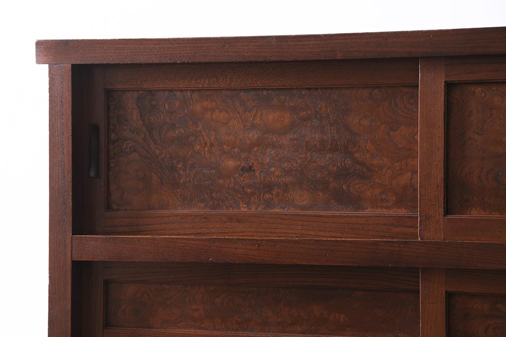 和箪笥> 茶箪笥・茶棚 > アンティーク家具 上手物 前面ケヤキ 玉杢や凝ったつくりが素晴らしい組子入り関東水屋箪笥・上段(茶箪笥)(R-044171)
