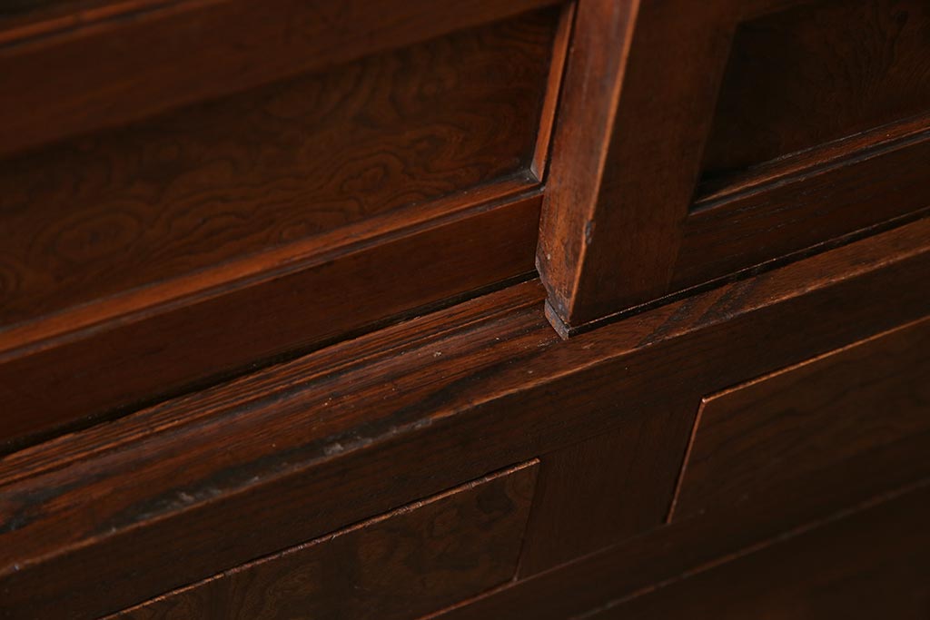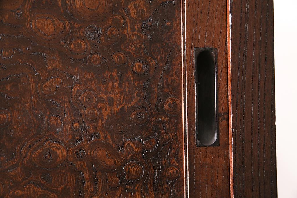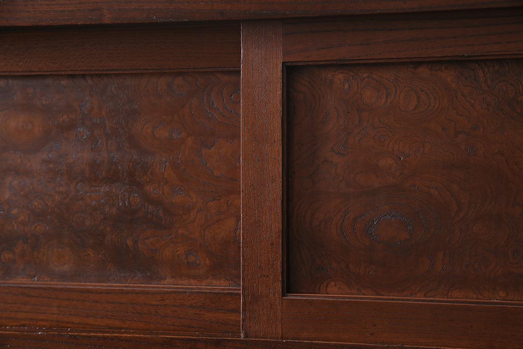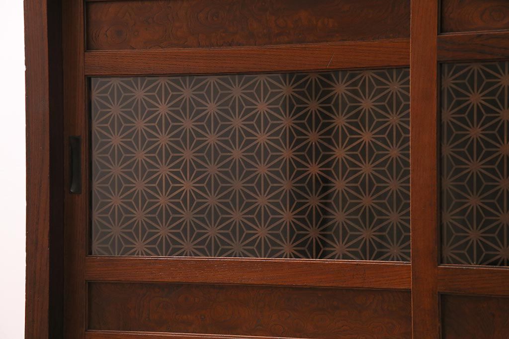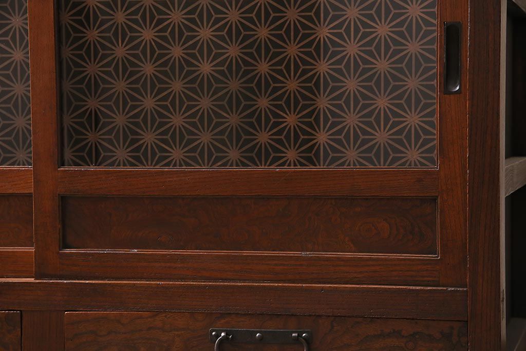 和箪笥> 水屋箪笥 > アンティーク家具 上手物 前面ケヤキ 玉杢や凝ったつくりが素晴らしい組子入り関東水屋箪笥・上段(茶箪笥)(R-044171)