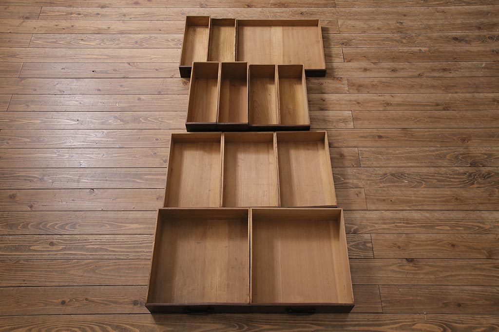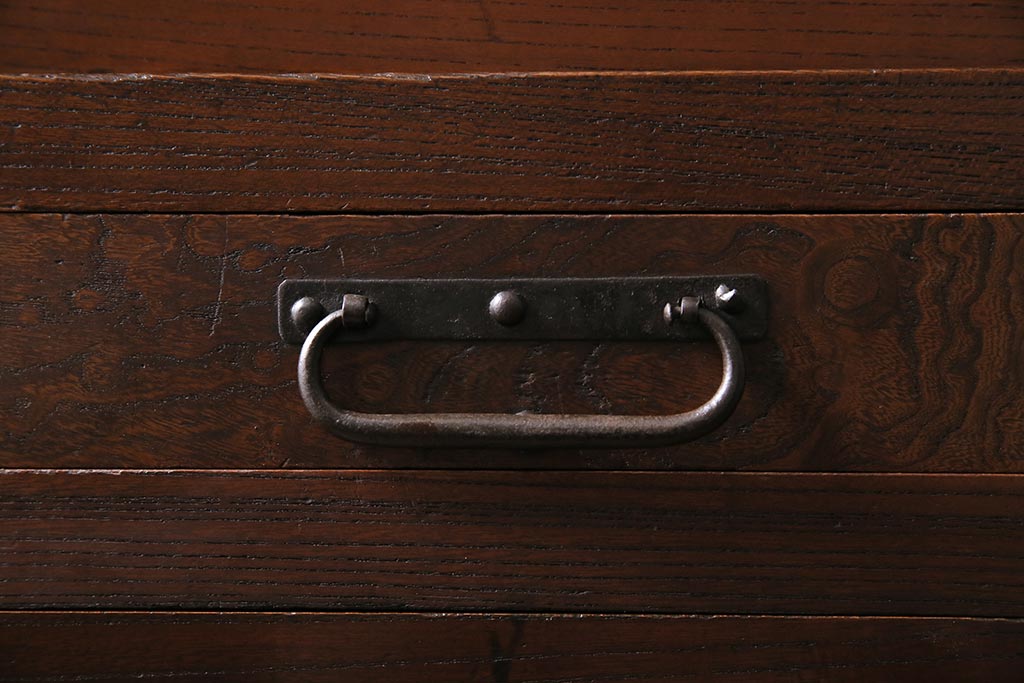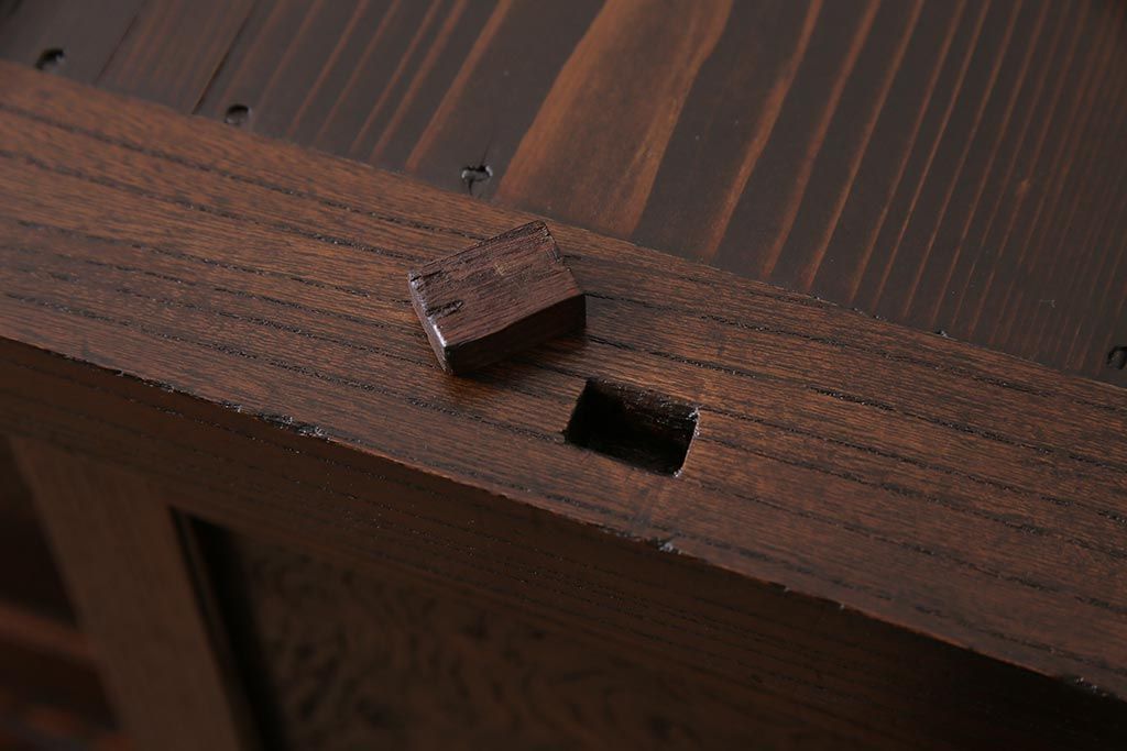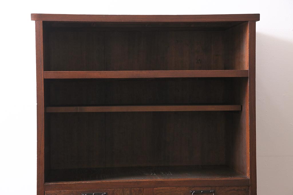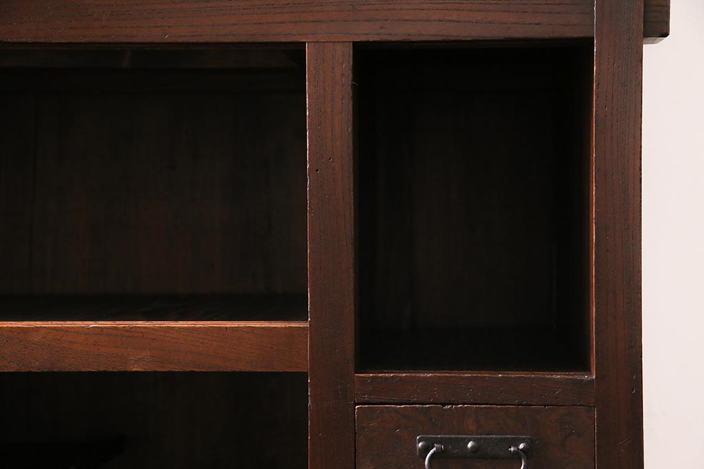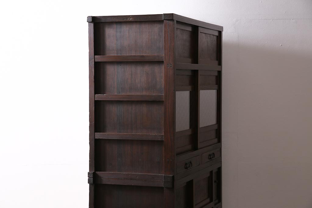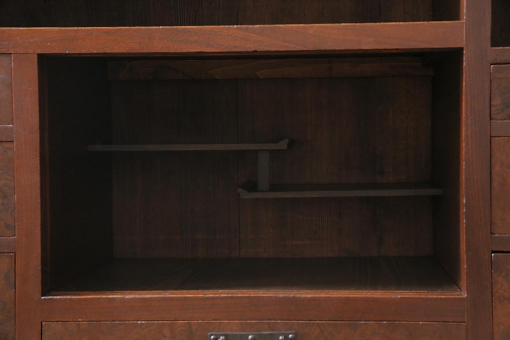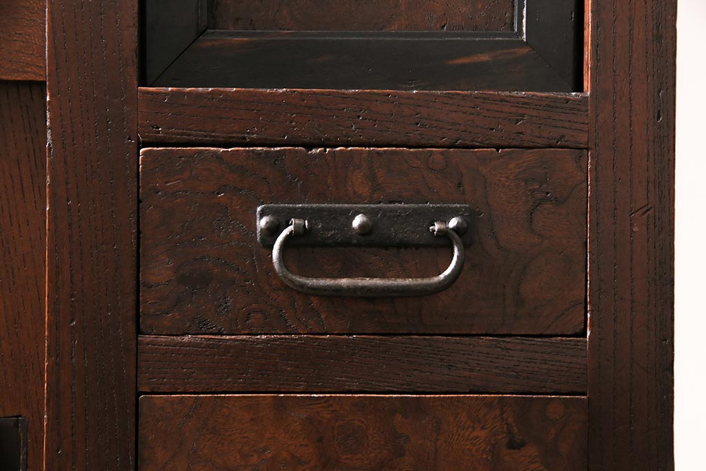 アンティーク家具 上手物 前面ケヤキ 玉杢や凝ったつくりが素晴らしい組子入り関東水屋箪笥・重ね(茶箪笥)(R-044173)