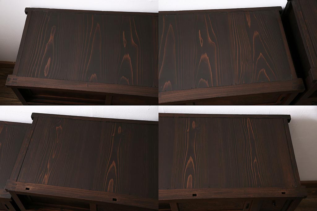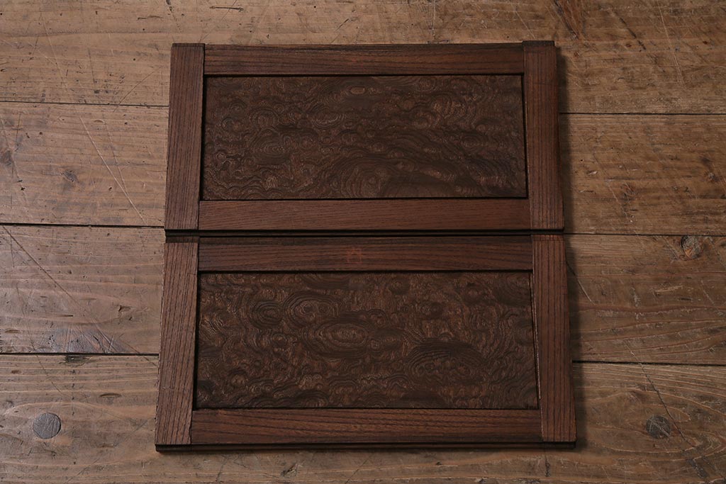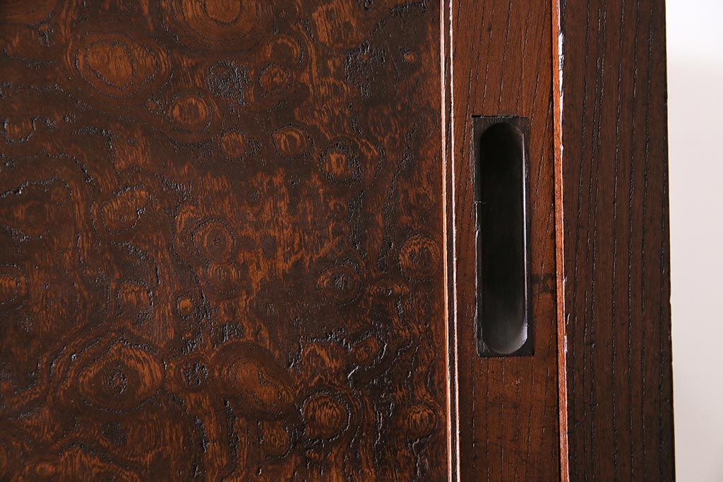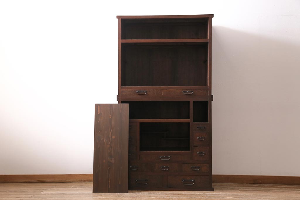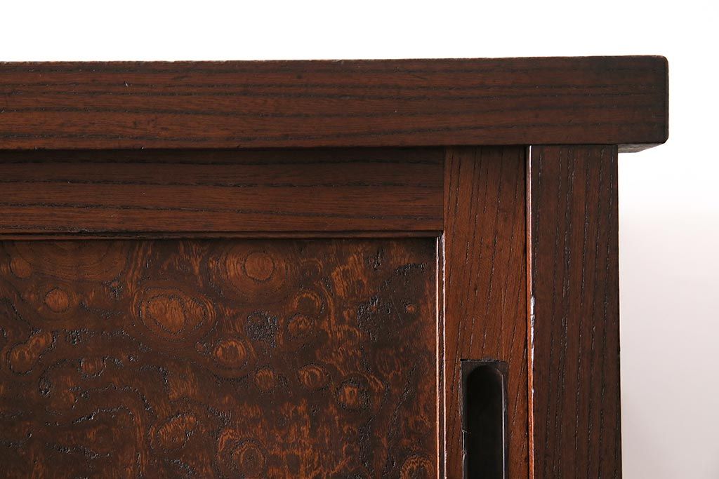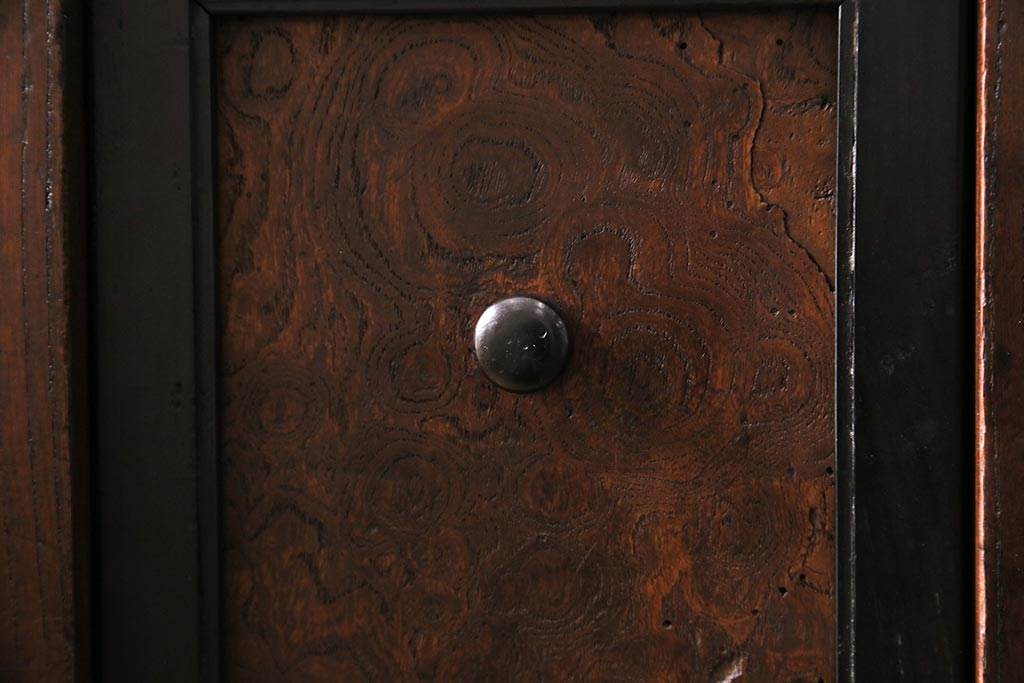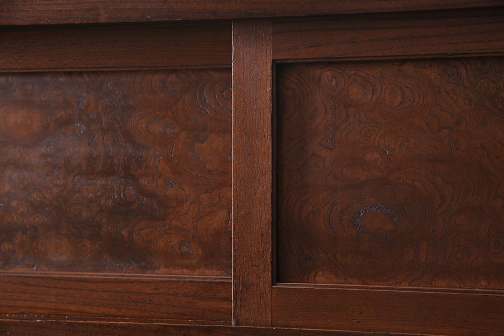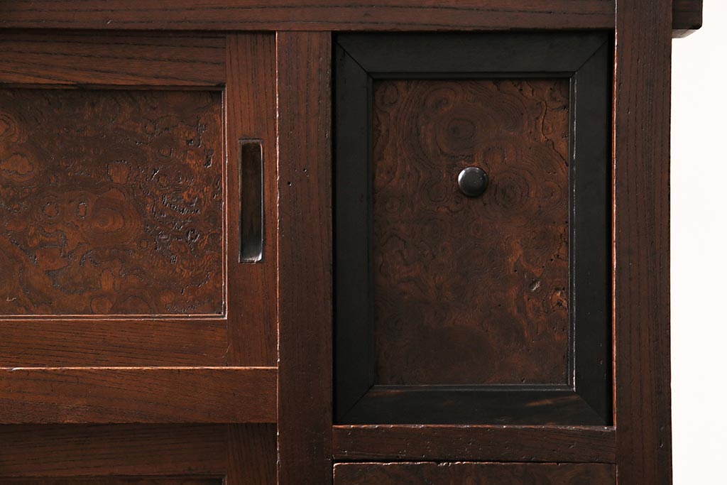 ラフジュ工房> 和箪笥> 茶箪笥・茶棚 > アンティーク家具 上手物 前面ケヤキ 玉杢や凝ったつくりが素晴らしい組子入り関東水屋箪笥・重ね(茶箪笥)(R-044173)