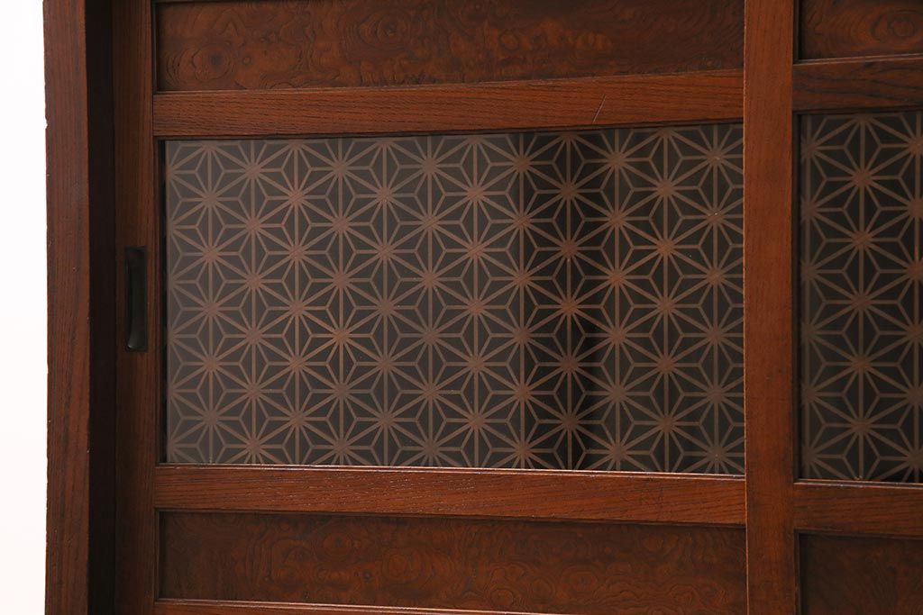 ラフジュ工房> 和箪笥> 水屋箪笥 > アンティーク家具 上手物 前面ケヤキ 玉杢や凝ったつくりが素晴らしい組子入り関東水屋箪笥・重ね(茶箪笥)(R-044173)
