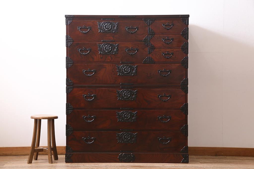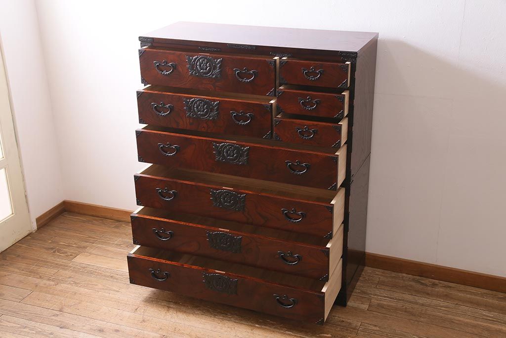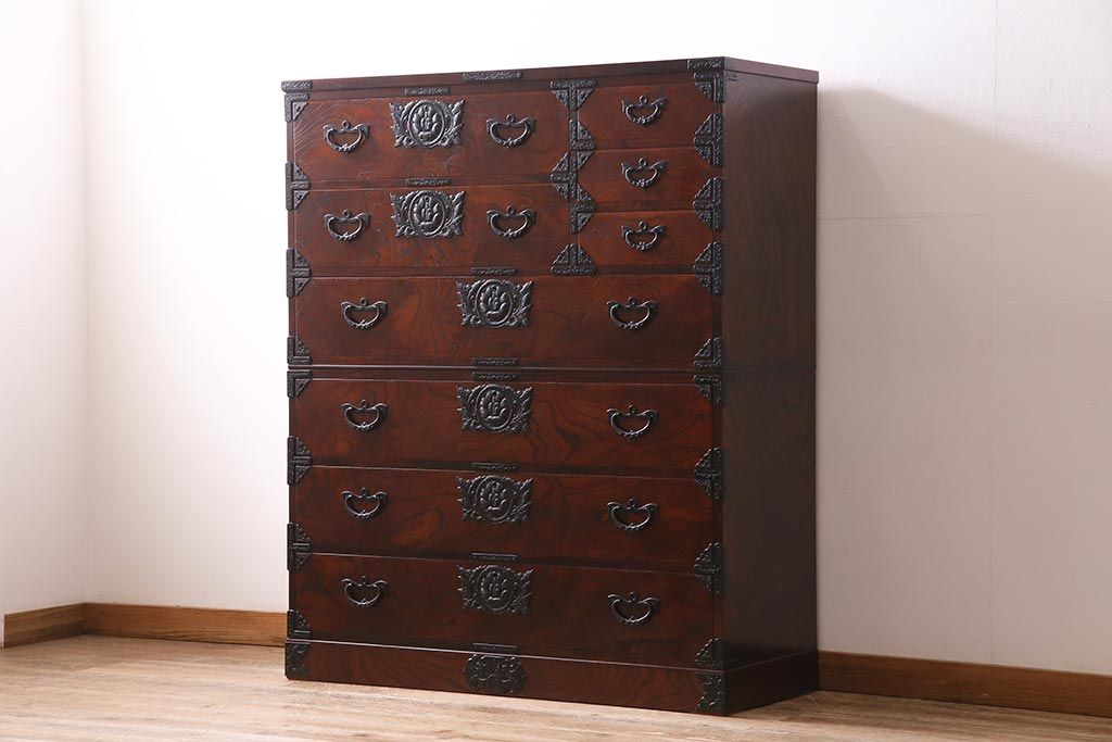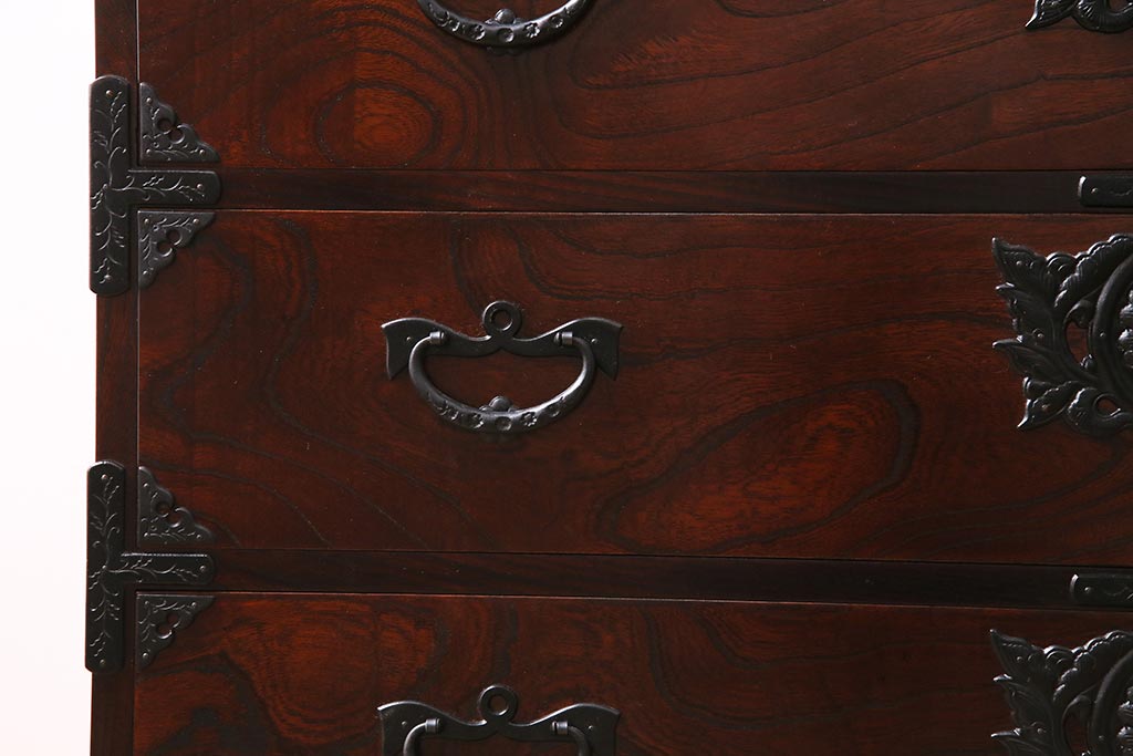 和箪笥> 衣装箪笥 > 中古 伝統民芸家具 岩谷堂箪笥 No309三、八尺整理小抽出 重厚かつ上品な佇まいが魅力のチェスト(衣装箪笥、整理箪笥、引き出し)(定価約65万円)(R-044620)