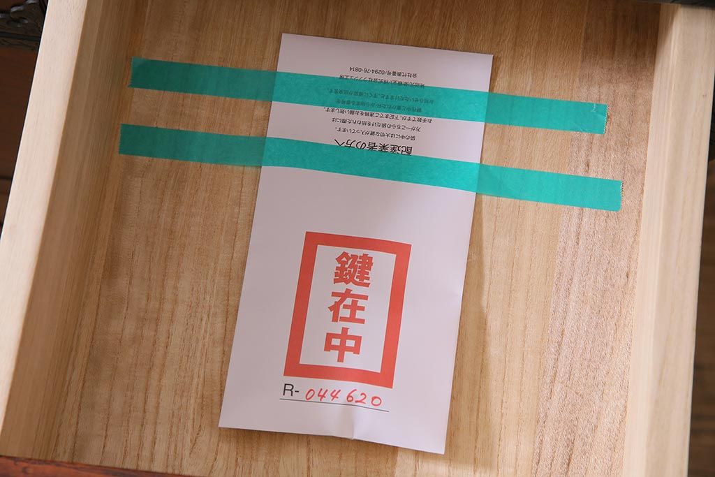 鍵は付属します。画像にありますように、袋に入れお付けします。スムーズに動くように調整していますが、あくまでも古いものや中古品ですので、長期の使用保証は出来かねます。ご購入後不具合が発生した場合は、当店でサポートさせていただきますので、お気軽にご相談くださいませ。手を添えて補助すると動きます。