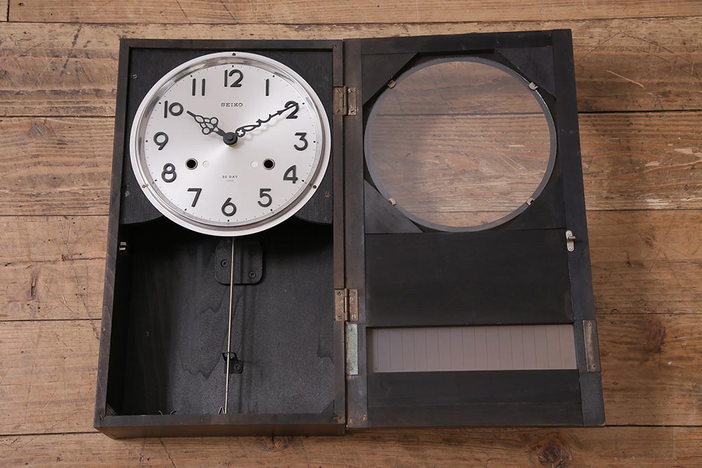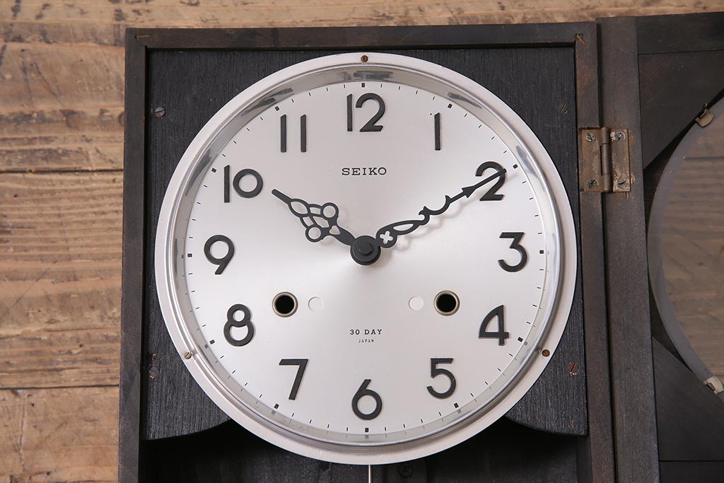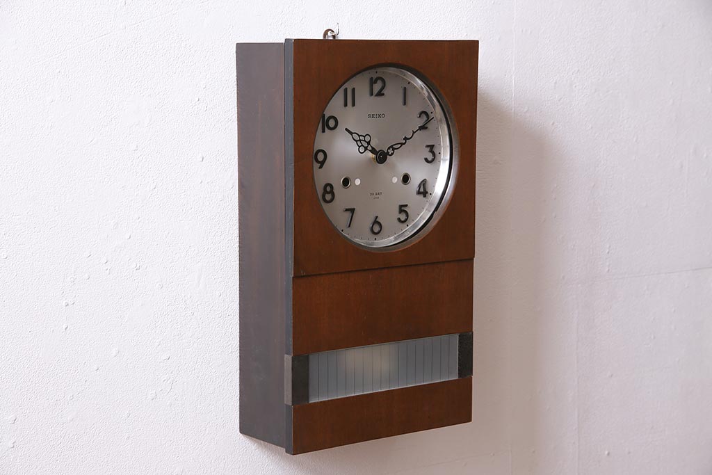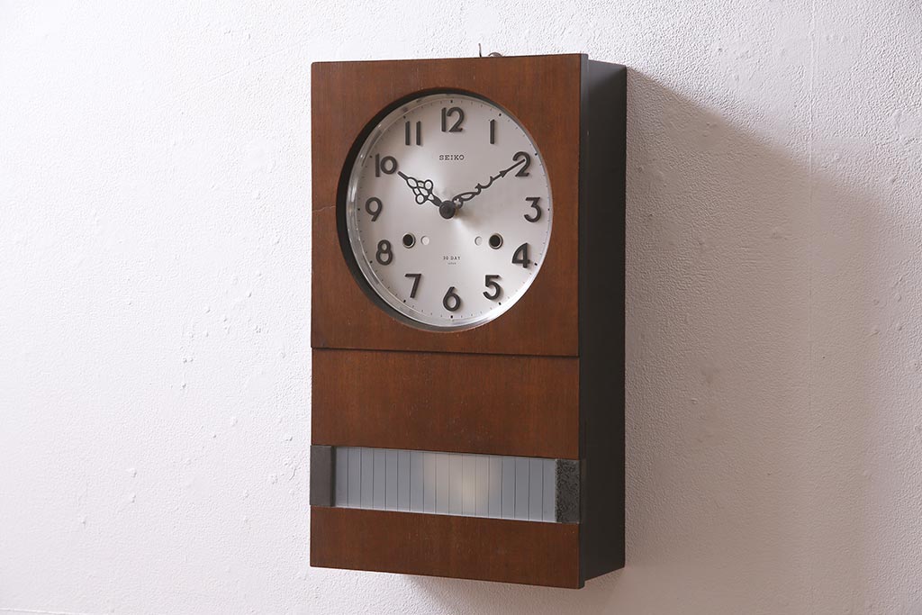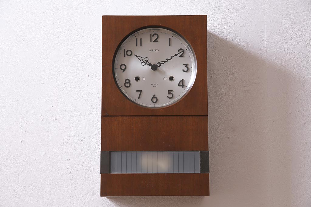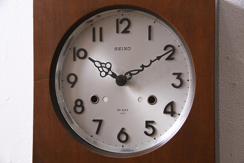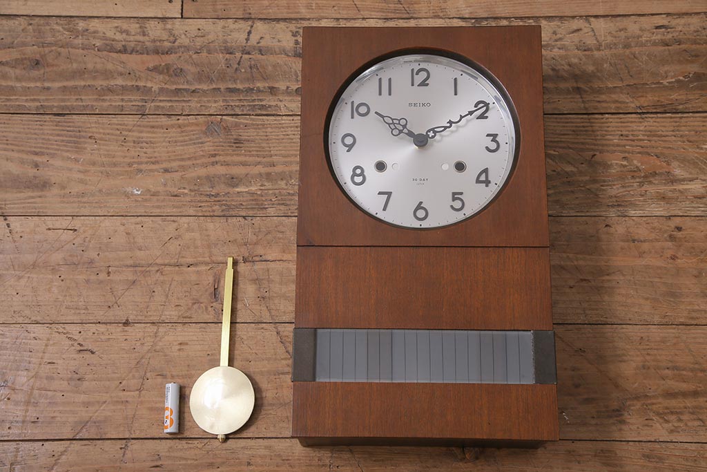 時計> 掛け時計 > アンティーク雑貨 昭和中期 SEIKO(セイコー) 内部交換済・電池式 スタイリッシュなデザインの柱時計(掛け時計)(R-044596)