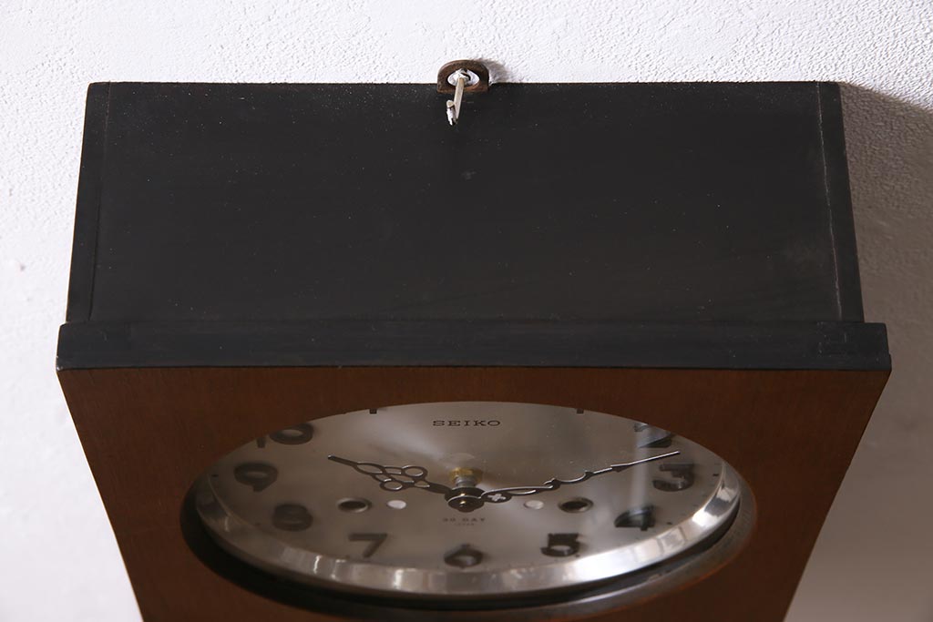 アンティーク雑貨 昭和中期 SEIKO(セイコー) 内部交換済・電池式 スタイリッシュなデザインの柱時計(掛け時計)(R-044596)です。