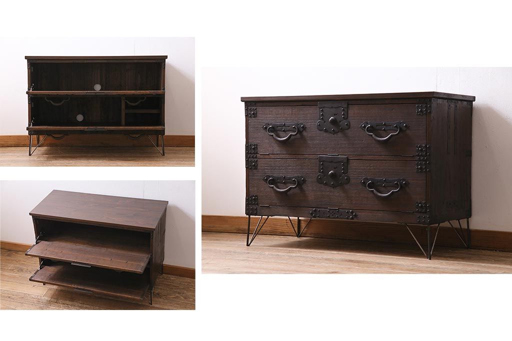 和箪笥 > アンティーク家具 明治期 リメイク 総桐材 フラップダウン扉が便利な脚付きローボード(テレビ台、テレビボード、収納棚)(R-039849)
