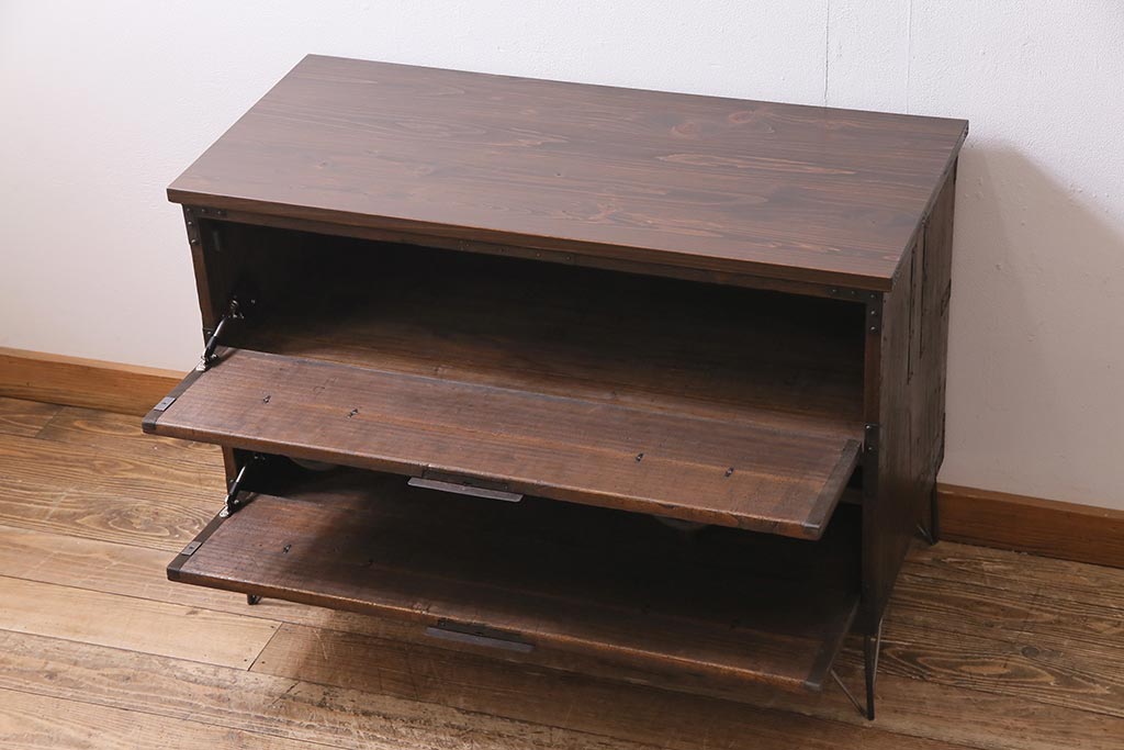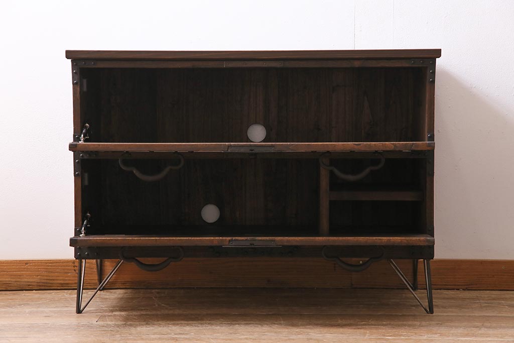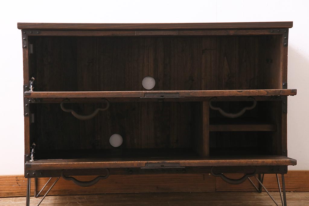 チェスト・引き出し> ローチェスト > アンティーク家具 明治期 リメイク 総桐材 フラップダウン扉が便利な脚付きローボード(テレビ台、テレビボード、収納棚)(R-039849)