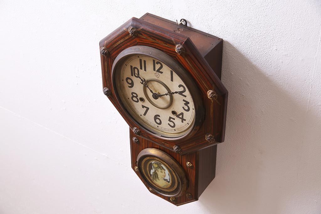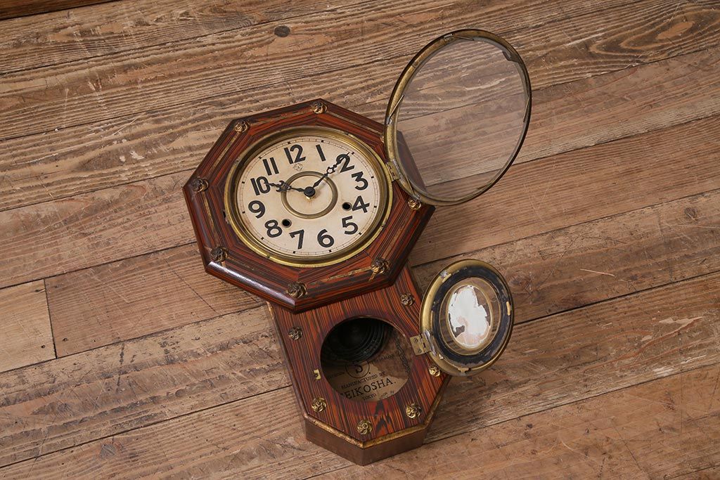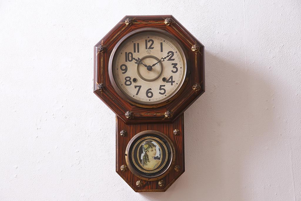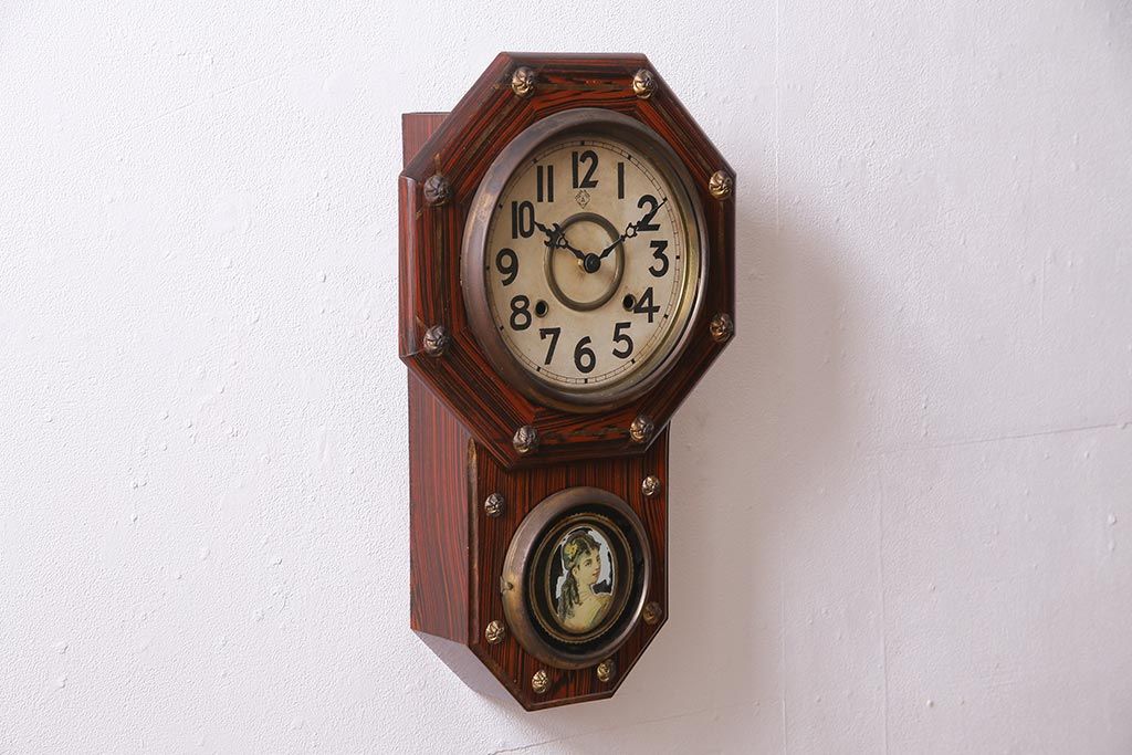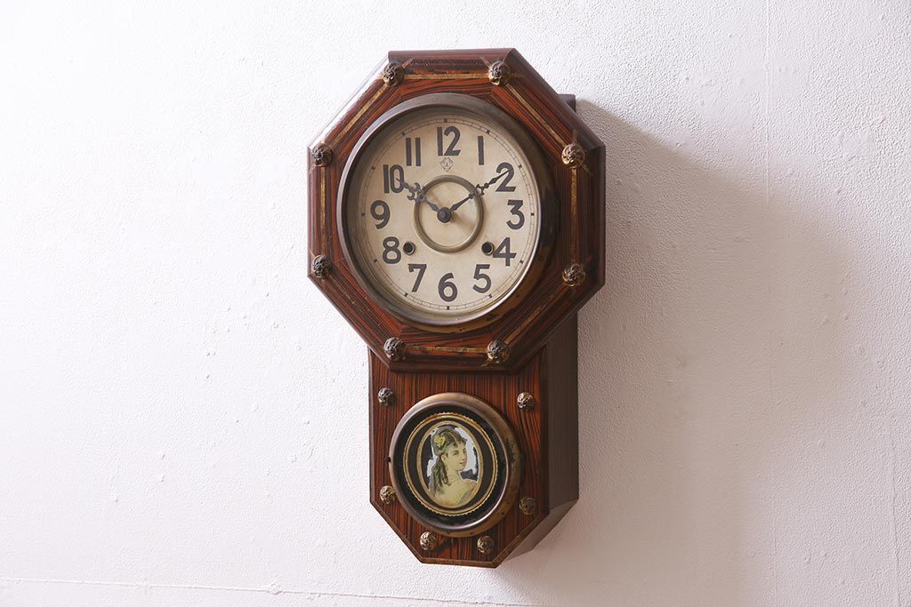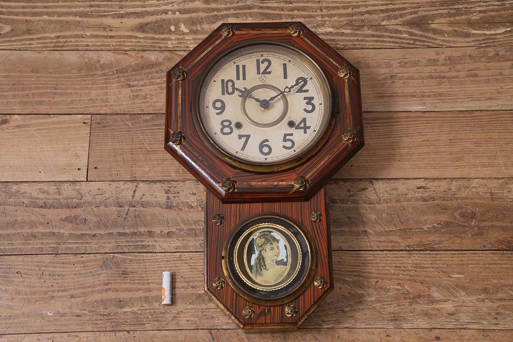 時計> 掛け時計 > アンティーク雑貨 精工舎(SEIKOSHA、セイコー) 内部交換済・電池式 ガラス絵の窓がレトロな八角柱時計(掛け時計)(R-044595)