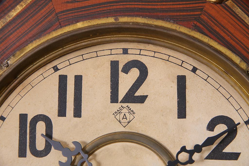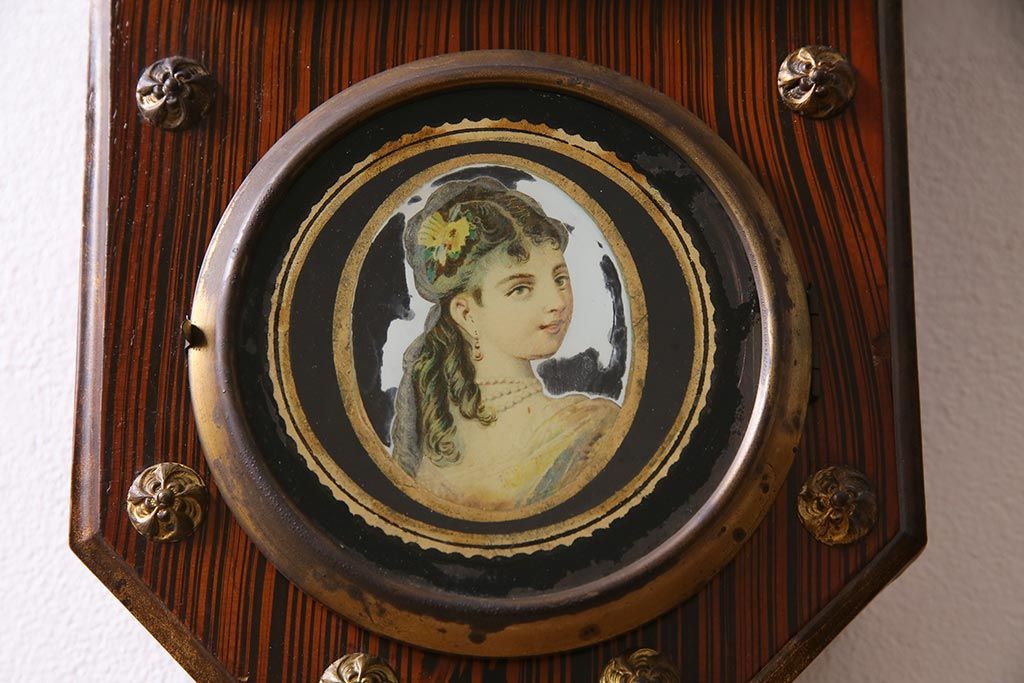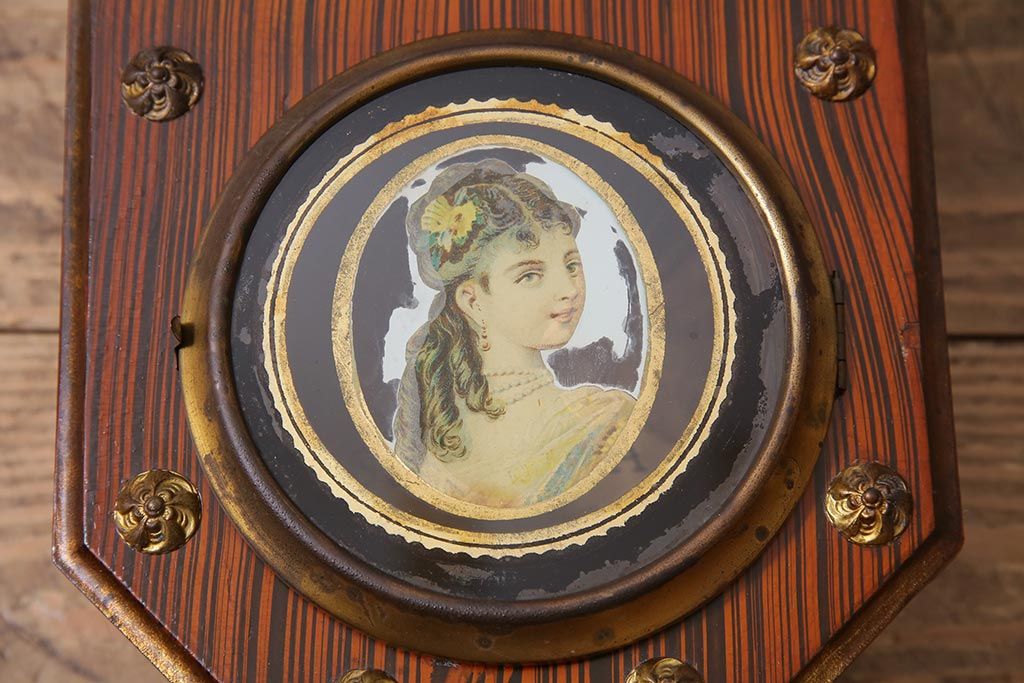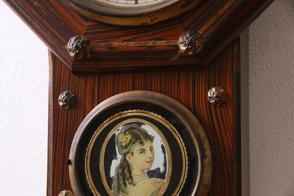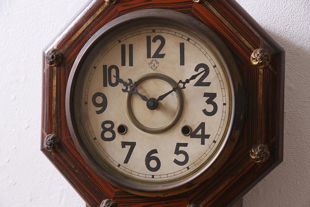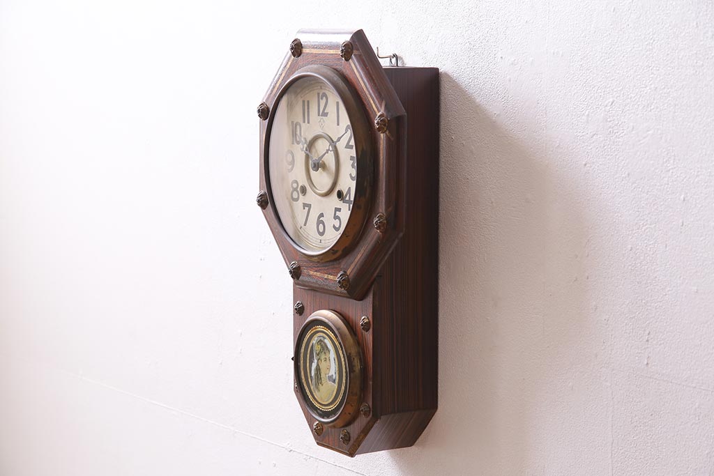 時計> 掛け時計 > アンティーク雑貨 精工舎(SEIKOSHA、セイコー) 内部交換済・電池式 ガラス絵の窓がレトロな八角柱時計(掛け時計)(R-044595)